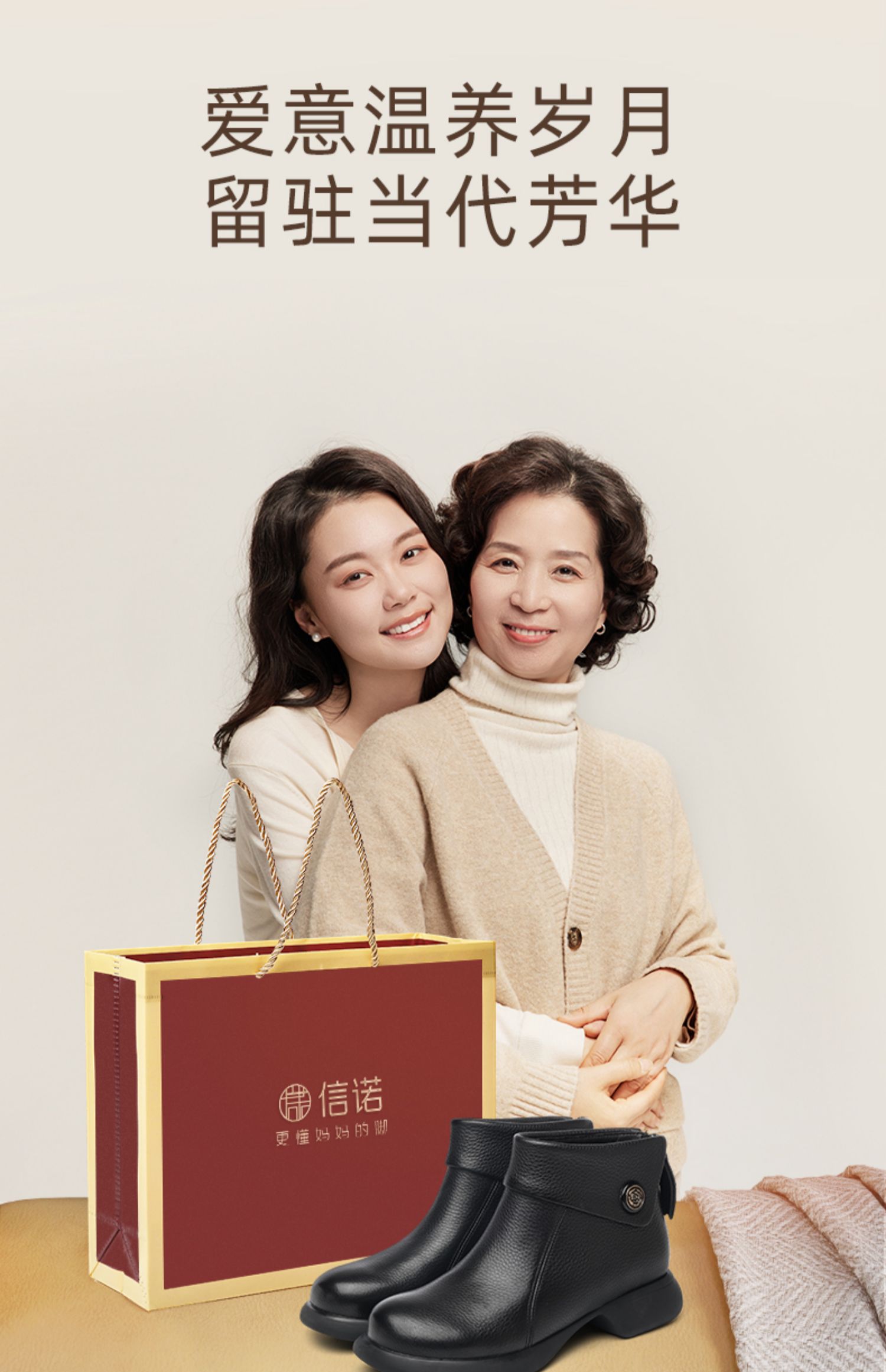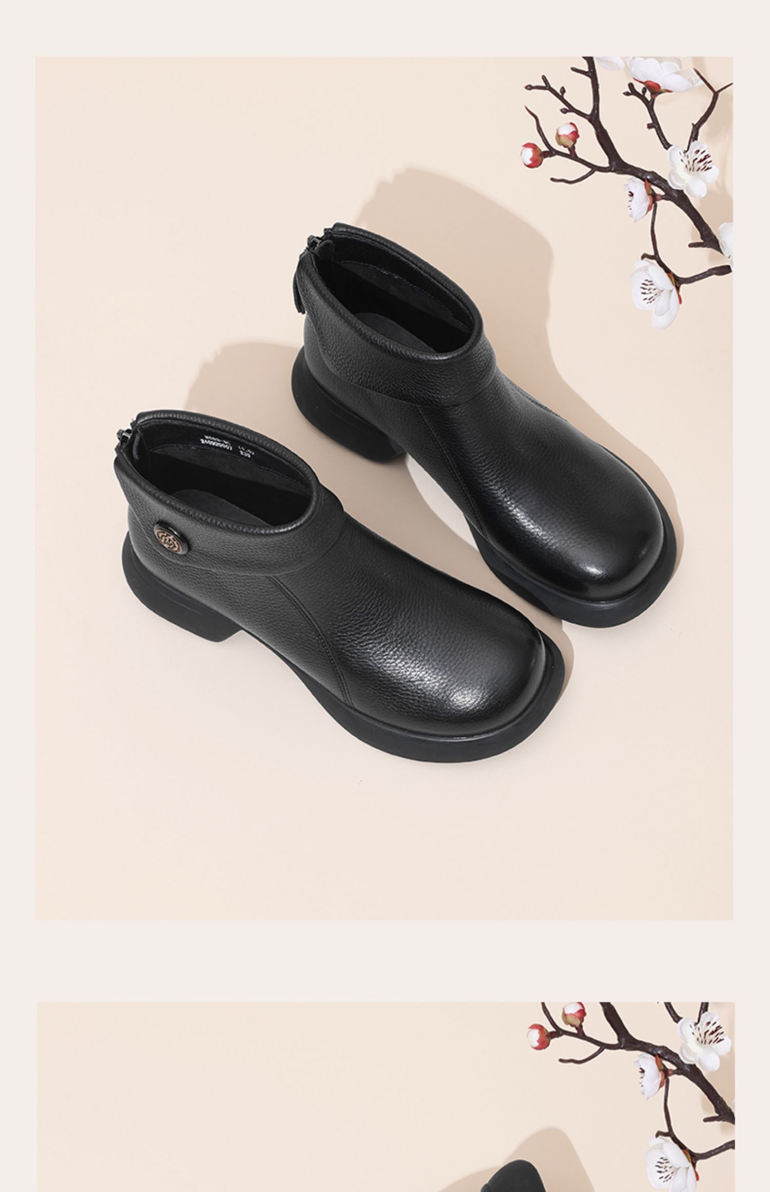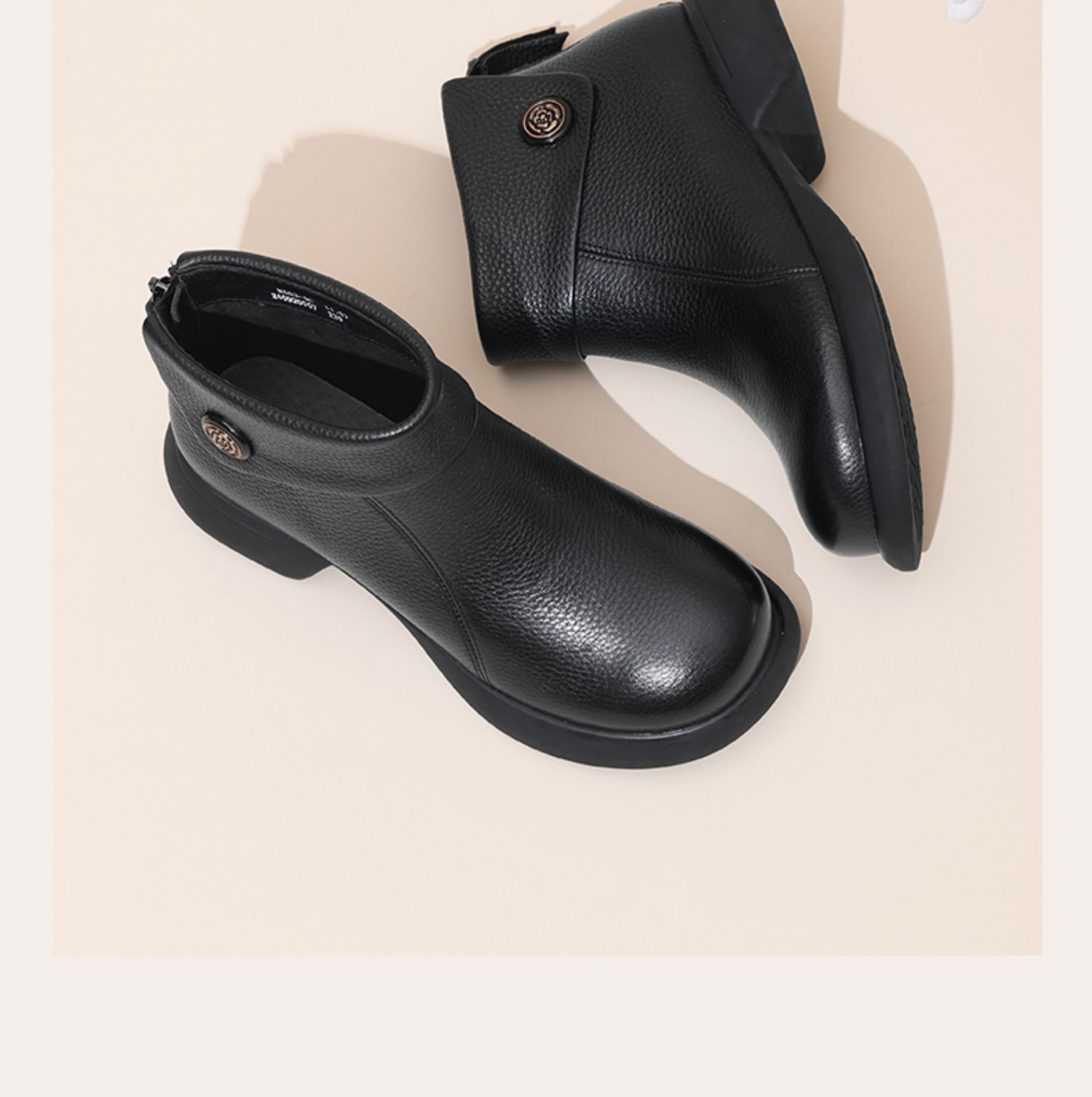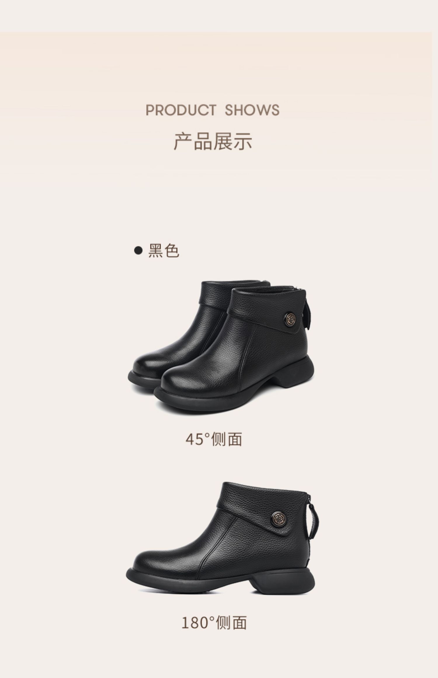 信诺真皮时装靴子不加绒单靴2024秋冬新款女鞋中年妈妈鞋厚底短靴M583-9C