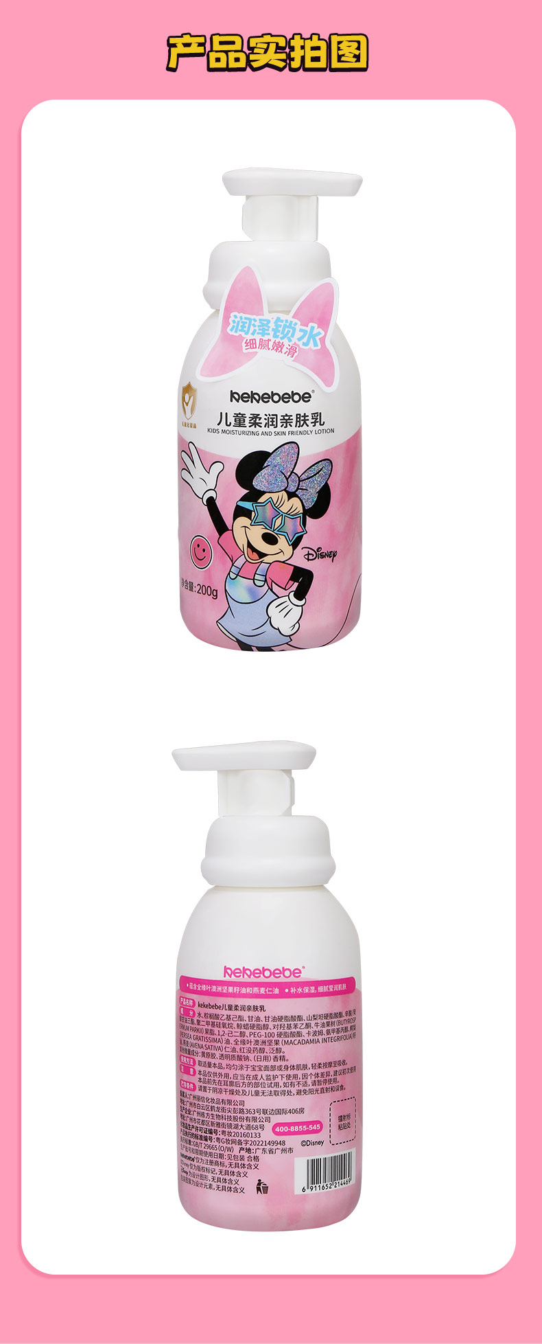 迪士尼kekebebe儿童柔润亲肤乳200g