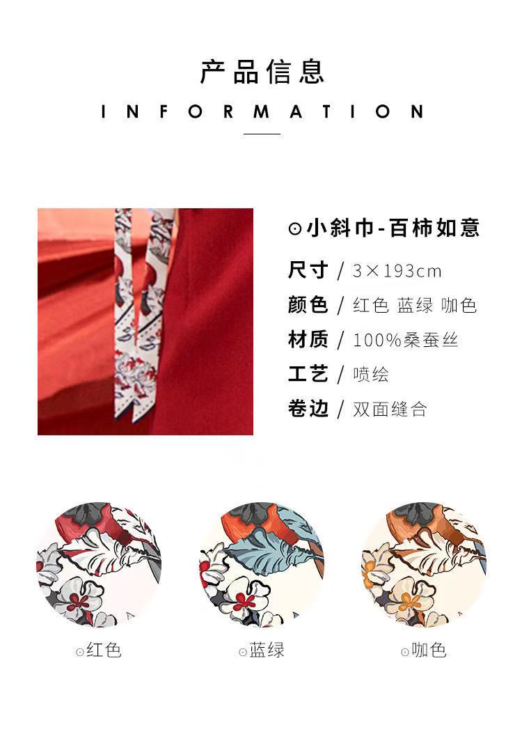 万事利-百柿如意-小斜巾-3cm*193cm 100%桑蚕丝