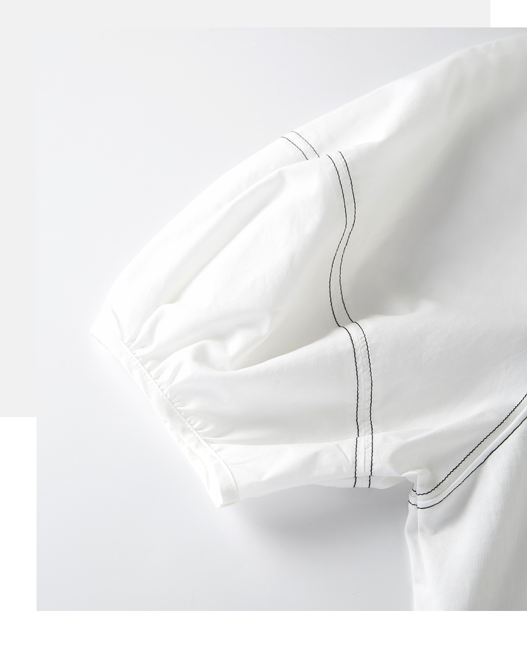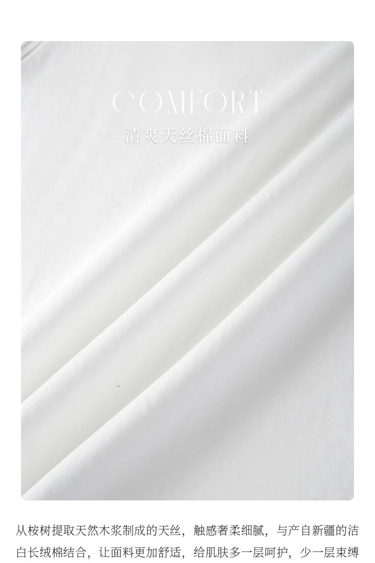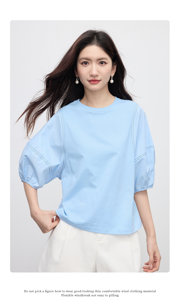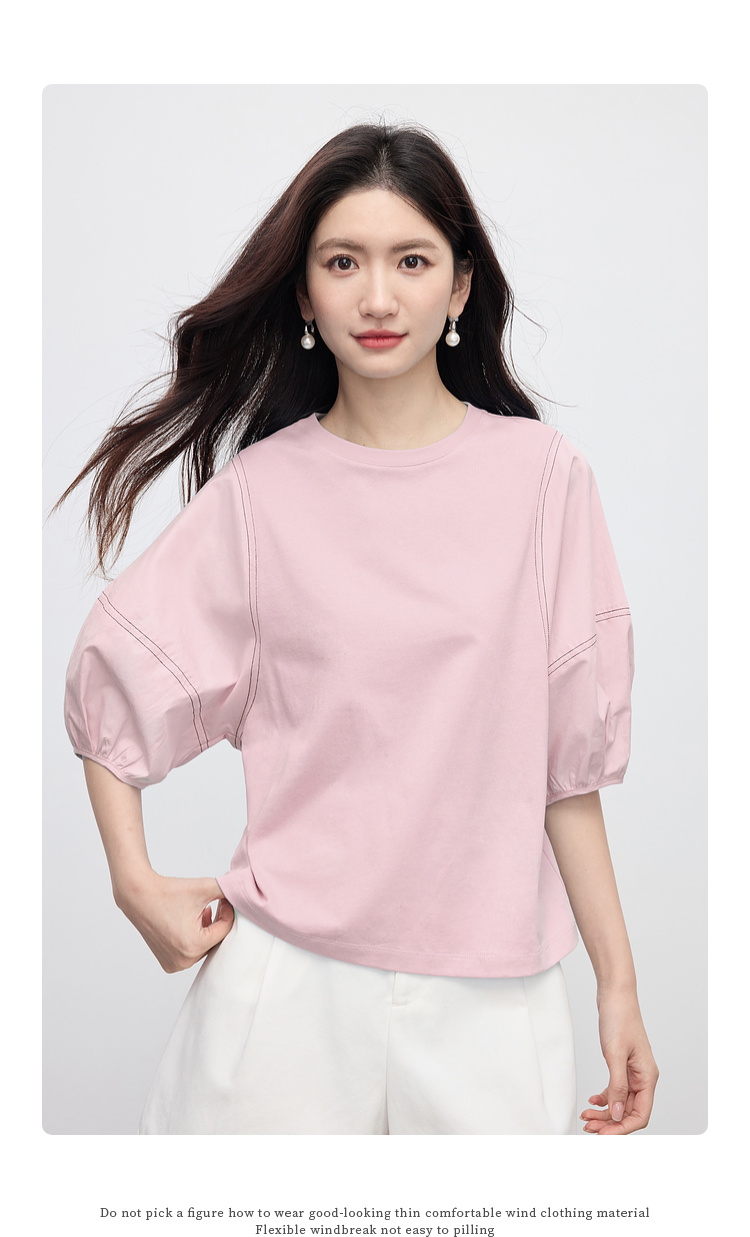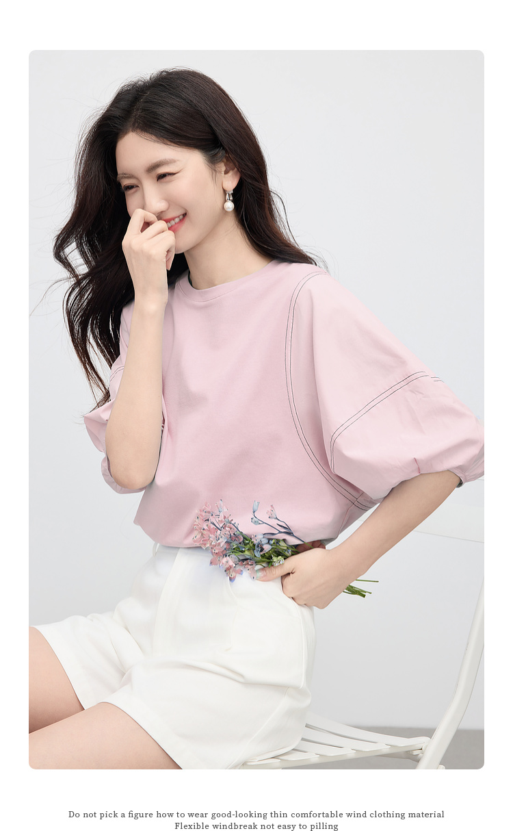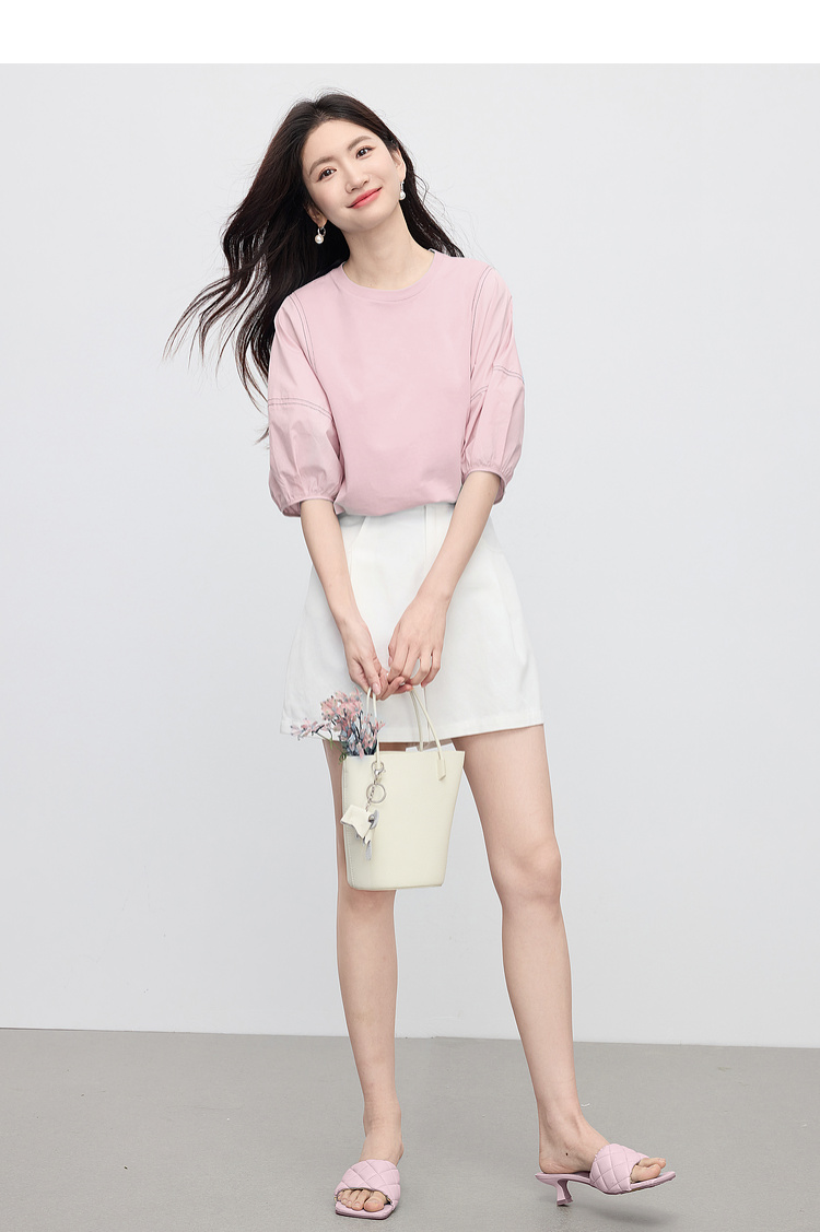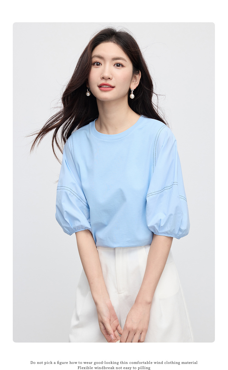 【专属特价】熙世界灯笼袖天丝棉T恤女夏季新款宽松休闲减龄五分中袖白色上衣