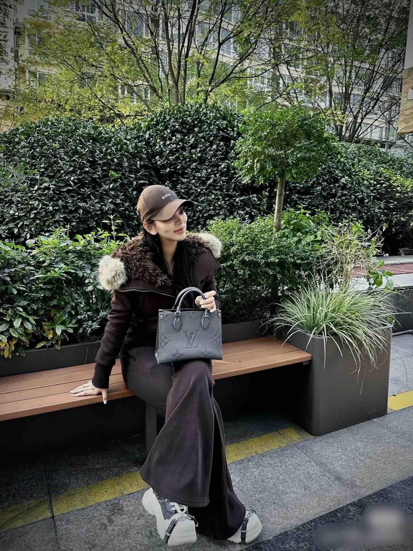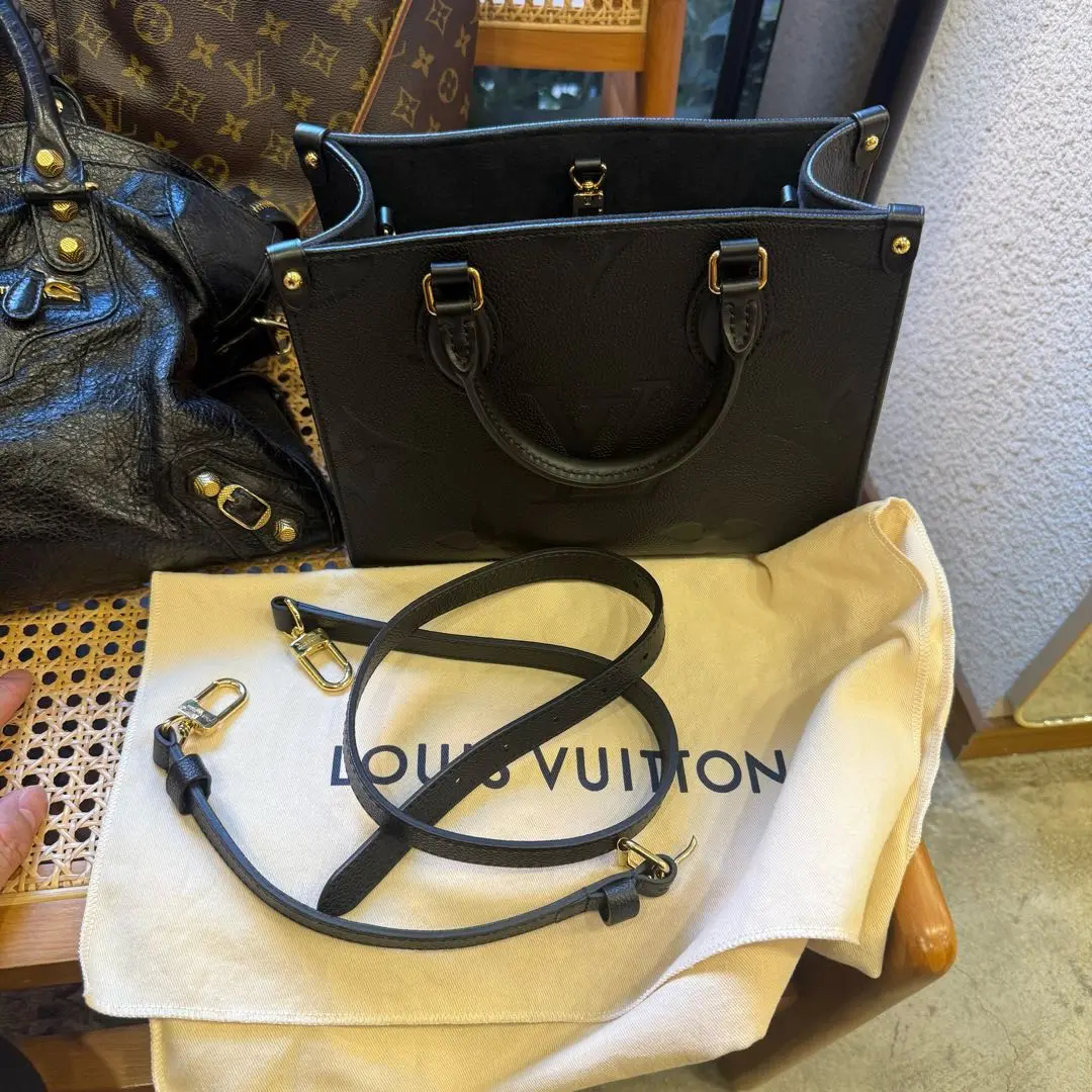 【商品详情】正品二手 LV on the go 小号 黑金 压纹机牛皮 手提 斜挎包🍎98新 25×19 芯片款 配件:肩带 防尘袋。甜酷girl 绝美颜值