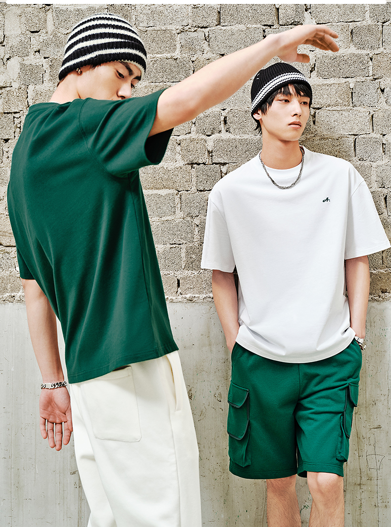 GXG男装 卡其色肌理感休闲短裤织带运动短裤 夏季舒适宽松短裤 G24X222010