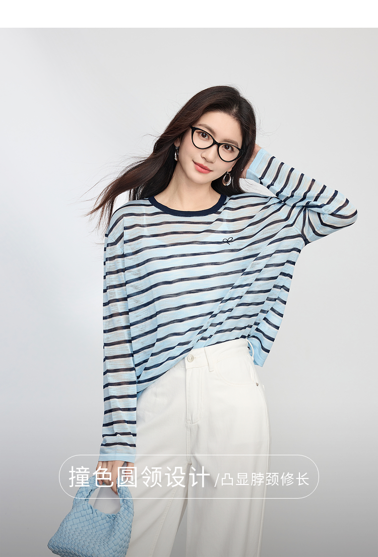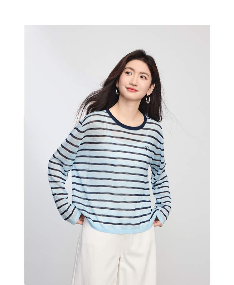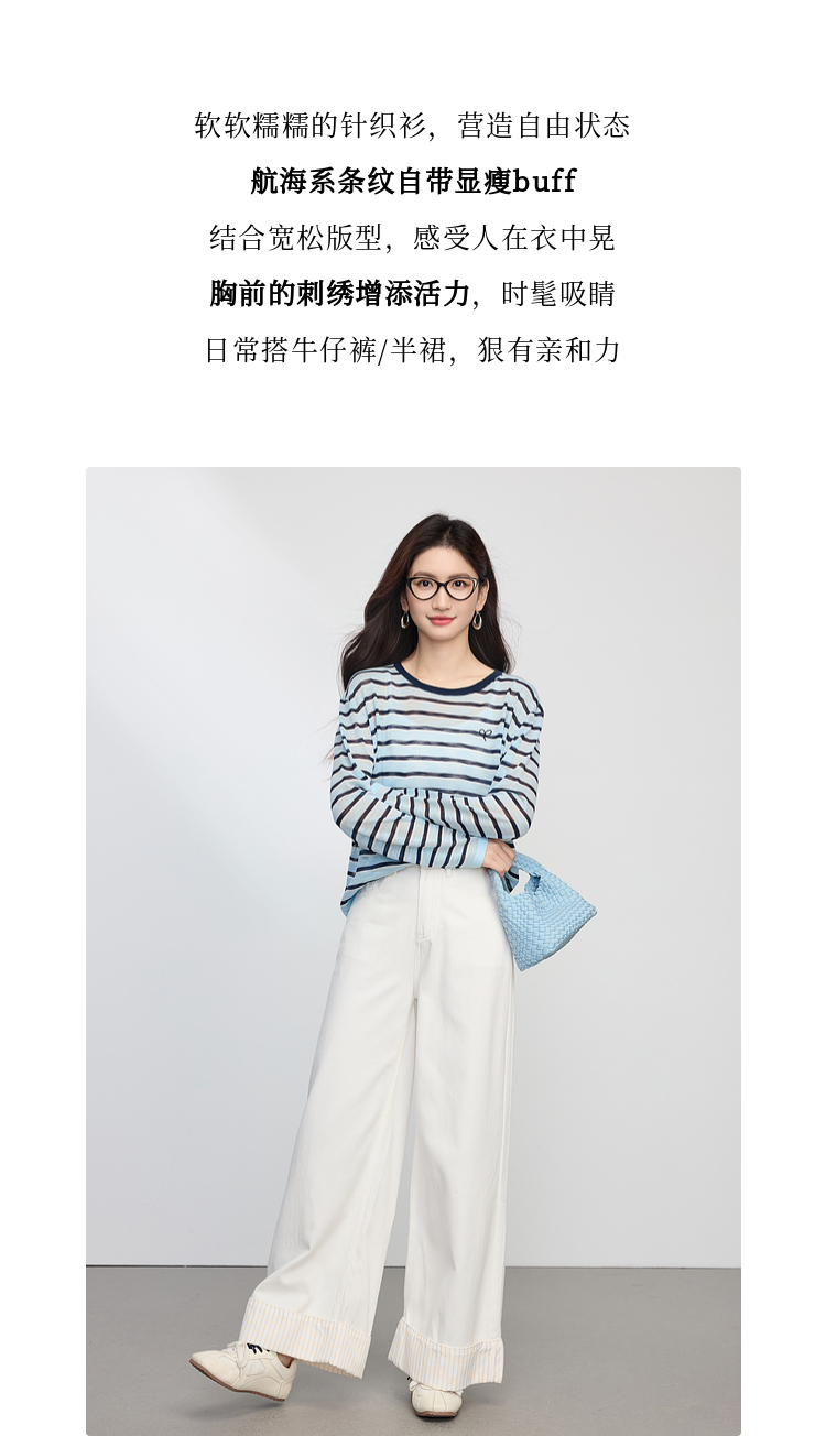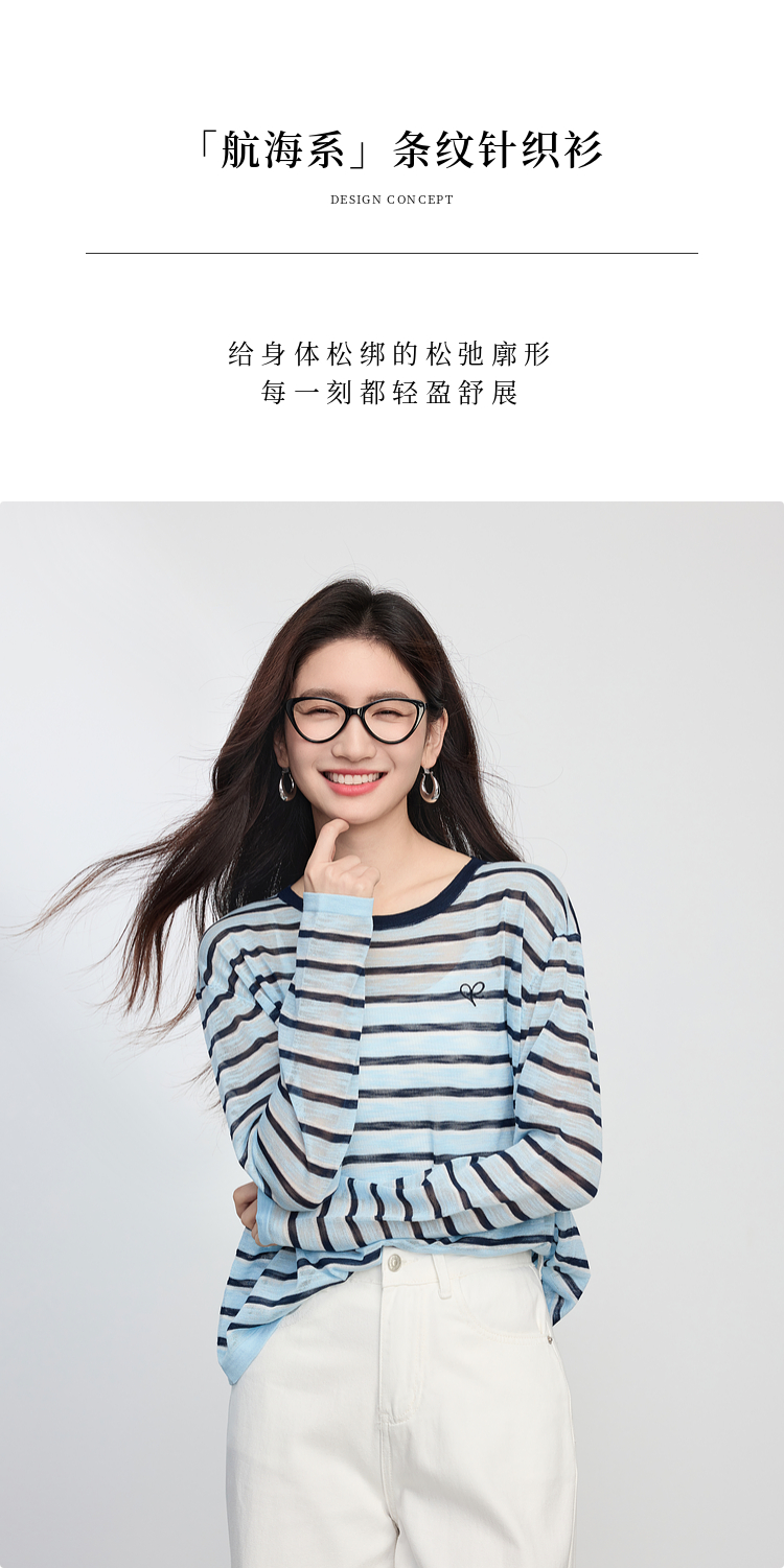 【08/06新品】熙世界航海系条纹针织衫女早秋薄款2025新款宽松慵懒长袖圆领上衣