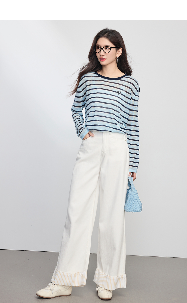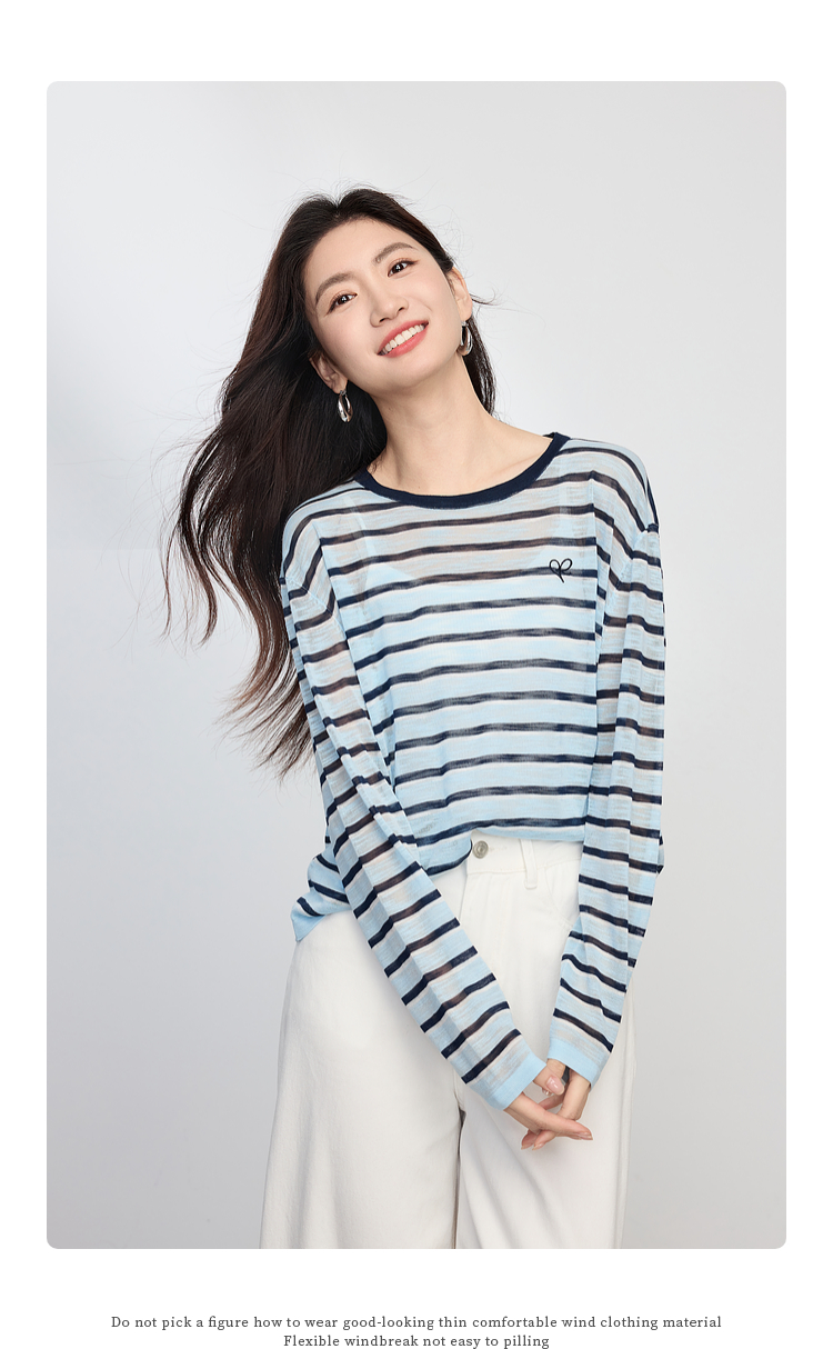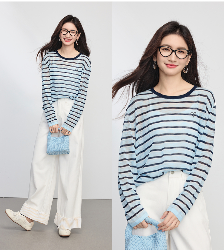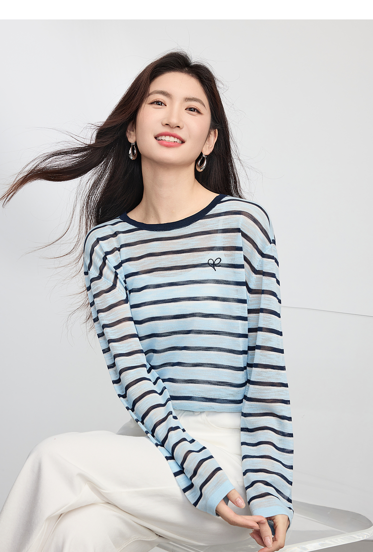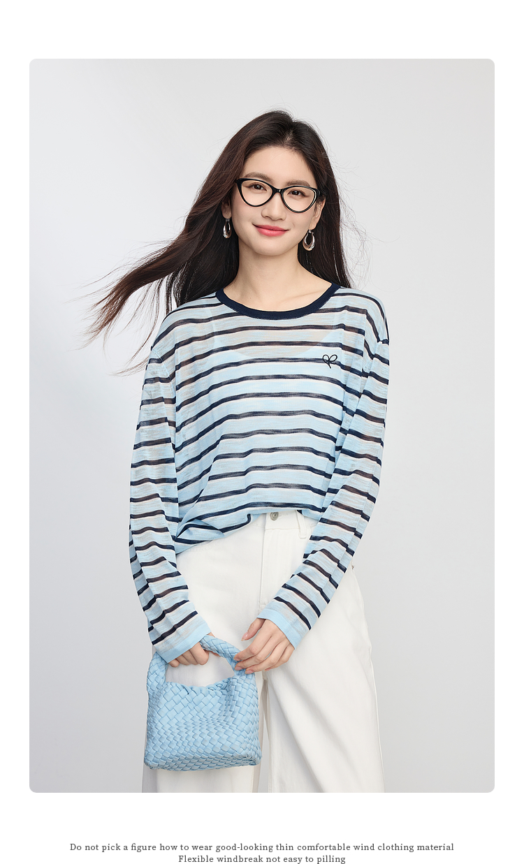 【08/06新品】熙世界航海系条纹针织衫女早秋薄款2025新款宽松慵懒长袖圆领上衣