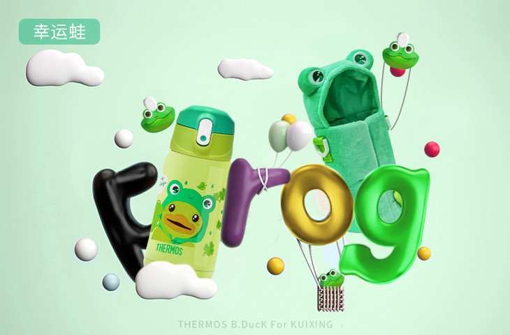 膳魔师儿童保温杯小兔子青蛙杯套吸管杯背带水壶便携水杯宝宝
