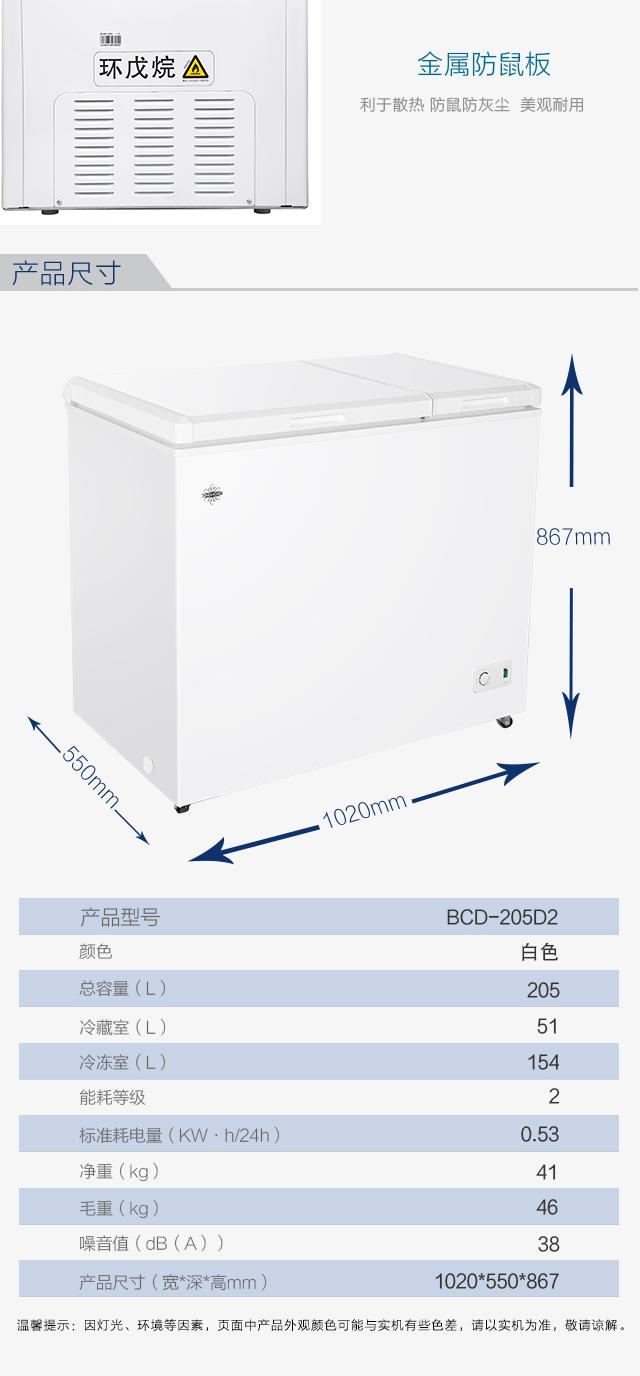 格力晶弘冰柜 双温柜 205L 一机六用 快速冷冻 BCD-205D2/白色