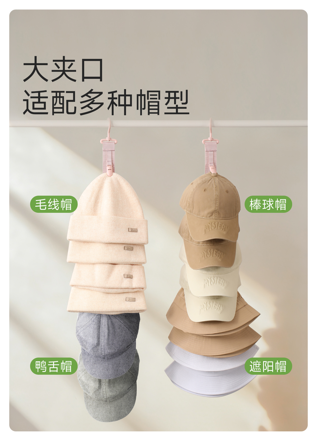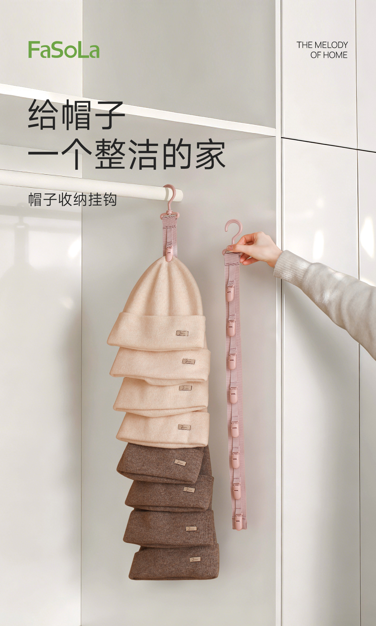 FaSoLa帽子收纳神器壁挂家用省空间墙上鸭舌帽夹衣柜宿舍门后挂钩