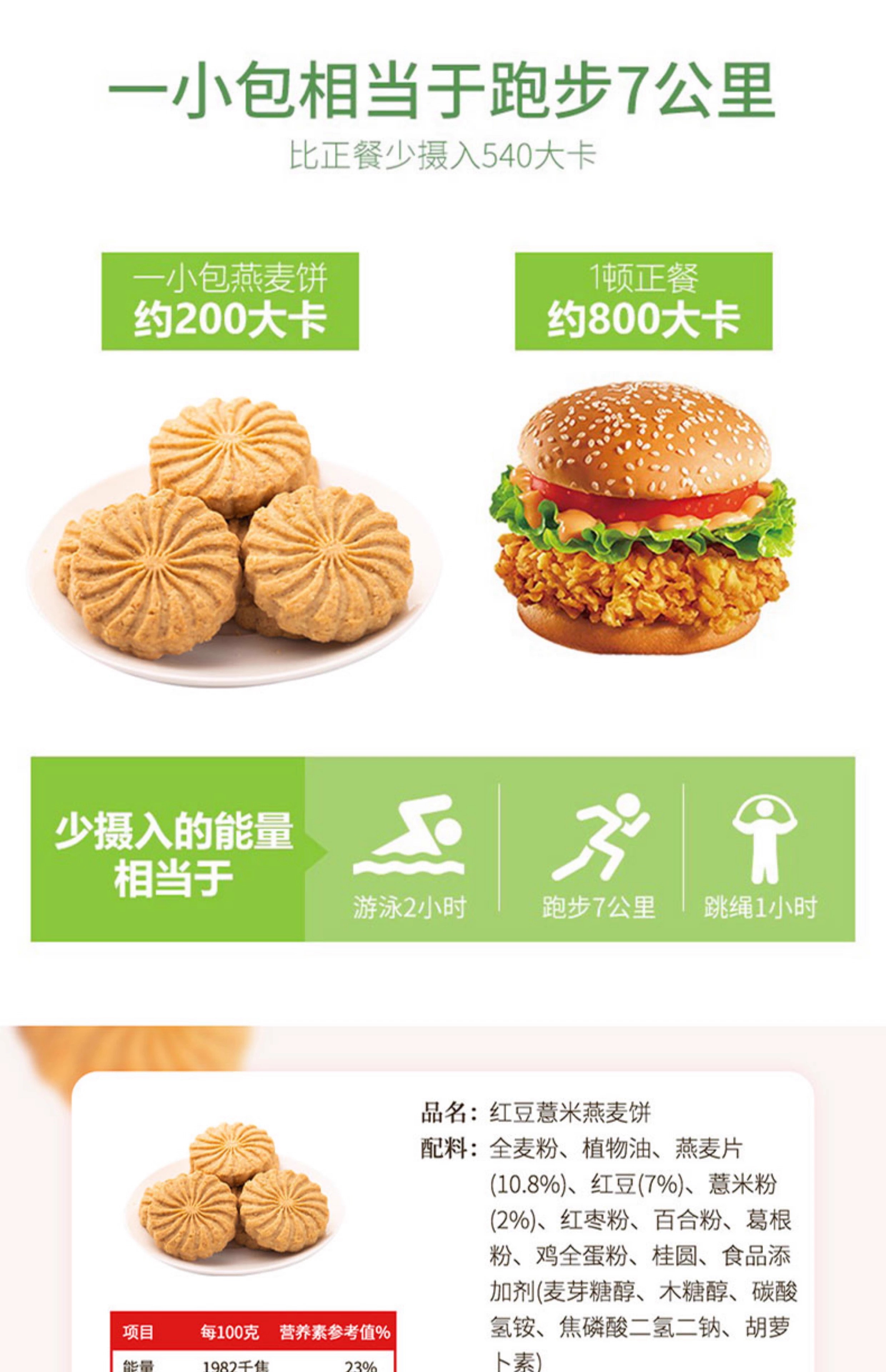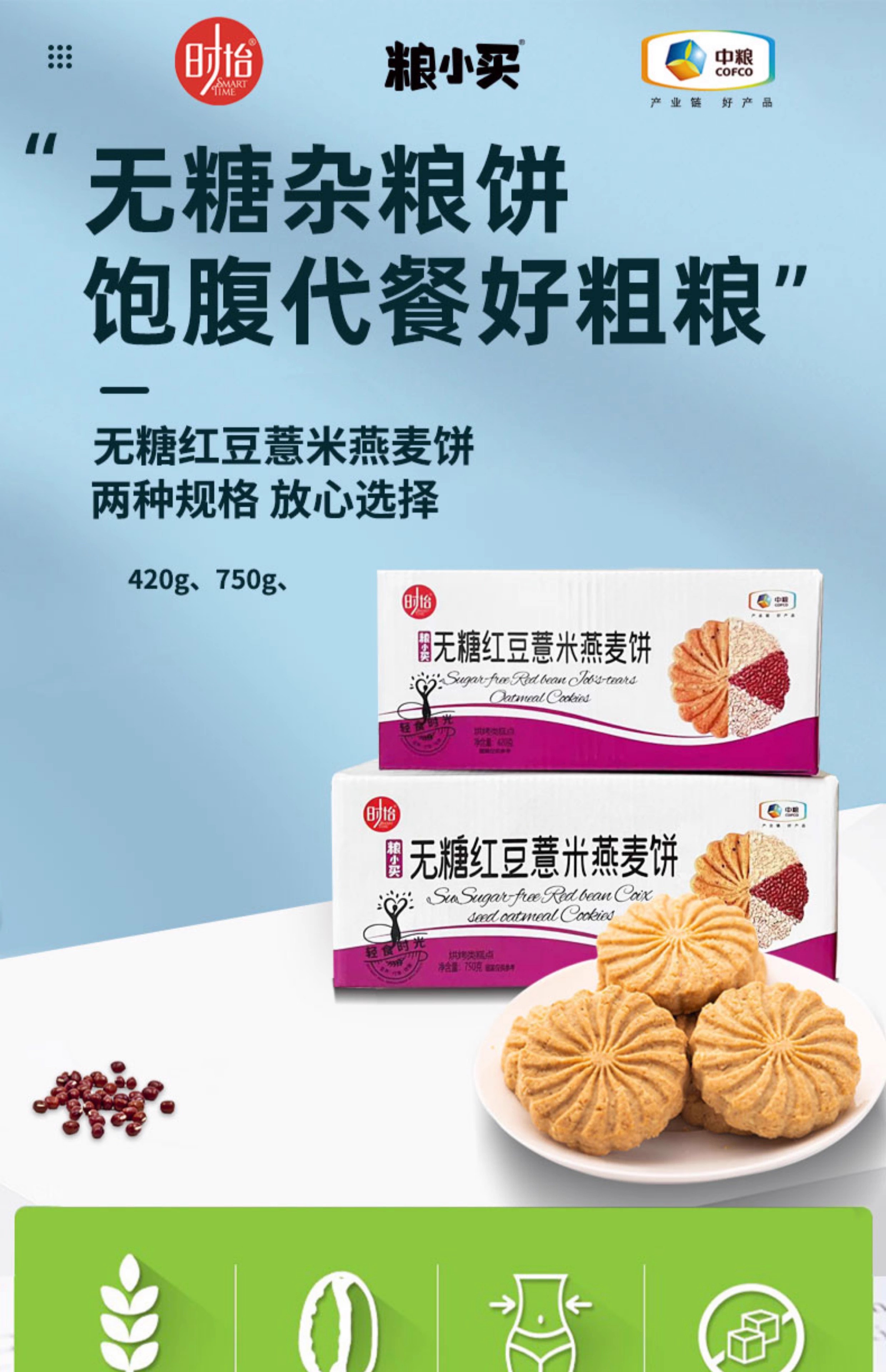 【秒杀】中粮粮小买无糖红豆薏米燕麦饼750g