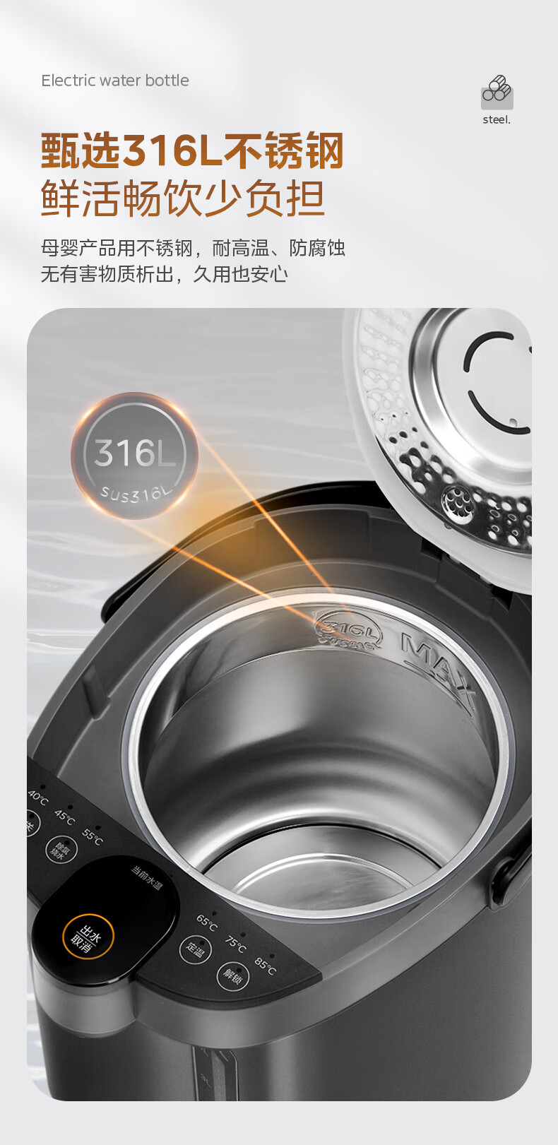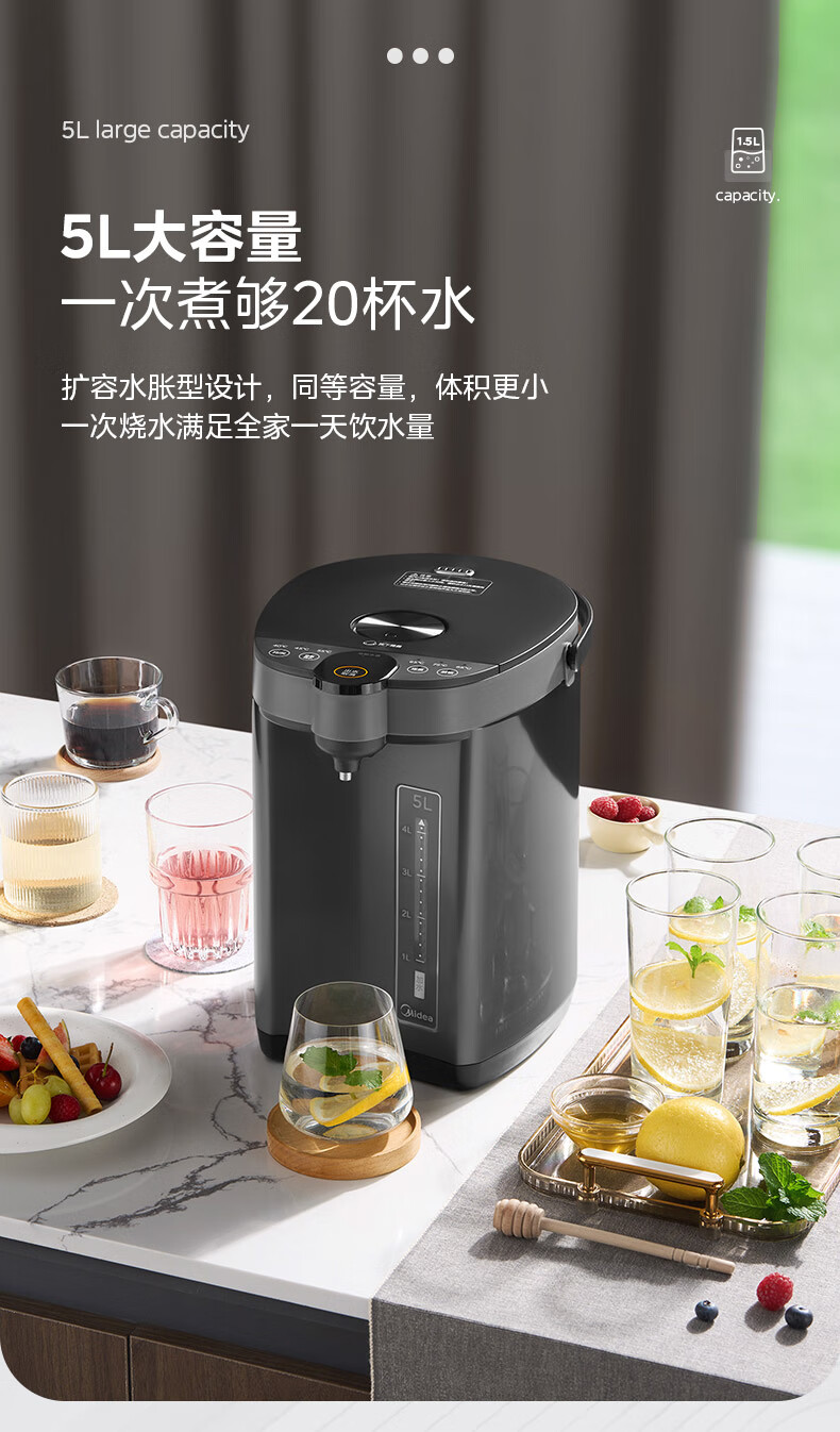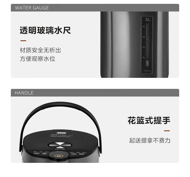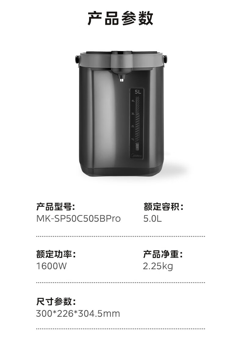 美的(Midea)电热水瓶不锈钢电热水壶 大容量电热水瓶多段温控电水壶 MK-SP50C505BPro(316L不锈内胆)