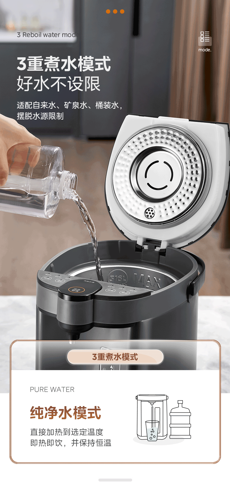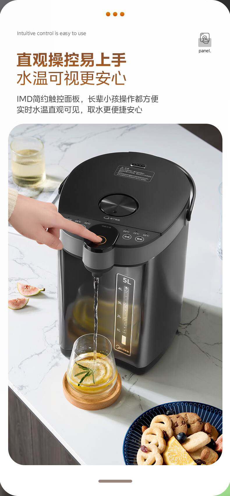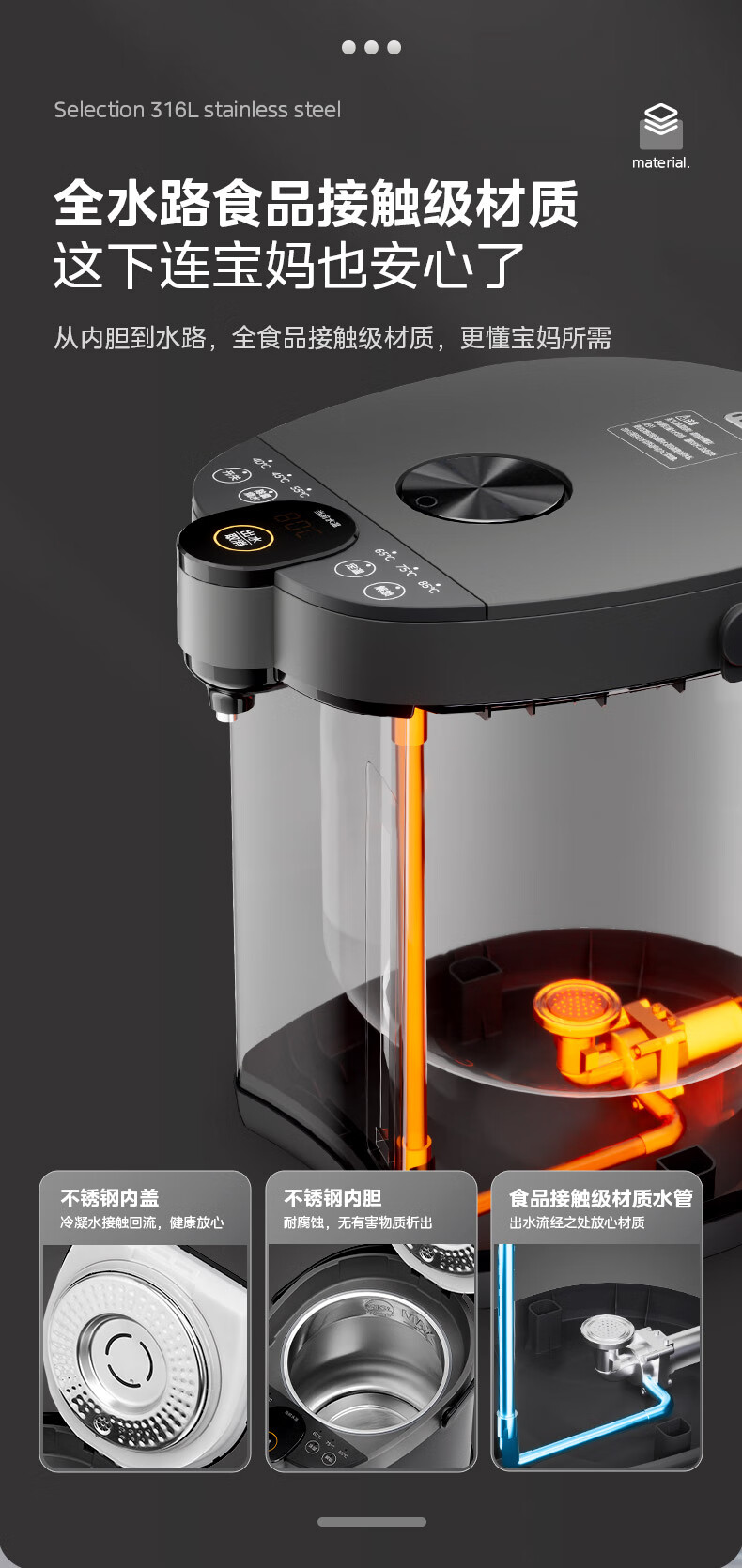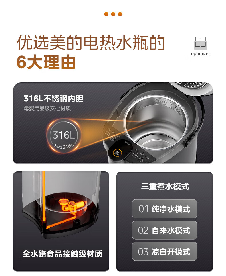 美的(Midea)电热水瓶不锈钢电热水壶 大容量电热水瓶多段温控电水壶 MK-SP50C505BPro(316L不锈内胆)