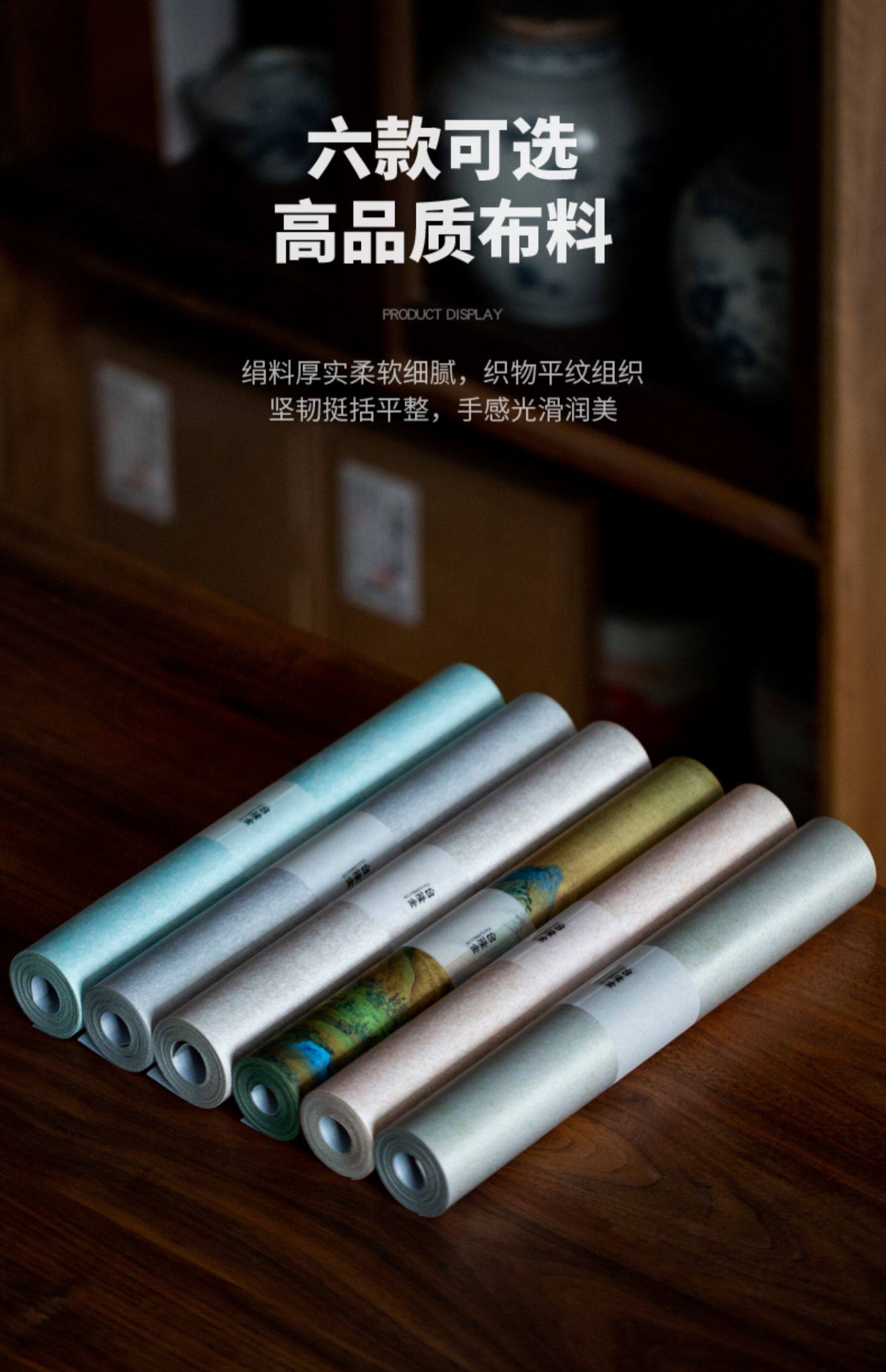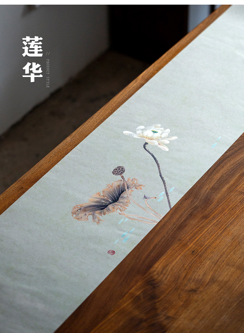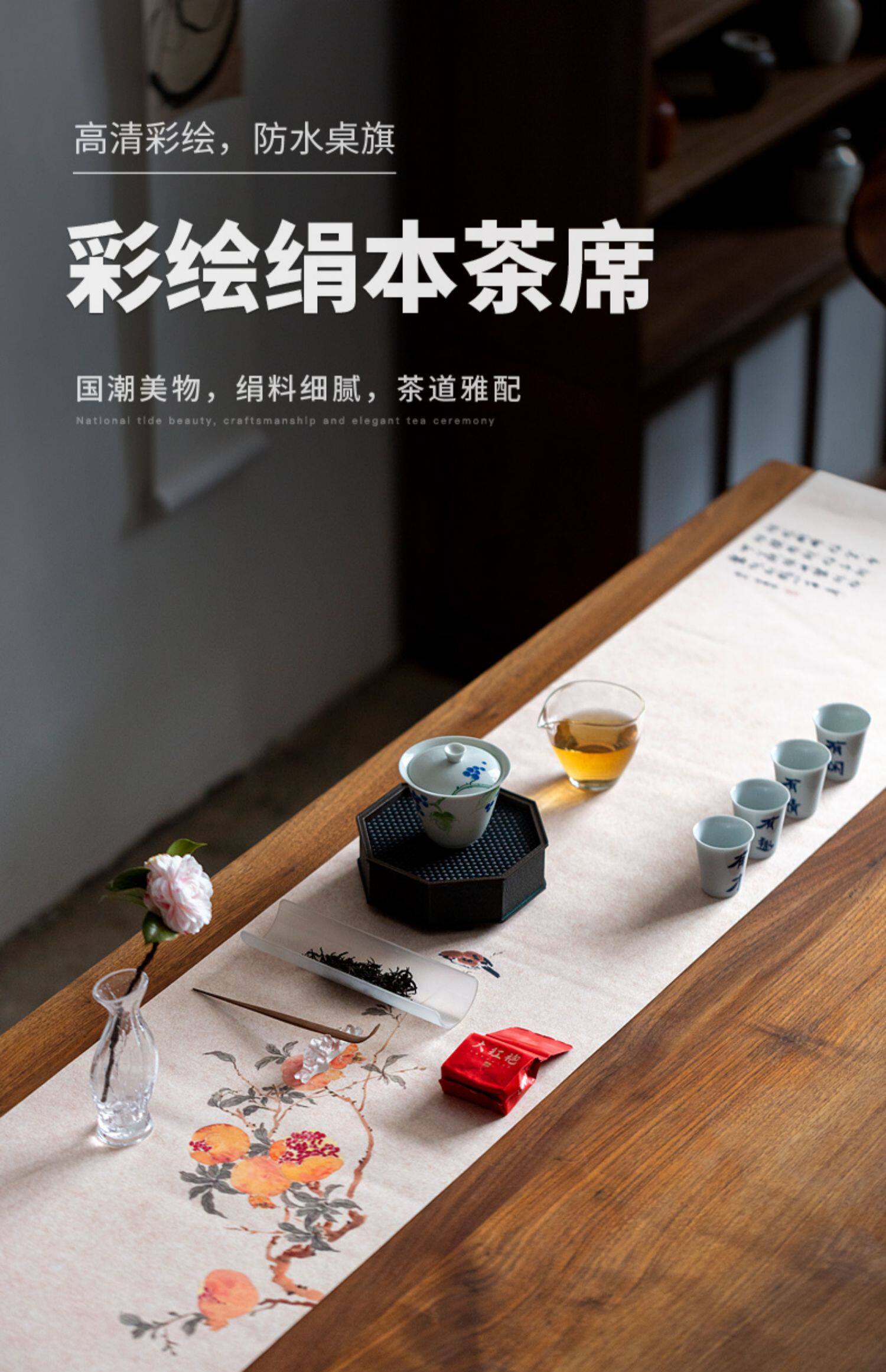彩绘绢本茶席/茶席防水绢本茶桌布彩绘中式禅意茶台桌旗茶具茶艺杯垫茶道配件