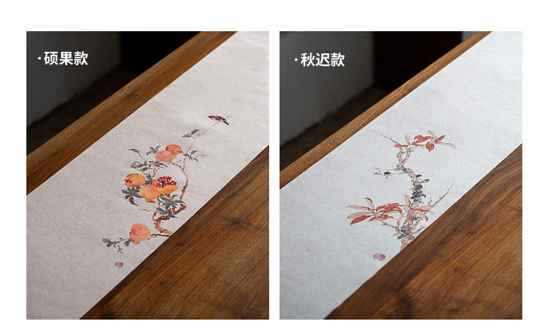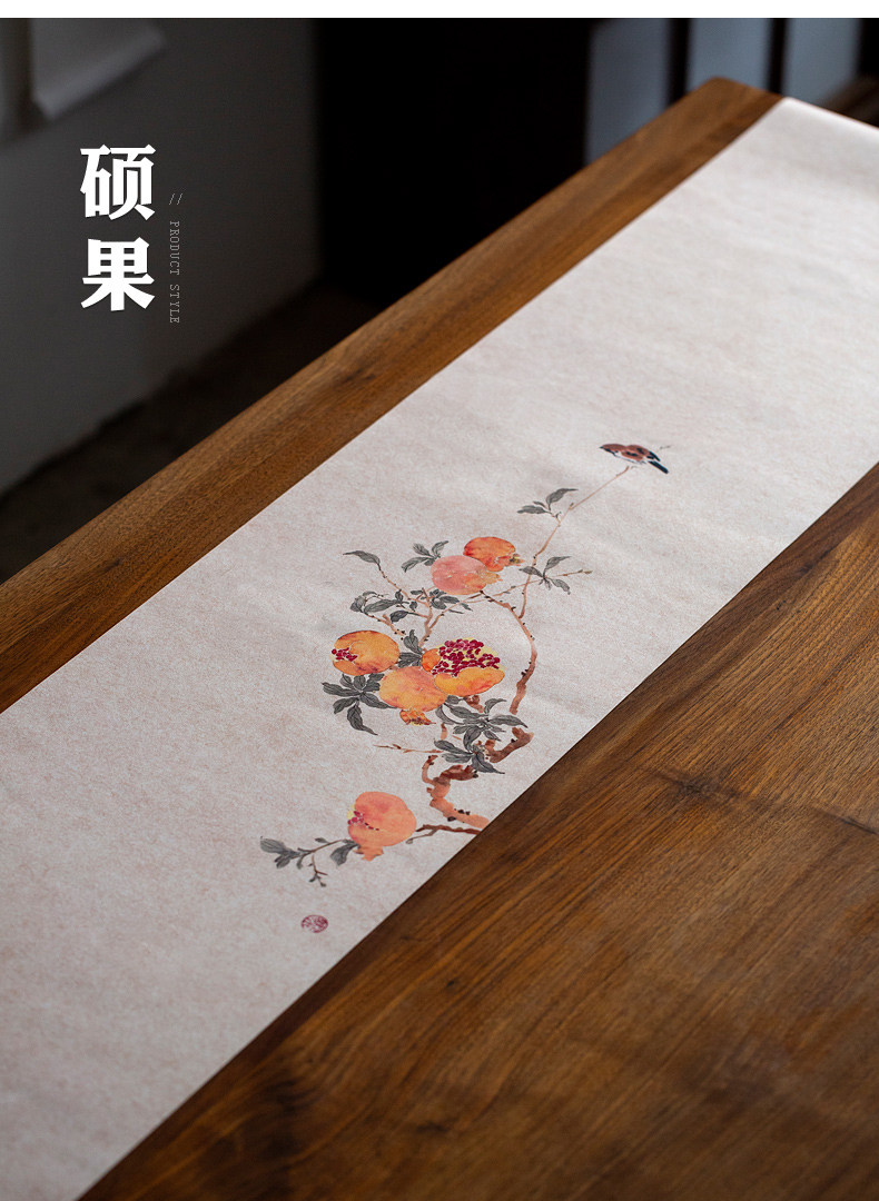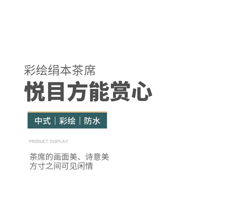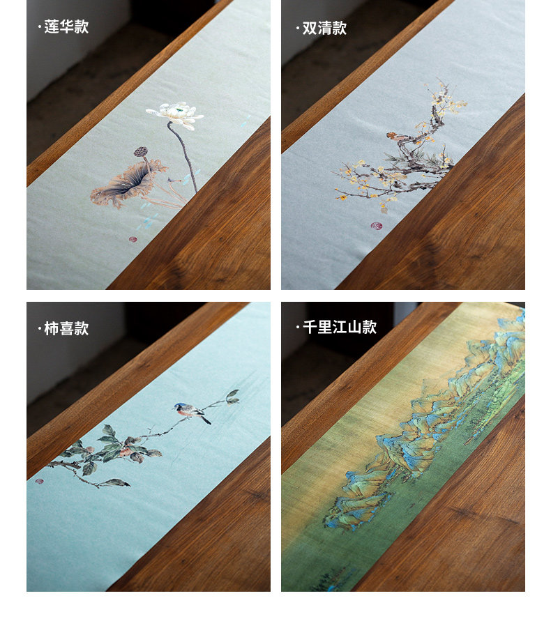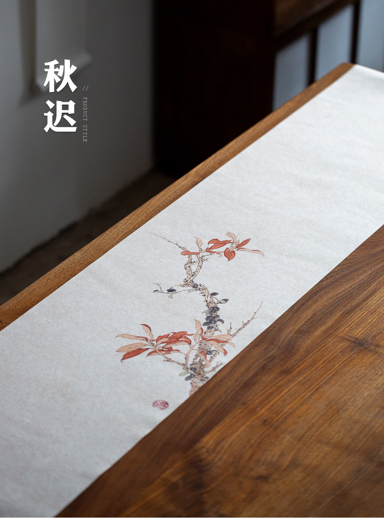 彩绘绢本茶席/茶席防水绢本茶桌布彩绘中式禅意茶台桌旗茶具茶艺杯垫茶道配件