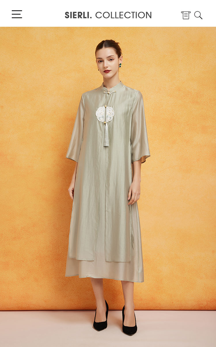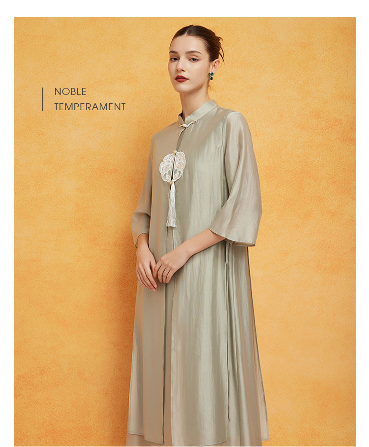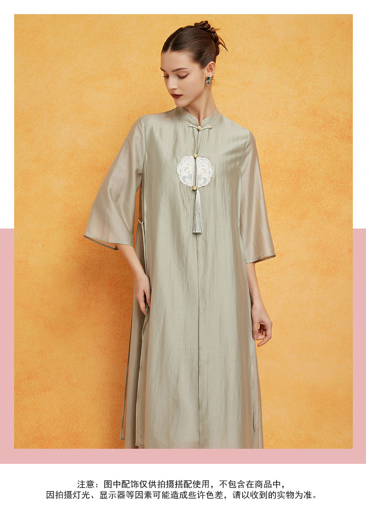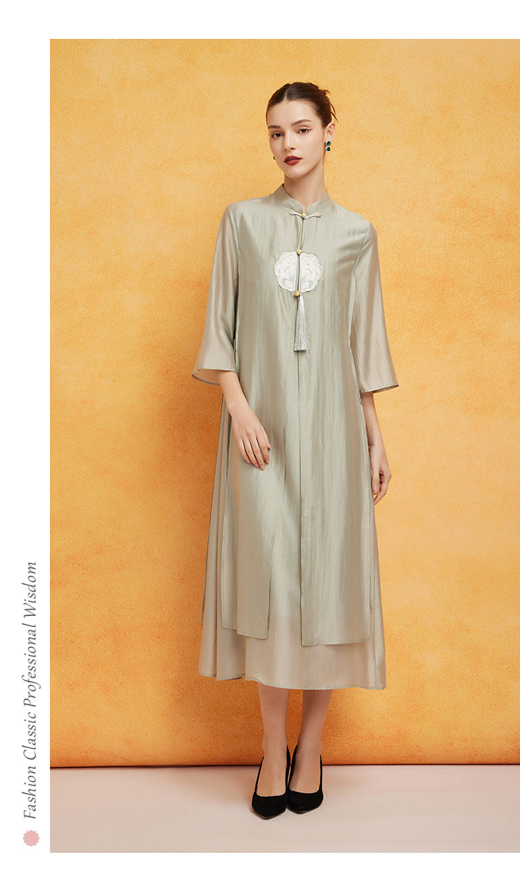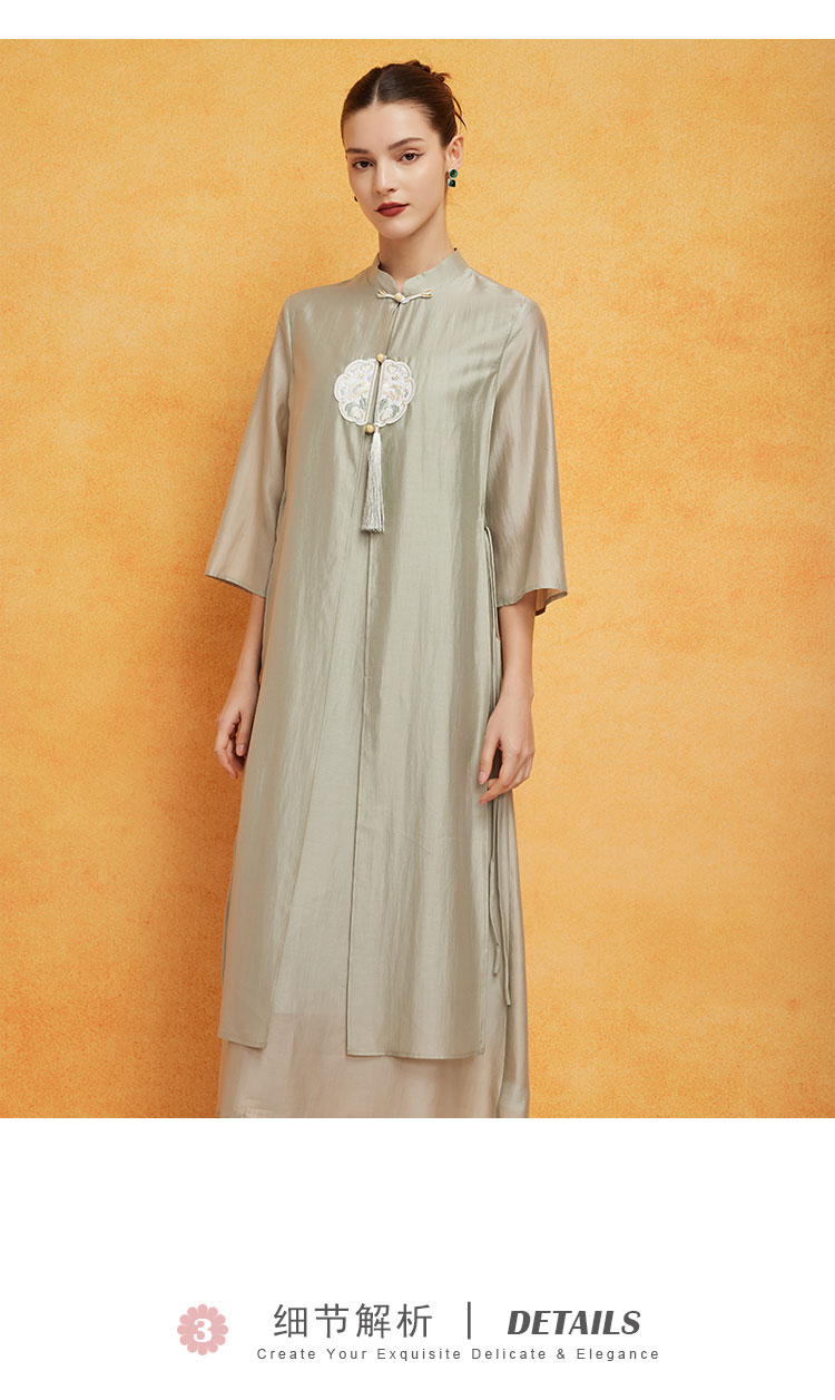 PF8B2斯尔丽2024新款气质连衣裙夏季宽松中式刺绣知性两件套改良旗袍