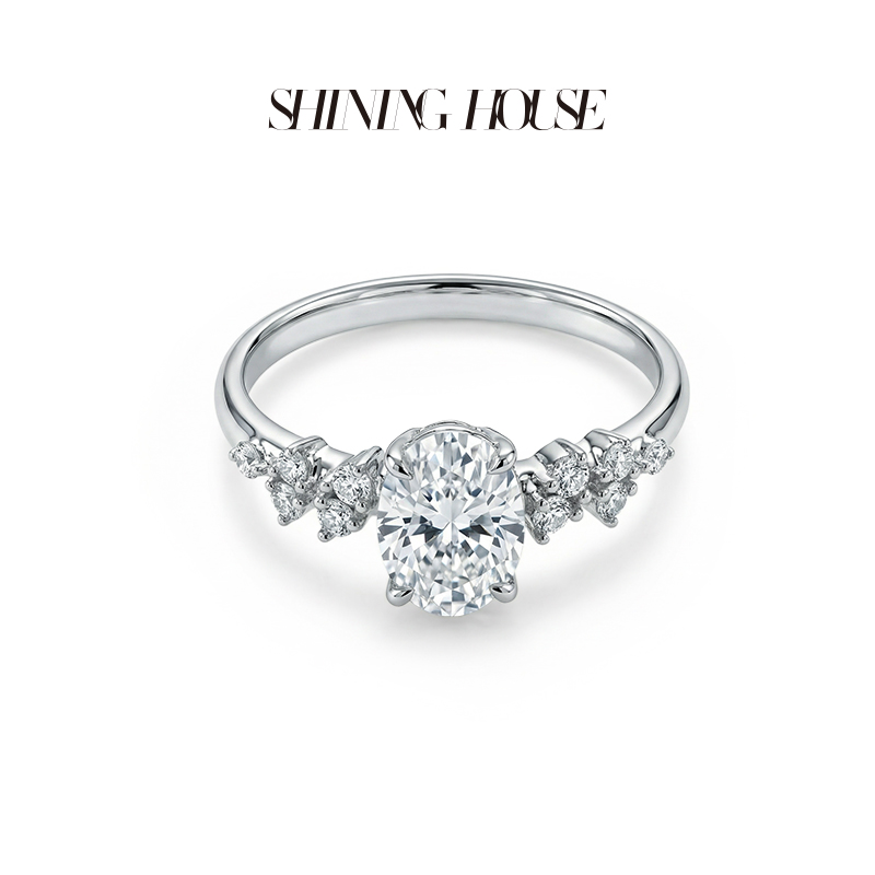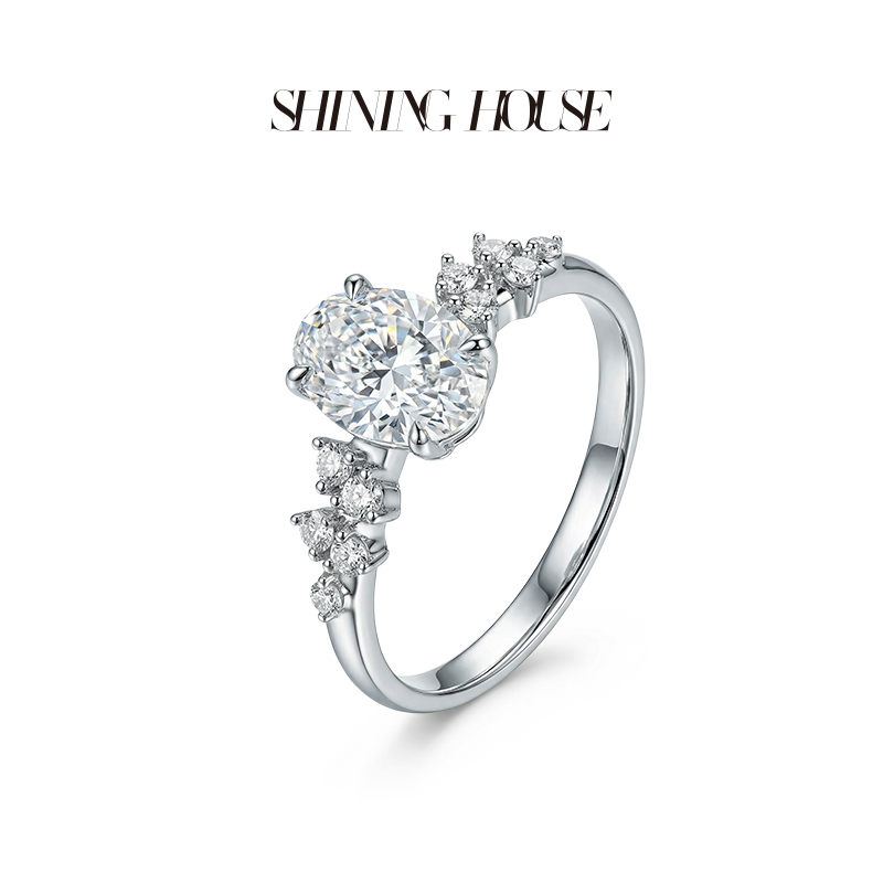 ShiningHouse[培育] 18k金钻石戒指 椭圆形1克拉钻人工真钻人造钻石K金戒指时尚钻石戒指悦己送礼臻选【此商品不支持7天无理由退货退款】预计3日发货