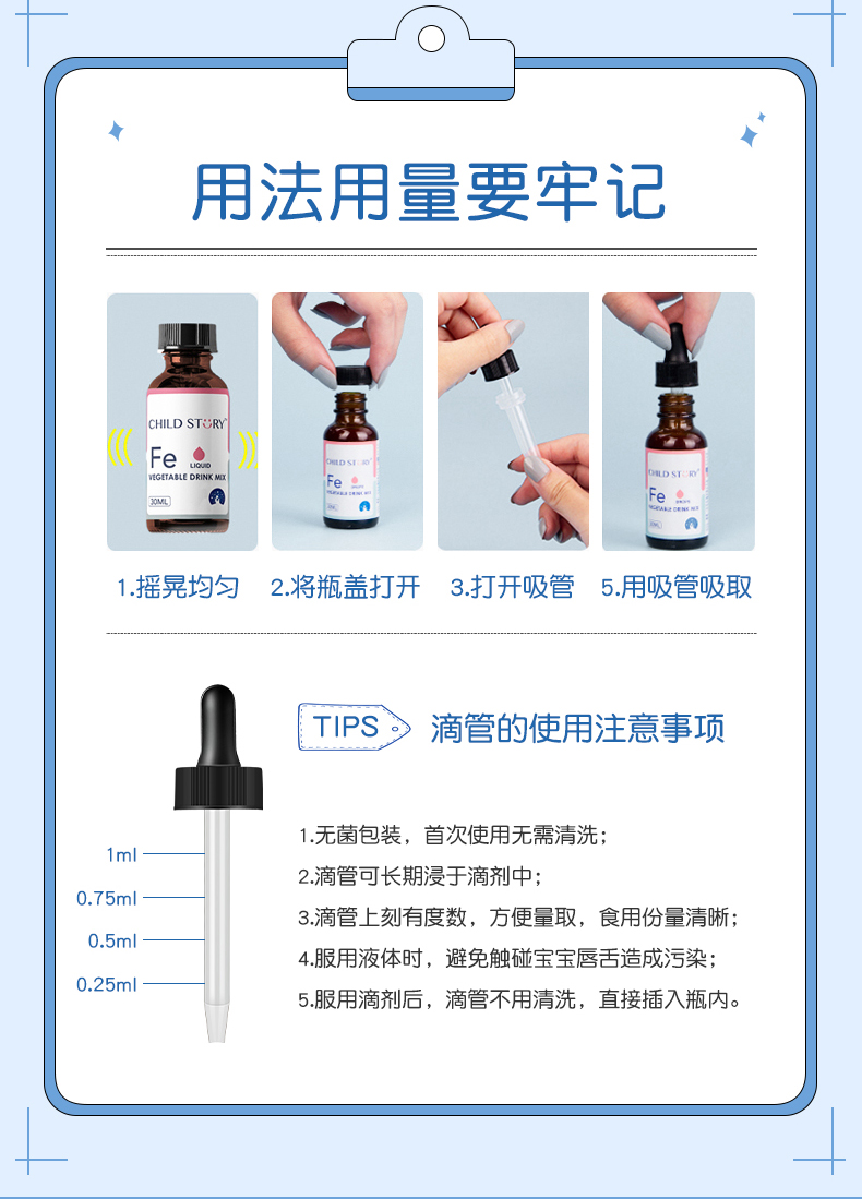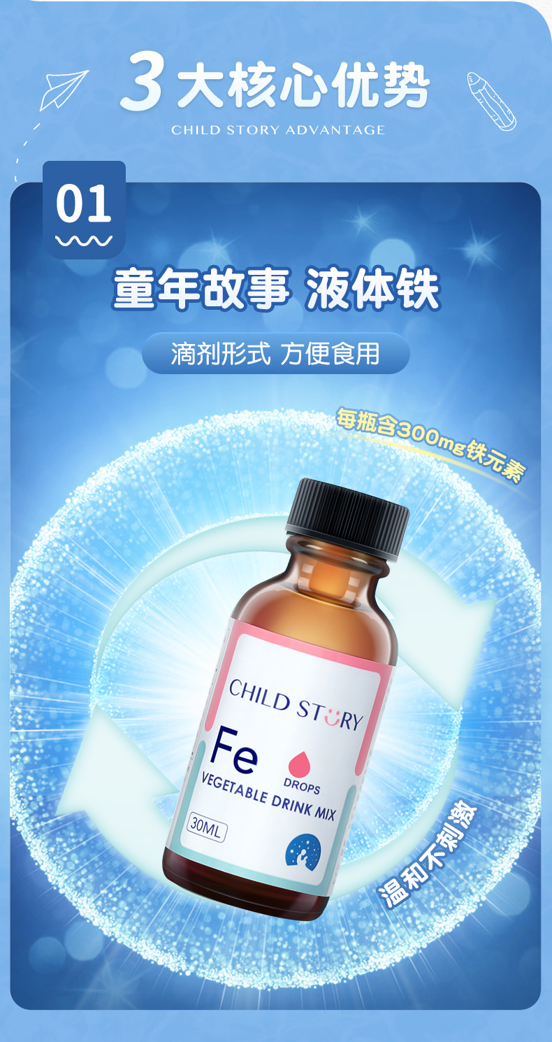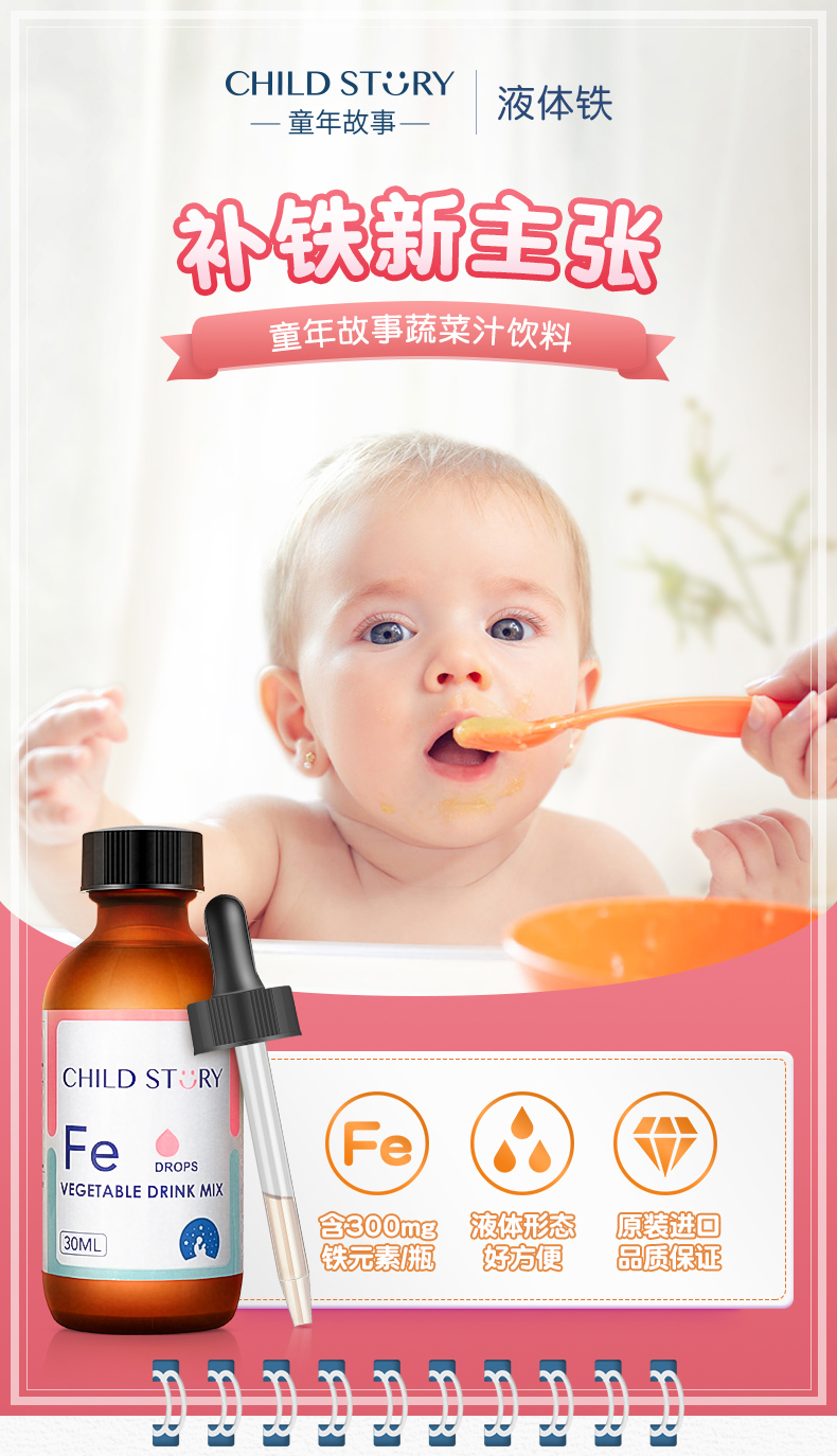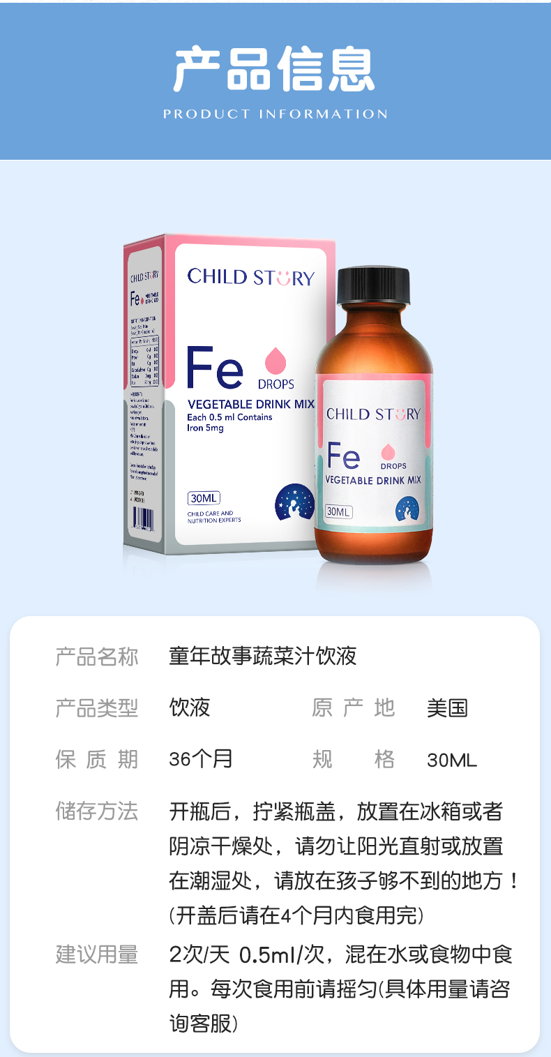 童年故事蔬菜汁饮液铁滴剂补铁儿童铁剂成人孕妇儿童补铁滴剂30ml