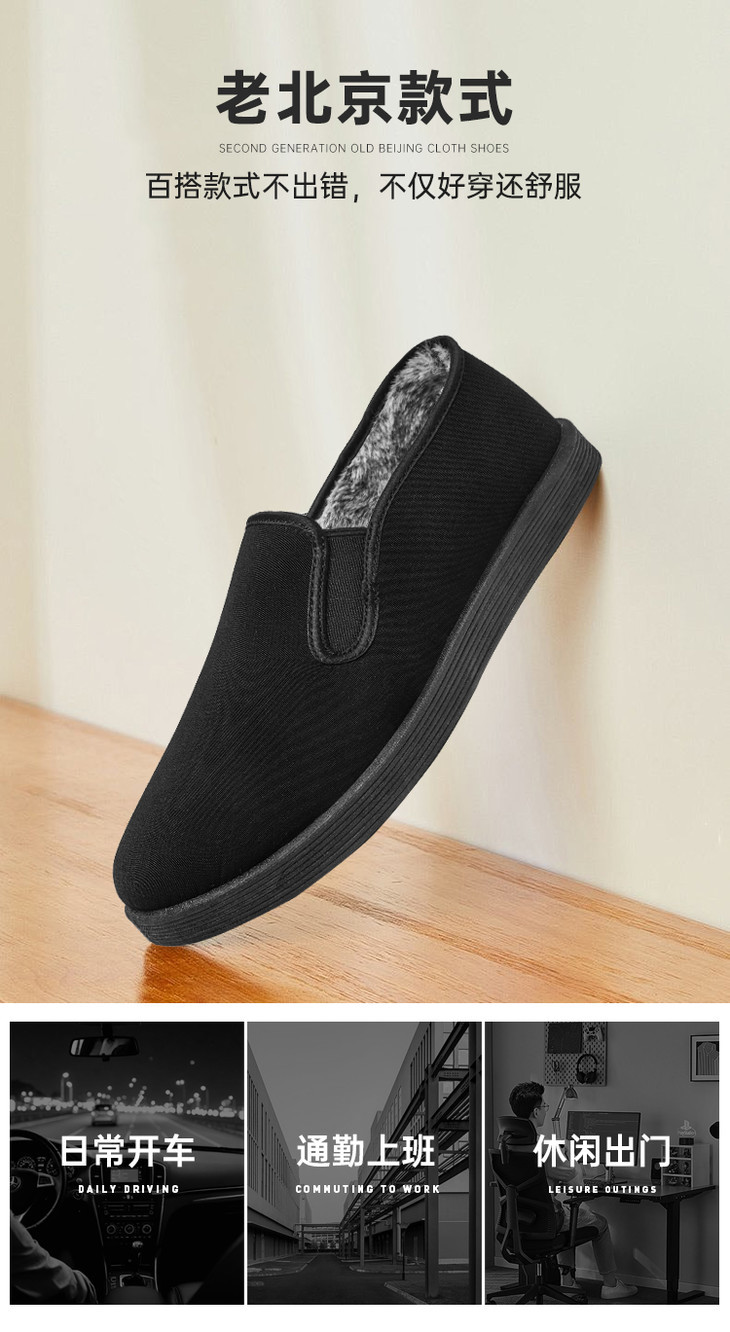 【实付满399送保温杯】【二代加绒防滑老北京布鞋】快速穿脱休闲布鞋 轻便一脚蹬棉布鞋XB409
