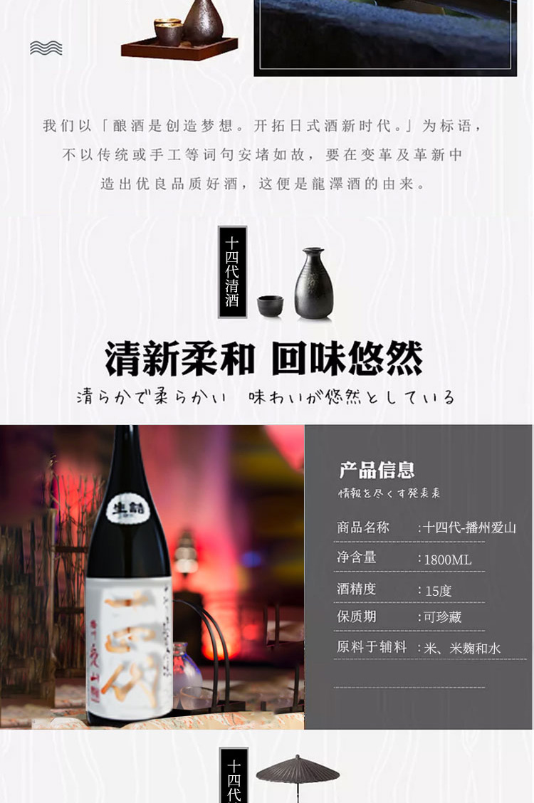 【单瓶】十四代 中取 播州爱山纯米吟酿 15%vol 1.8L