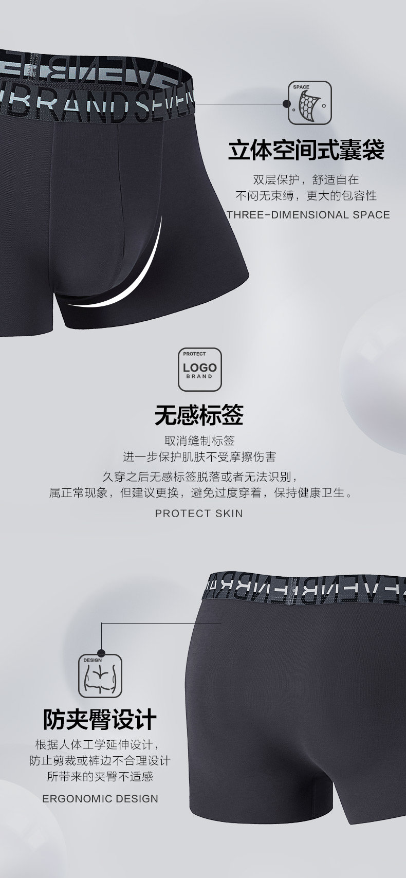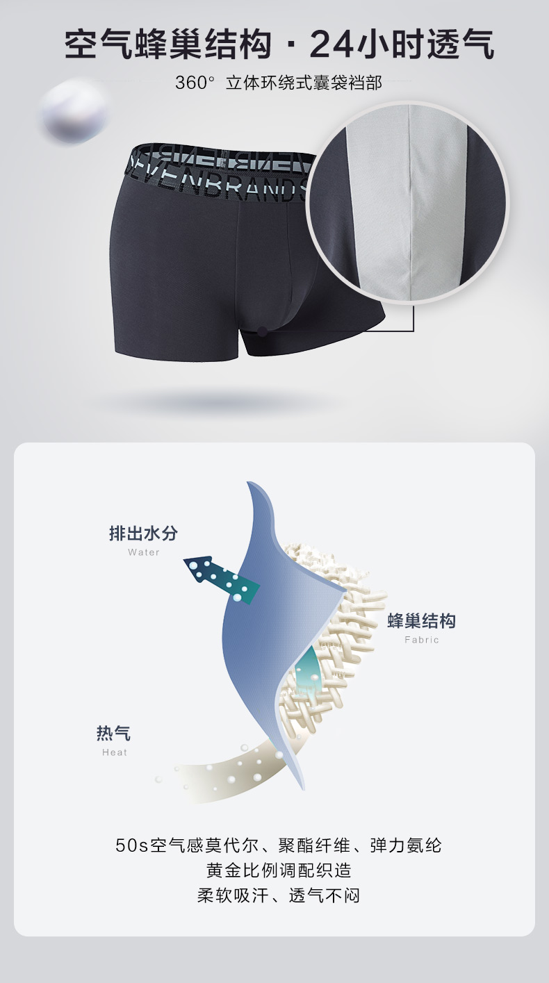 柒牌男士内裤平角裤2020新款青年透气抗菌短裤个性潮流四角男裤头 118F70150