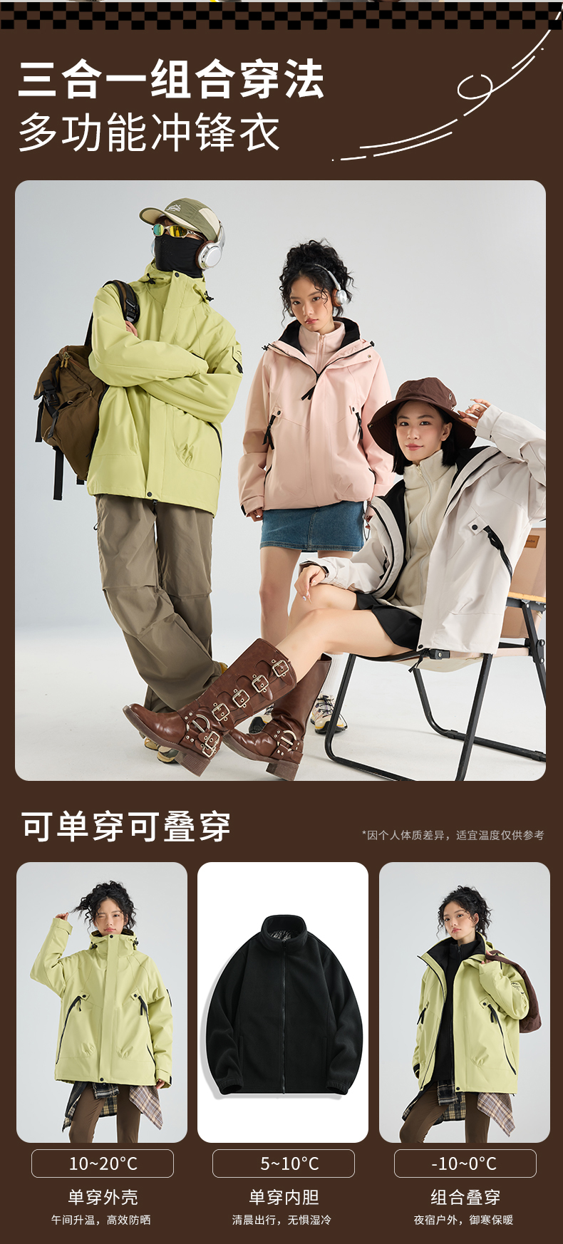 【限时钜惠】冬季防风衣男女三合一可拆卸两件套