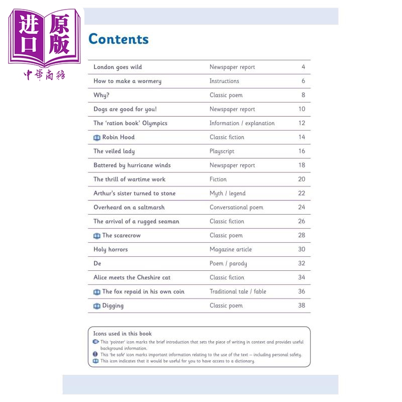 关键阶段 2 理解提供了一系列有趣的文本,以及既能培养理解能力又能扩大词汇量的问题。鼓励儿童密切关注字面意思,进行推断和演绎,观察写作的结构并识别文学手法。第二册适合阅读能力流利准确的儿童,包括: