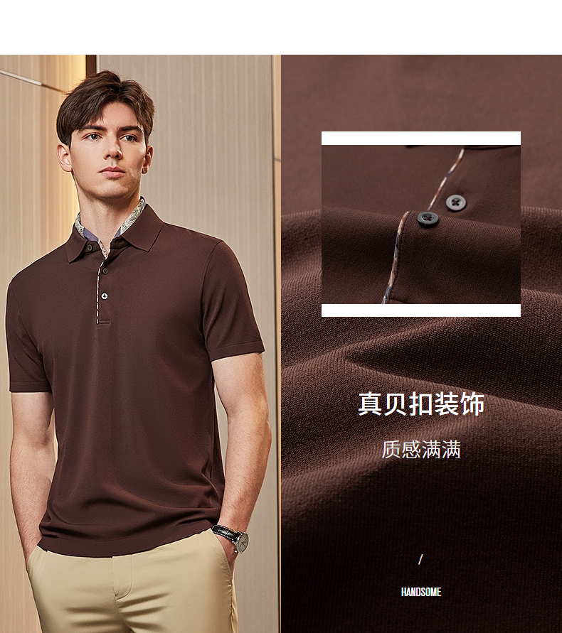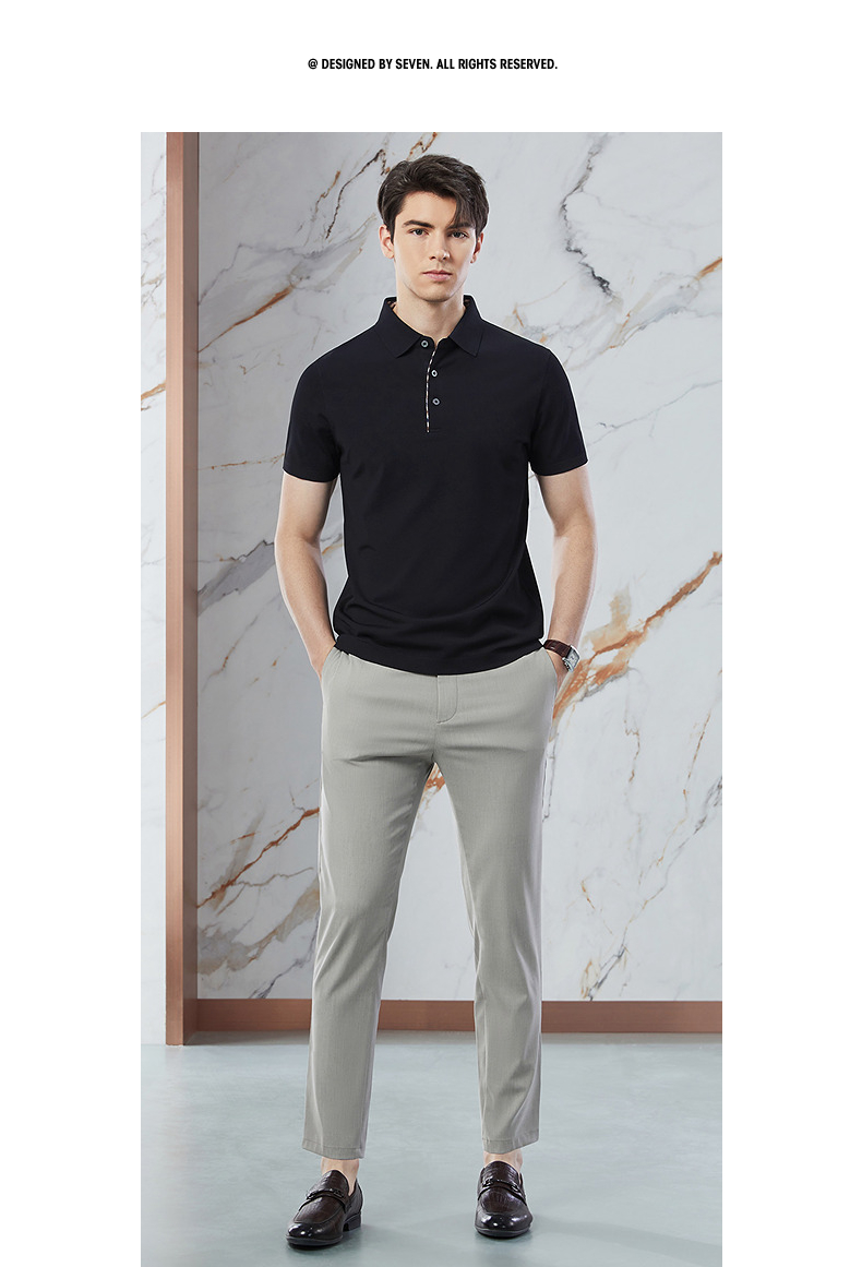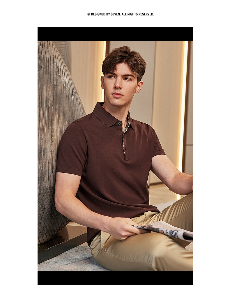 【特价】【高端系列】柒牌短袖polo衫男2024夏季新款伊力特弹力翻领T恤衫 126T70530