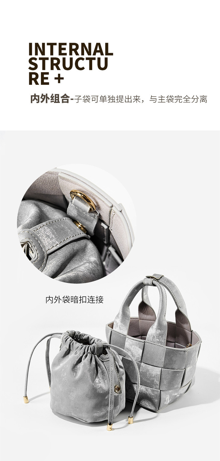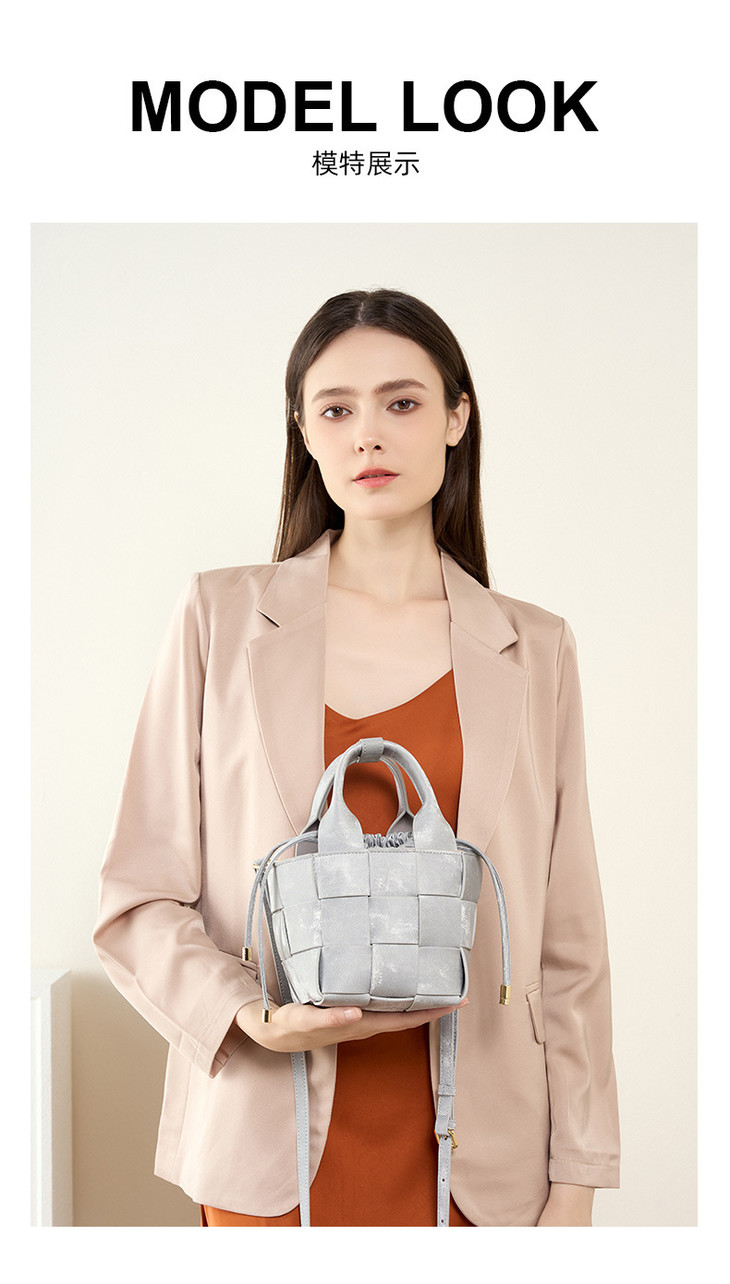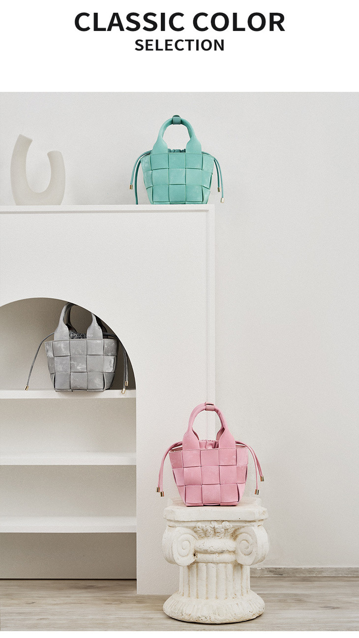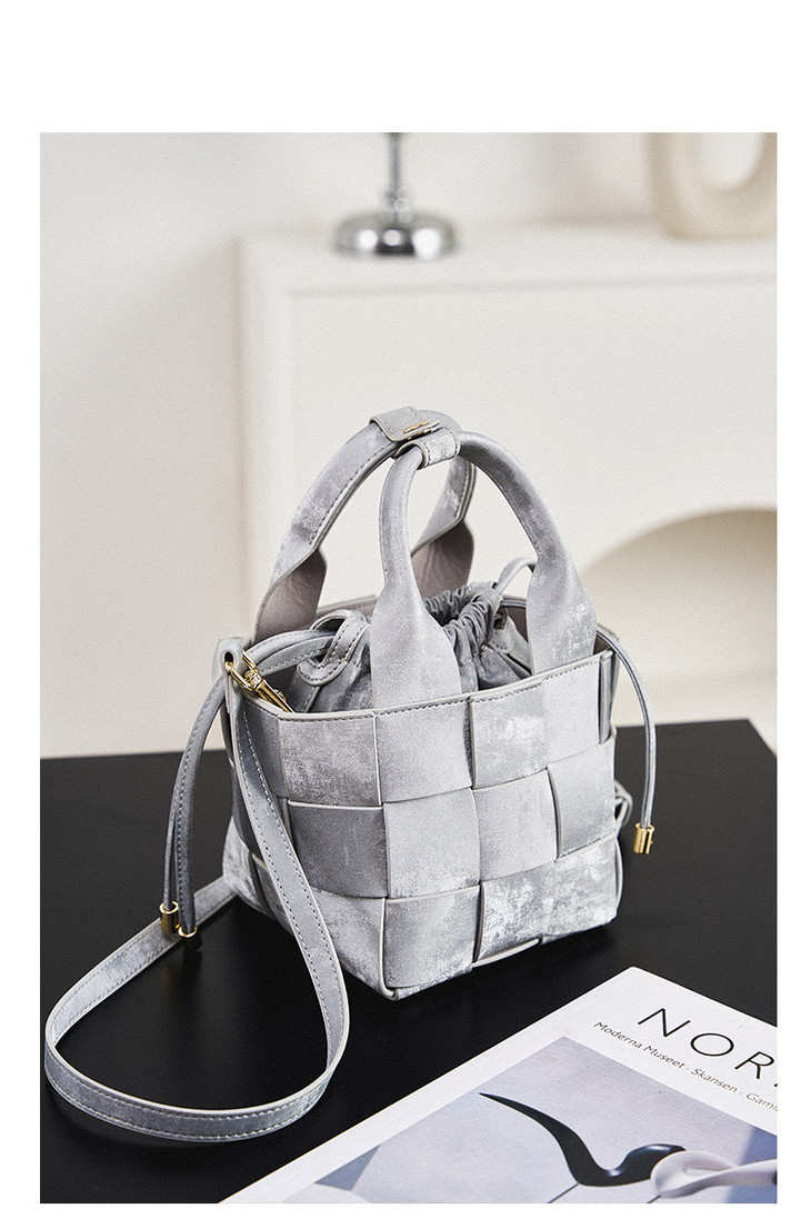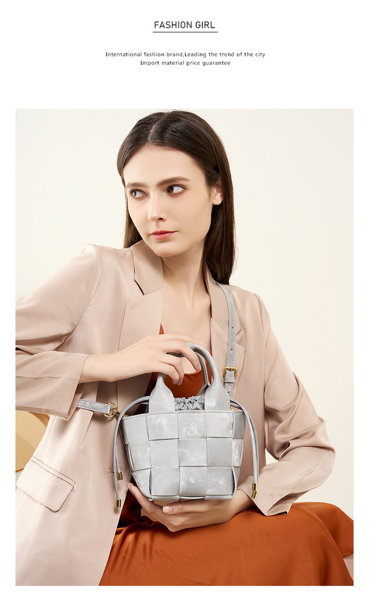 新中式真皮国风水桶包,手工编织包包QSL2700
