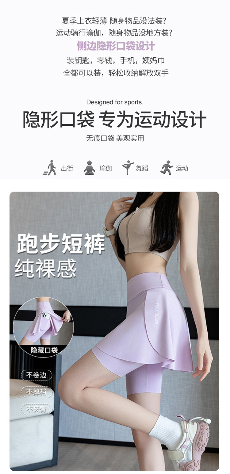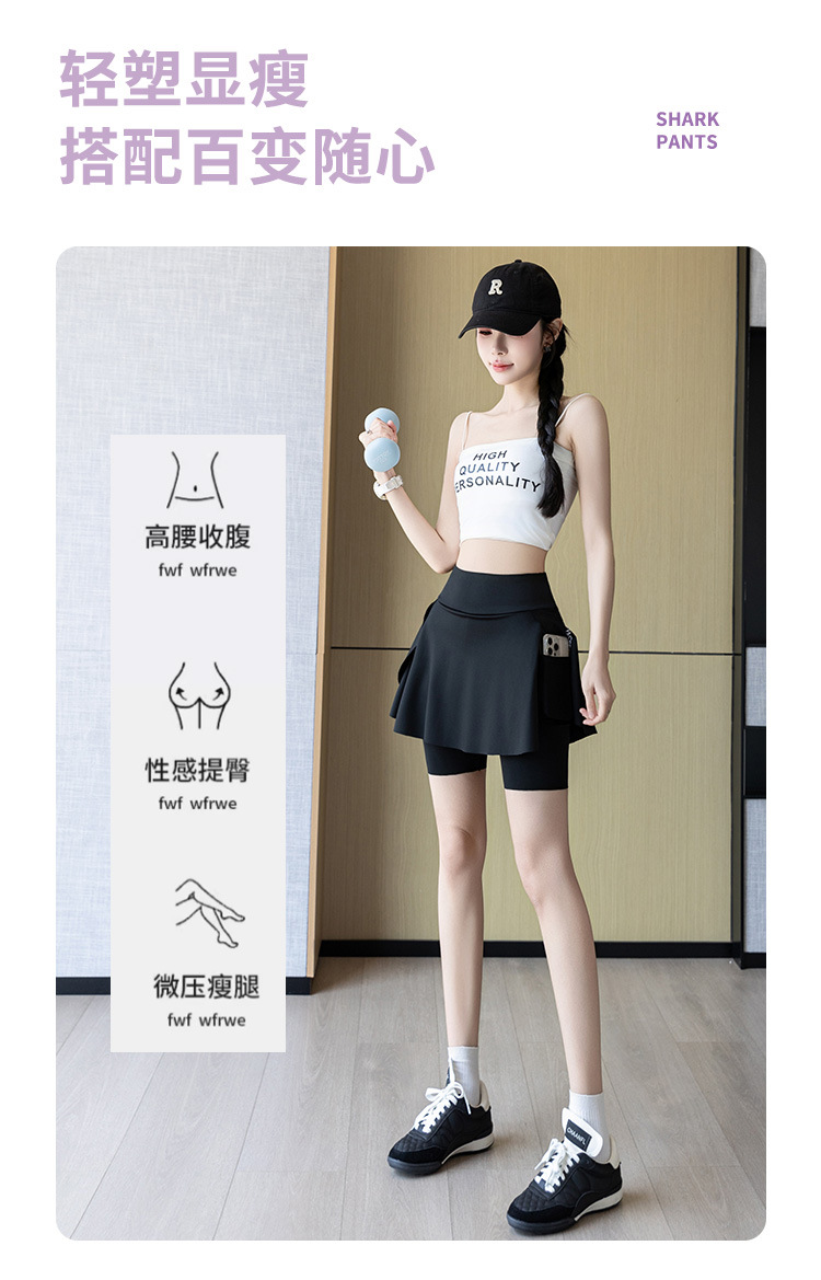 假两件大码裙裤女夏季外穿口袋三分鲨鱼裤防走光户外骑行瑜伽短裤