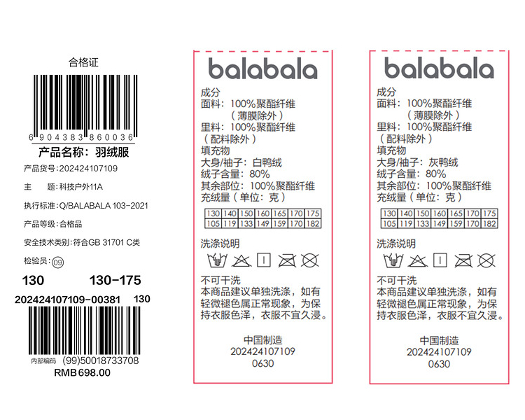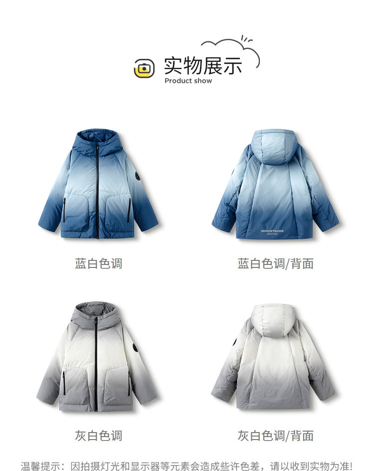 巴拉巴拉童装儿童羽绒服冬季男童中大童保暖渐变外套厚款时尚舒适