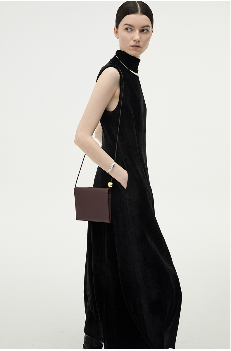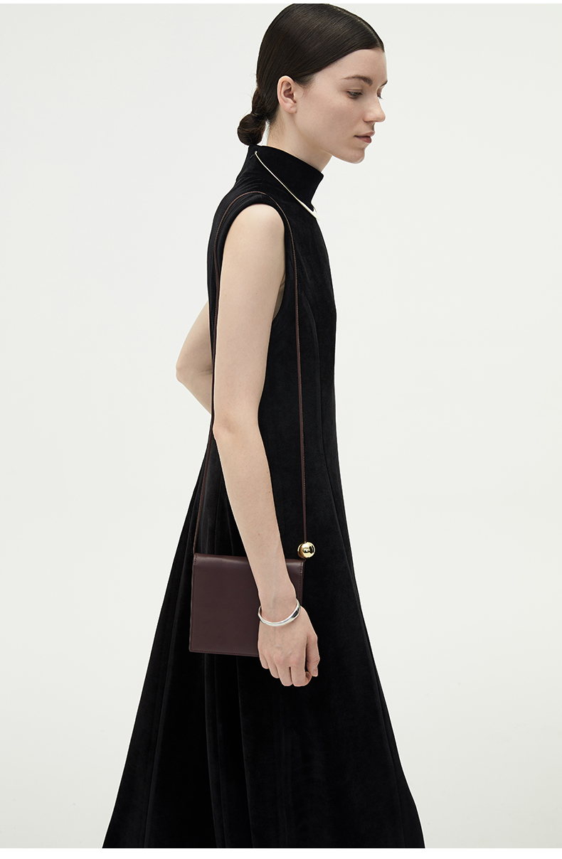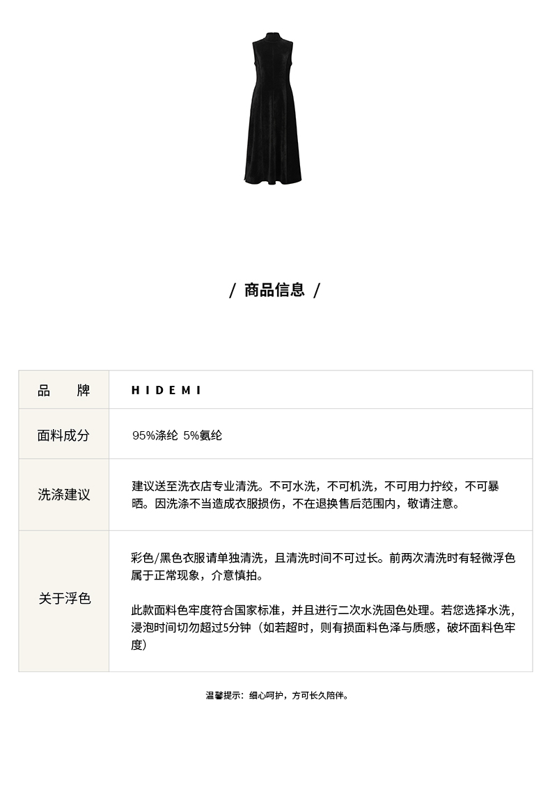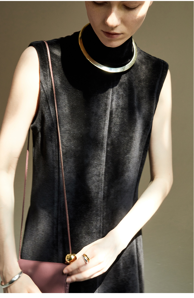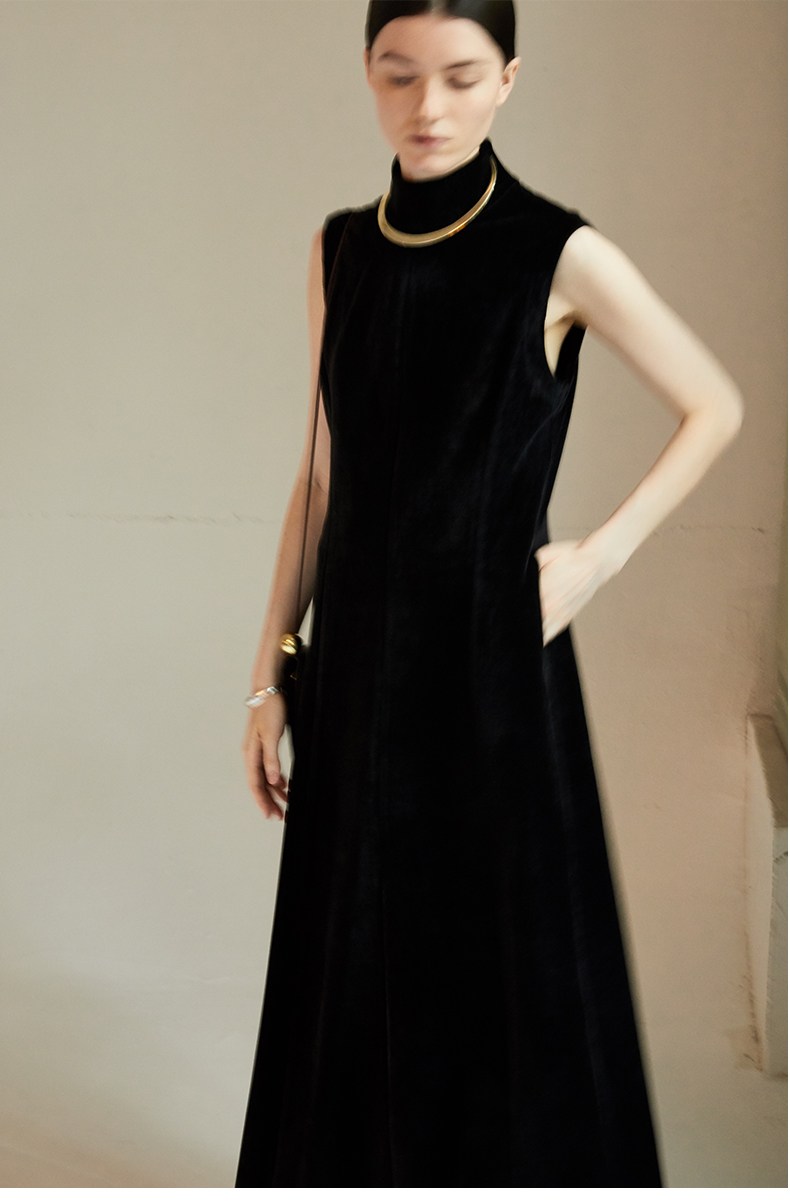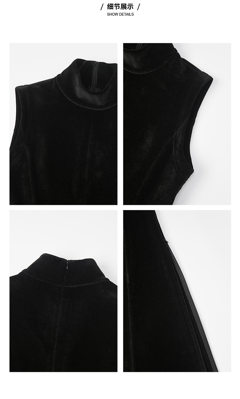 HIDEMI黑色小立领设计感立裁绒面背心长裙