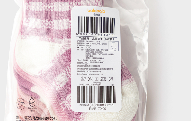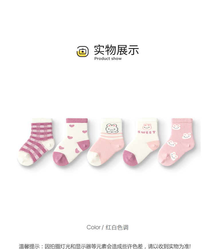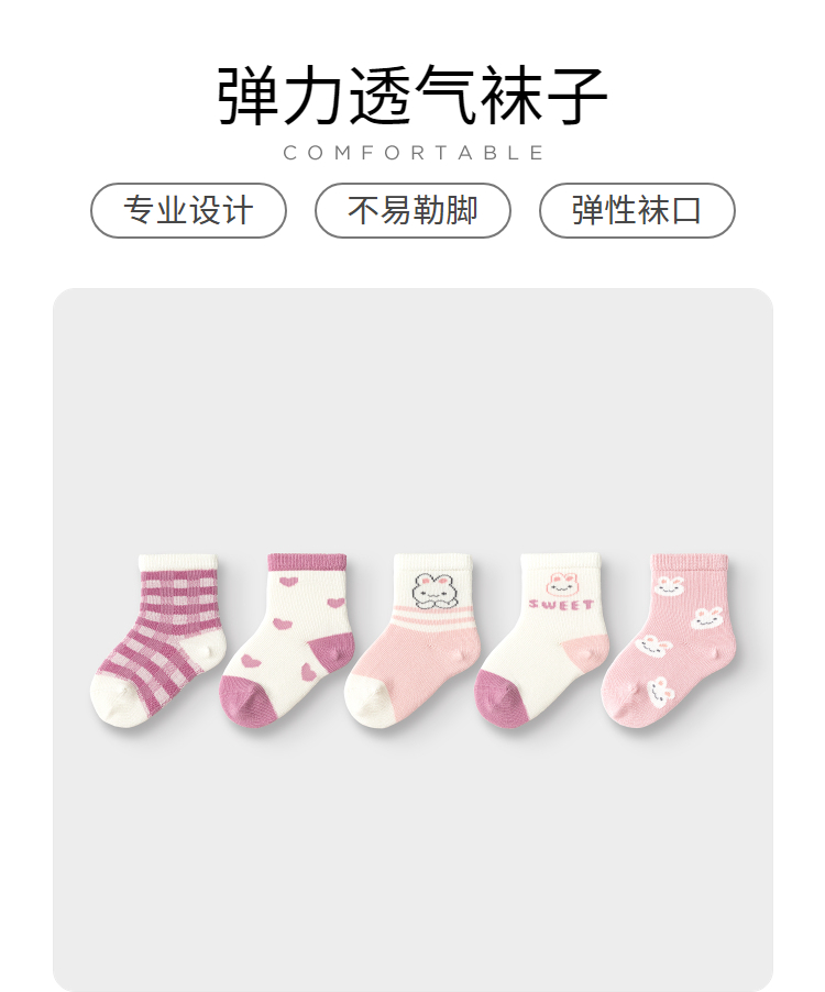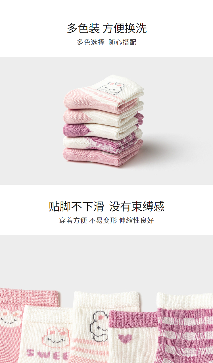 巴拉巴拉宝宝袜子棉秋季男女童小童婴儿新生儿童袜萌趣弹力五双装