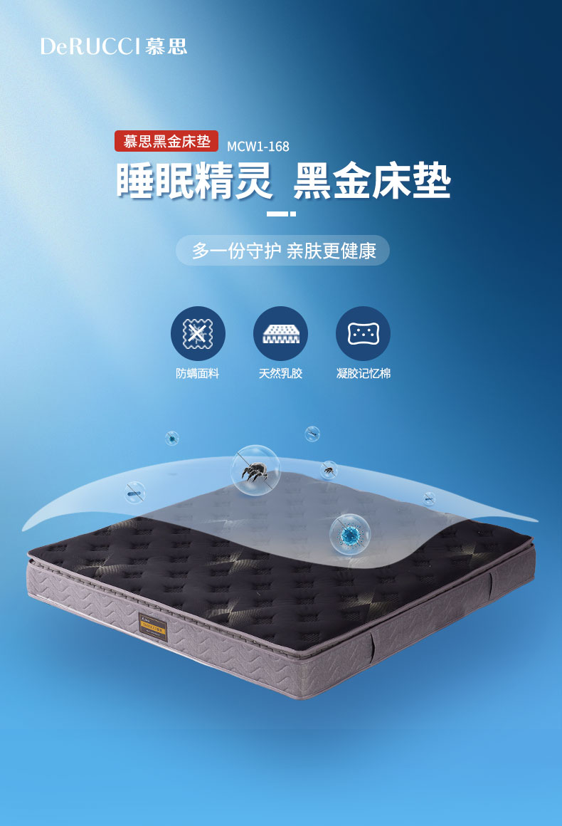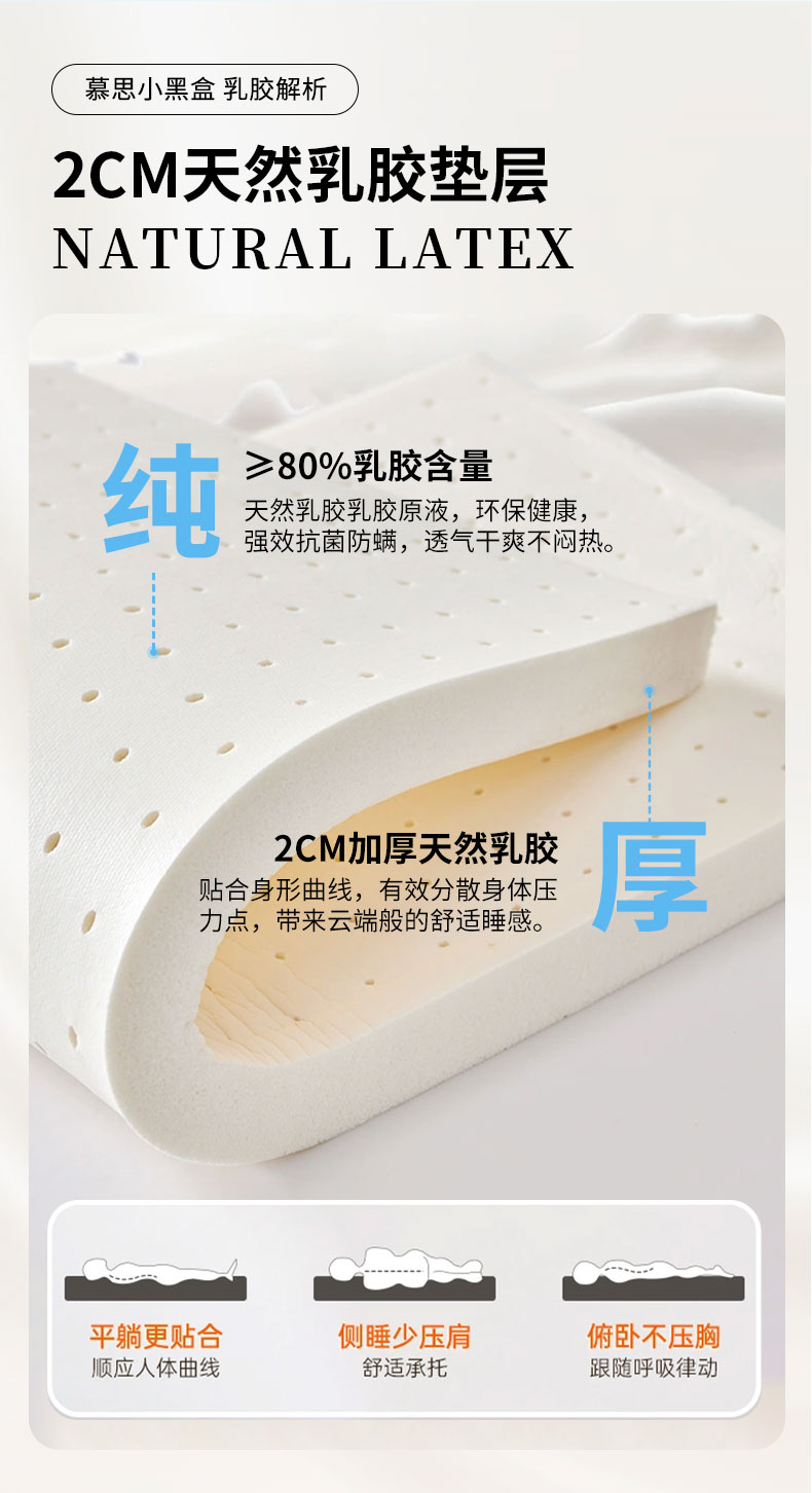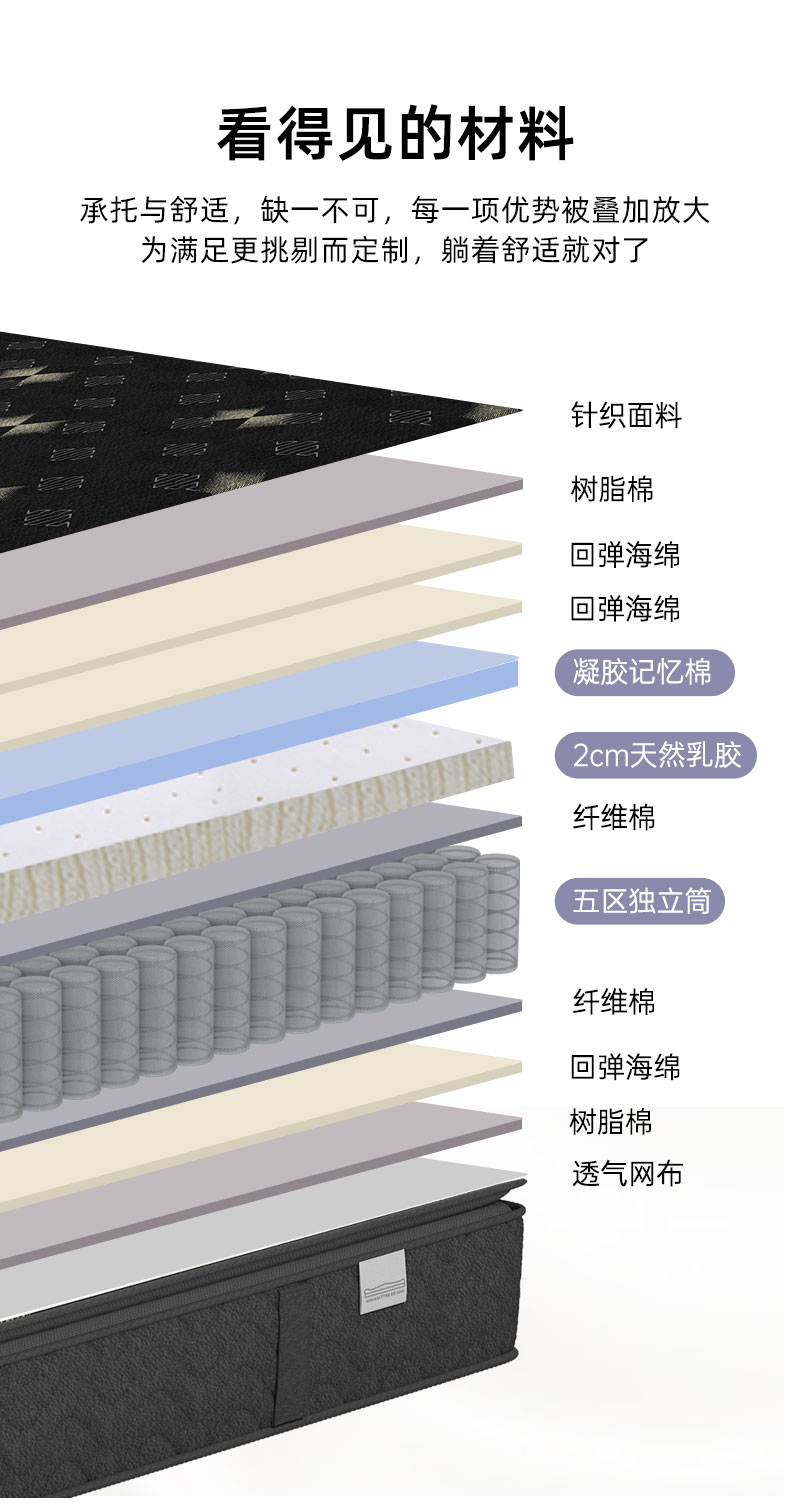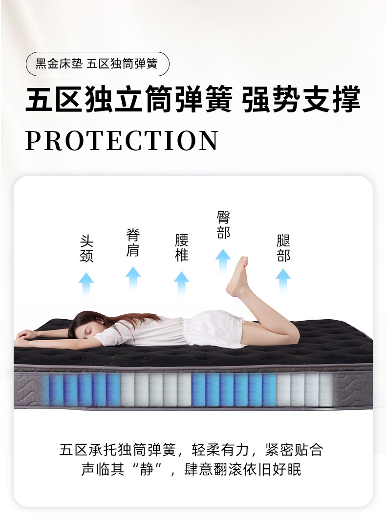 慕思净芯黑金升级款乳胶床垫慕斯五区独袋弹簧床垫1.8*2米软硬适中