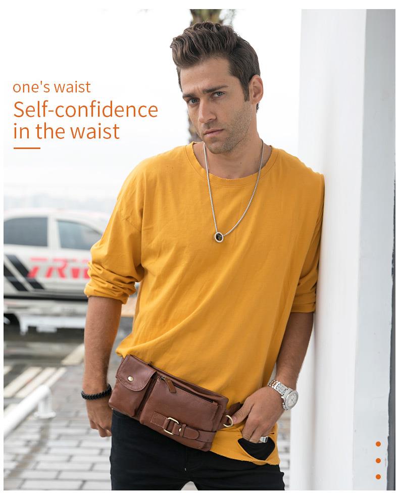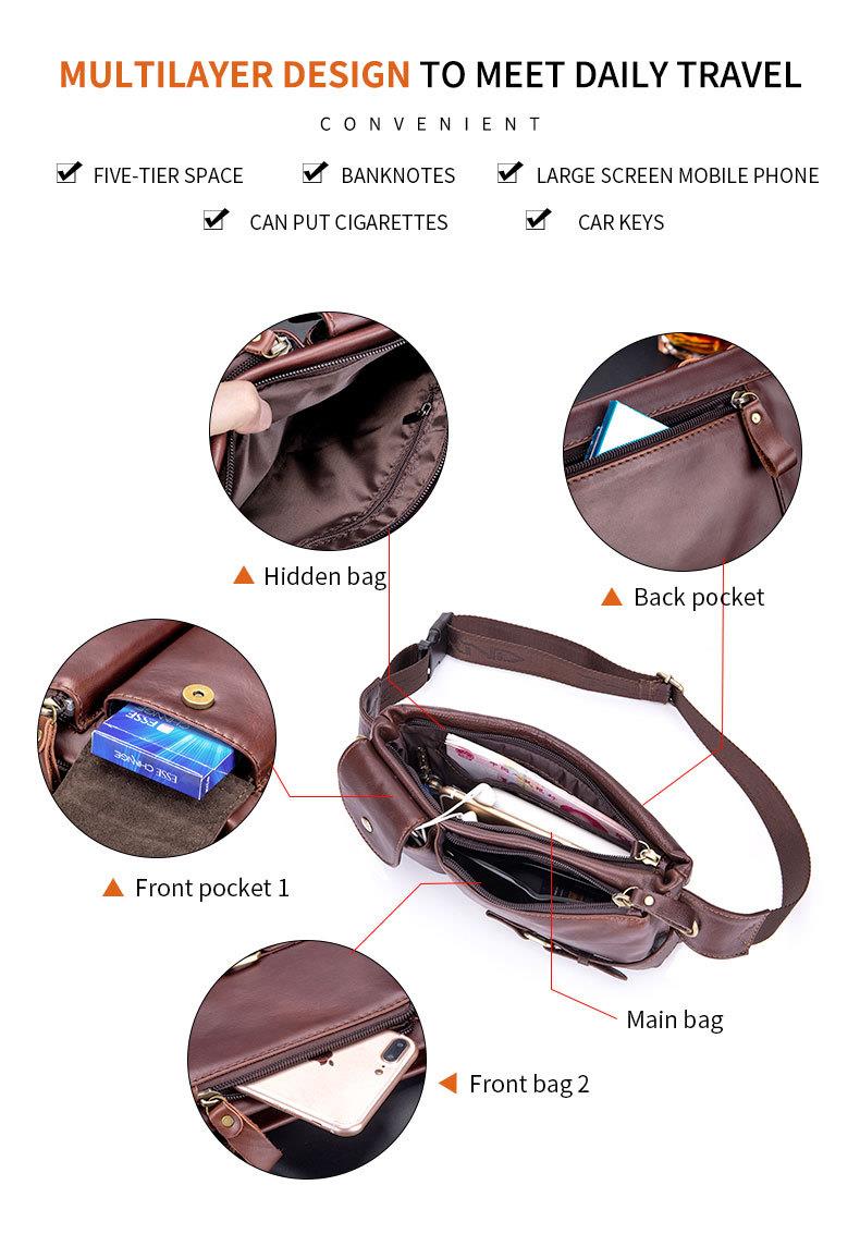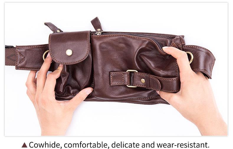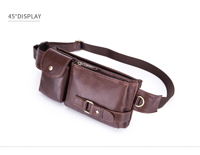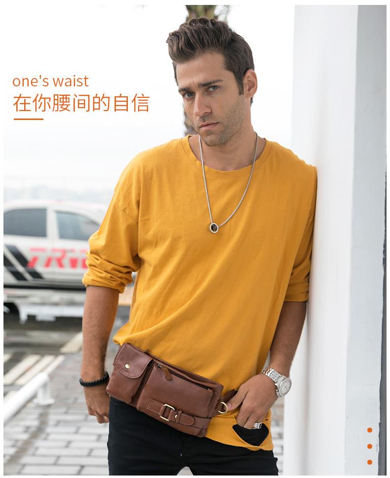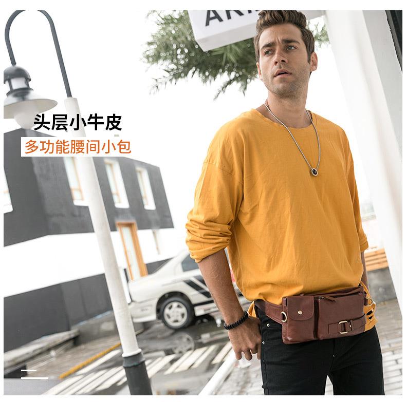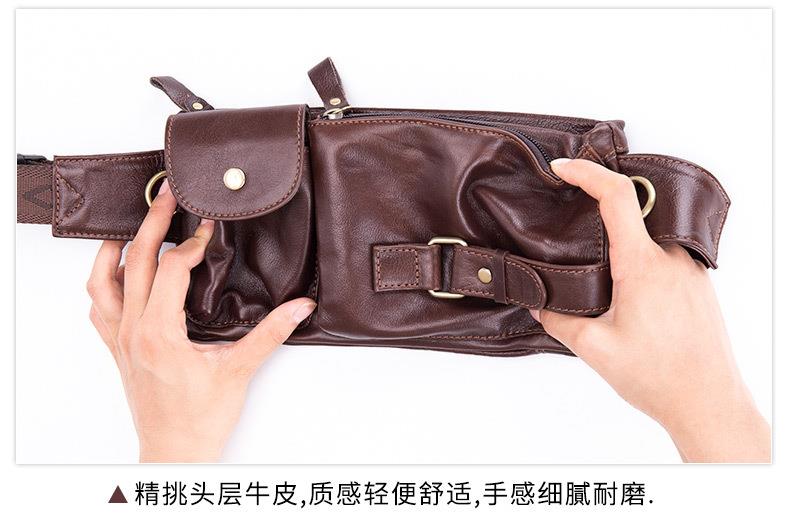 牛船长男士胸包小号手机腰包单肩斜挎多功能真皮胸前牛皮跑步包