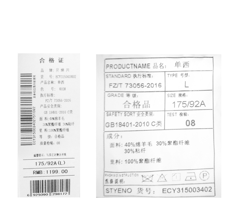 贝纳川羊毛韩版ins潮流高级感西服ECY315003
