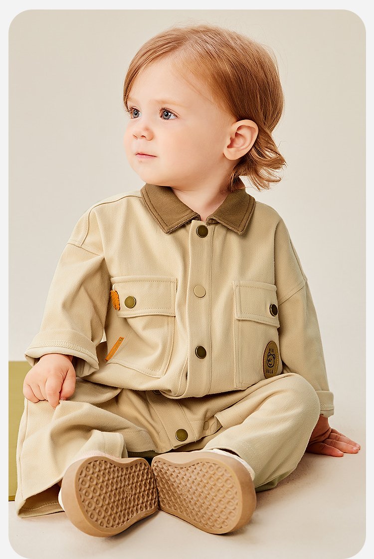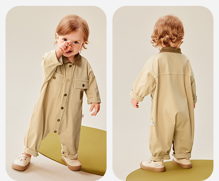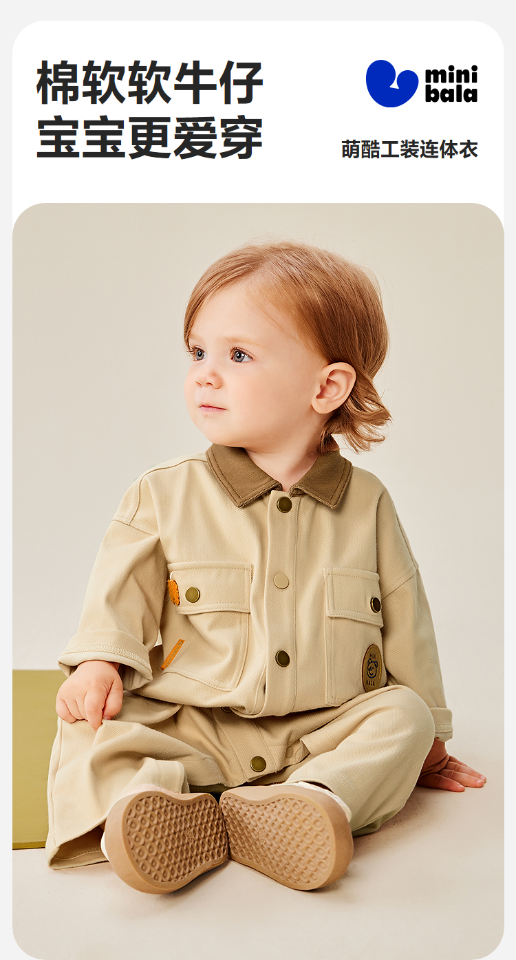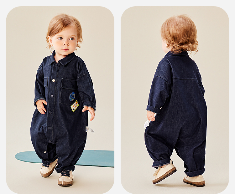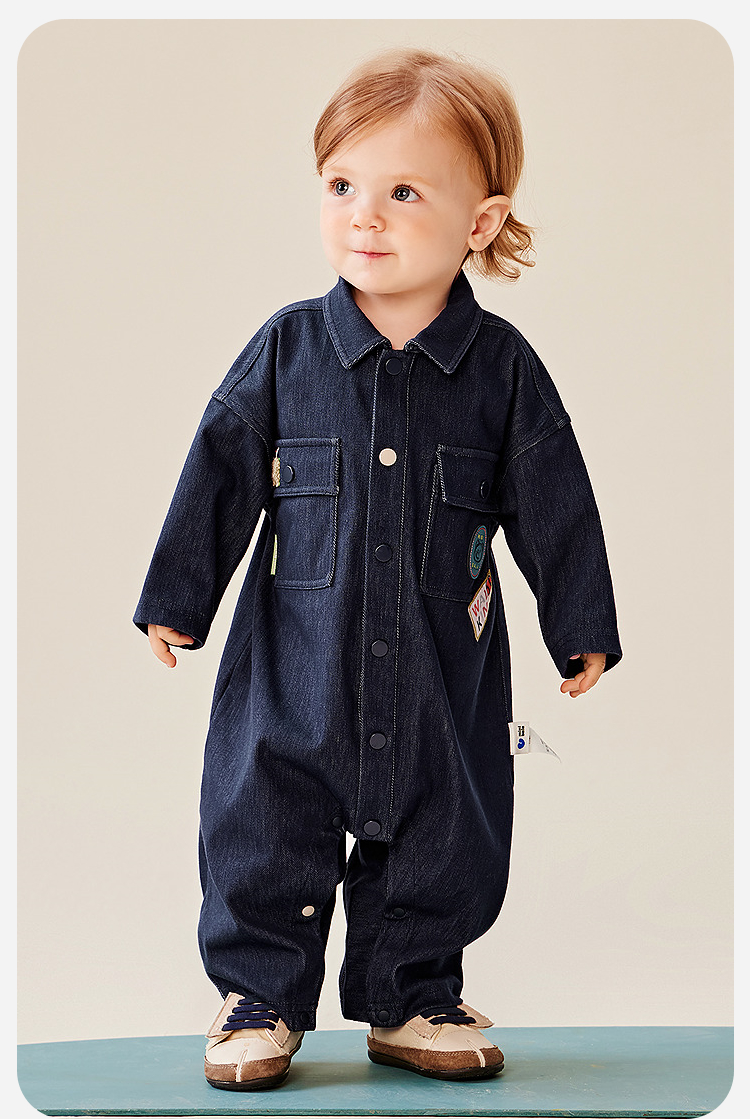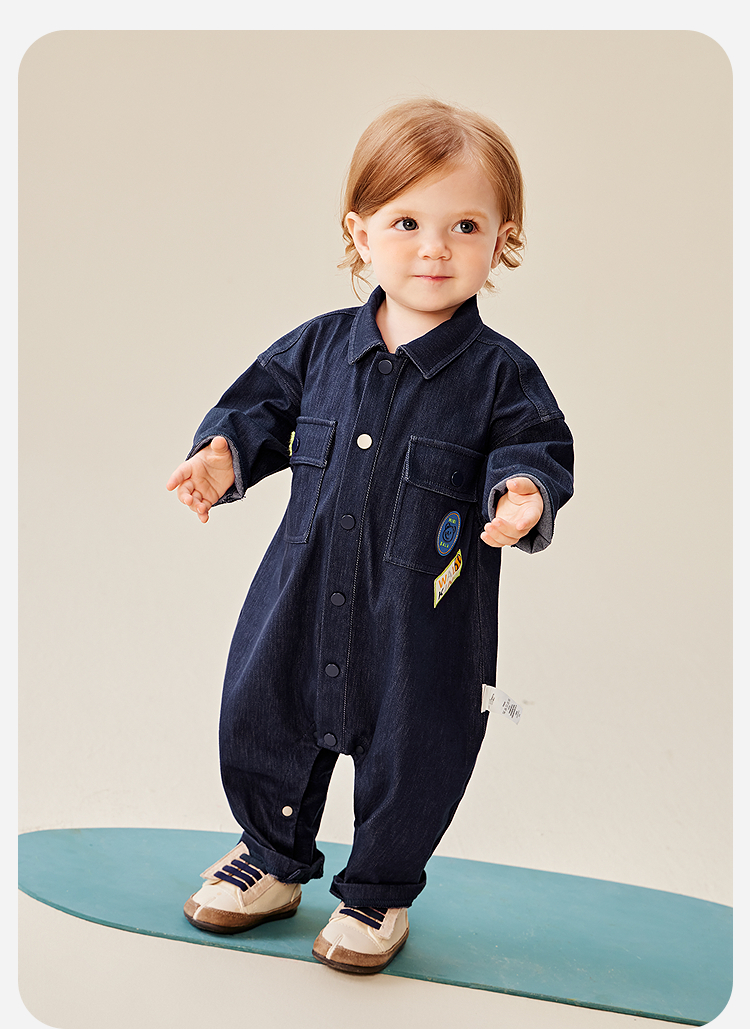 迷你巴拉宝宝仿牛仔外出连体衣男女宝复古工装风衣服秋季新款