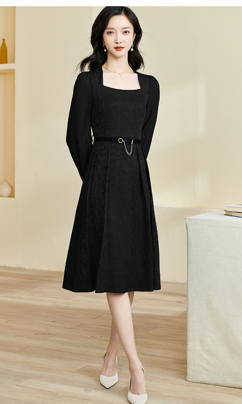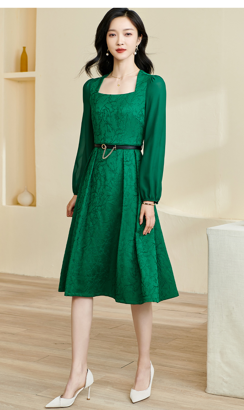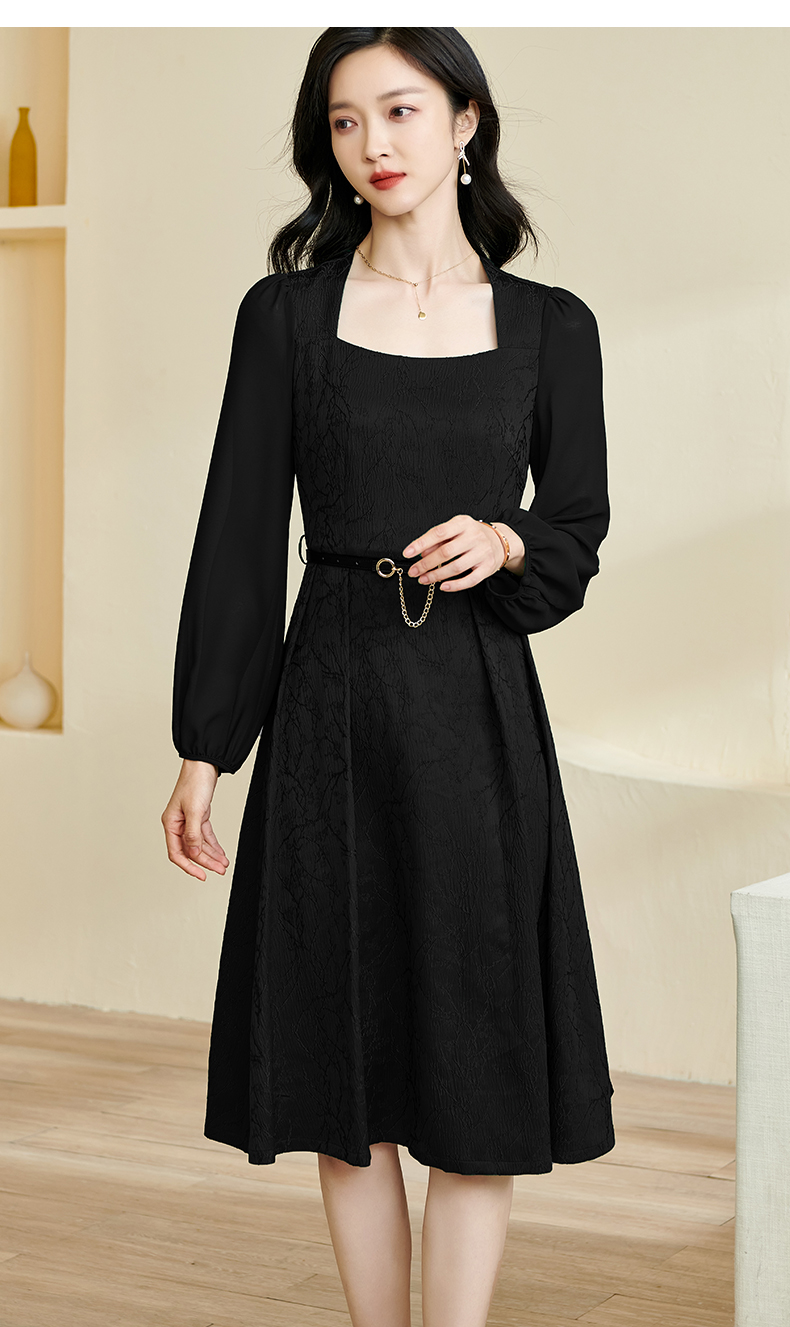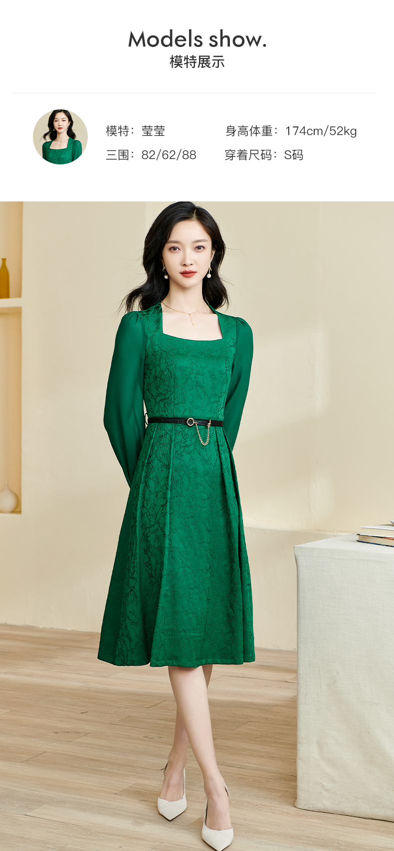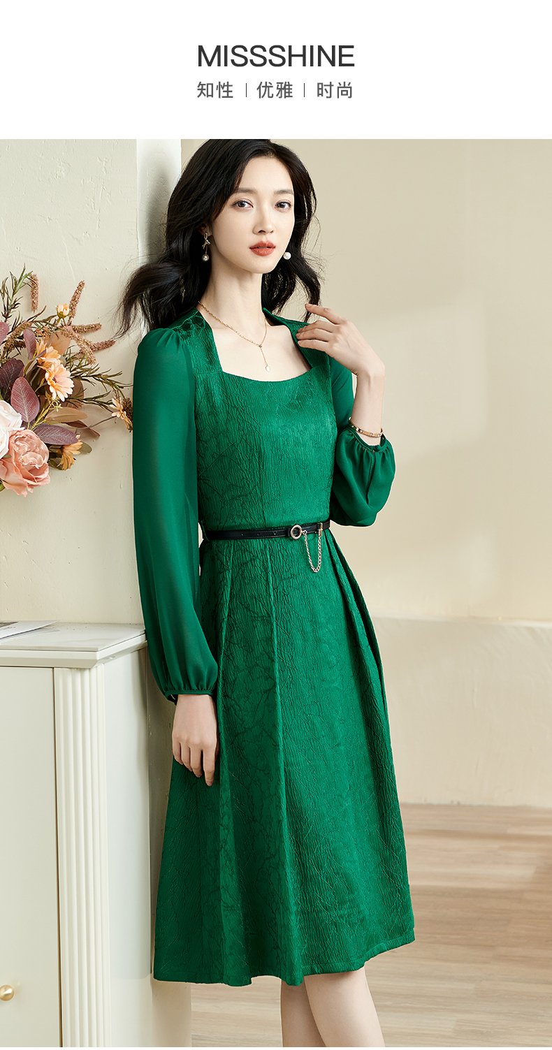 剩S/M/XL/L 米思阳2026春季新款复古优雅提花方领大摆裙子质感长袖连衣裙0015