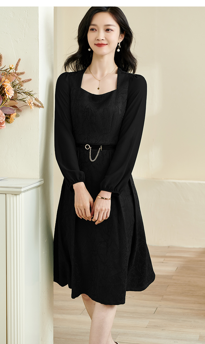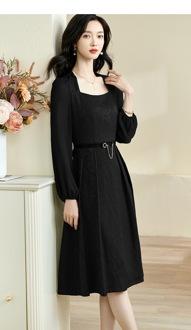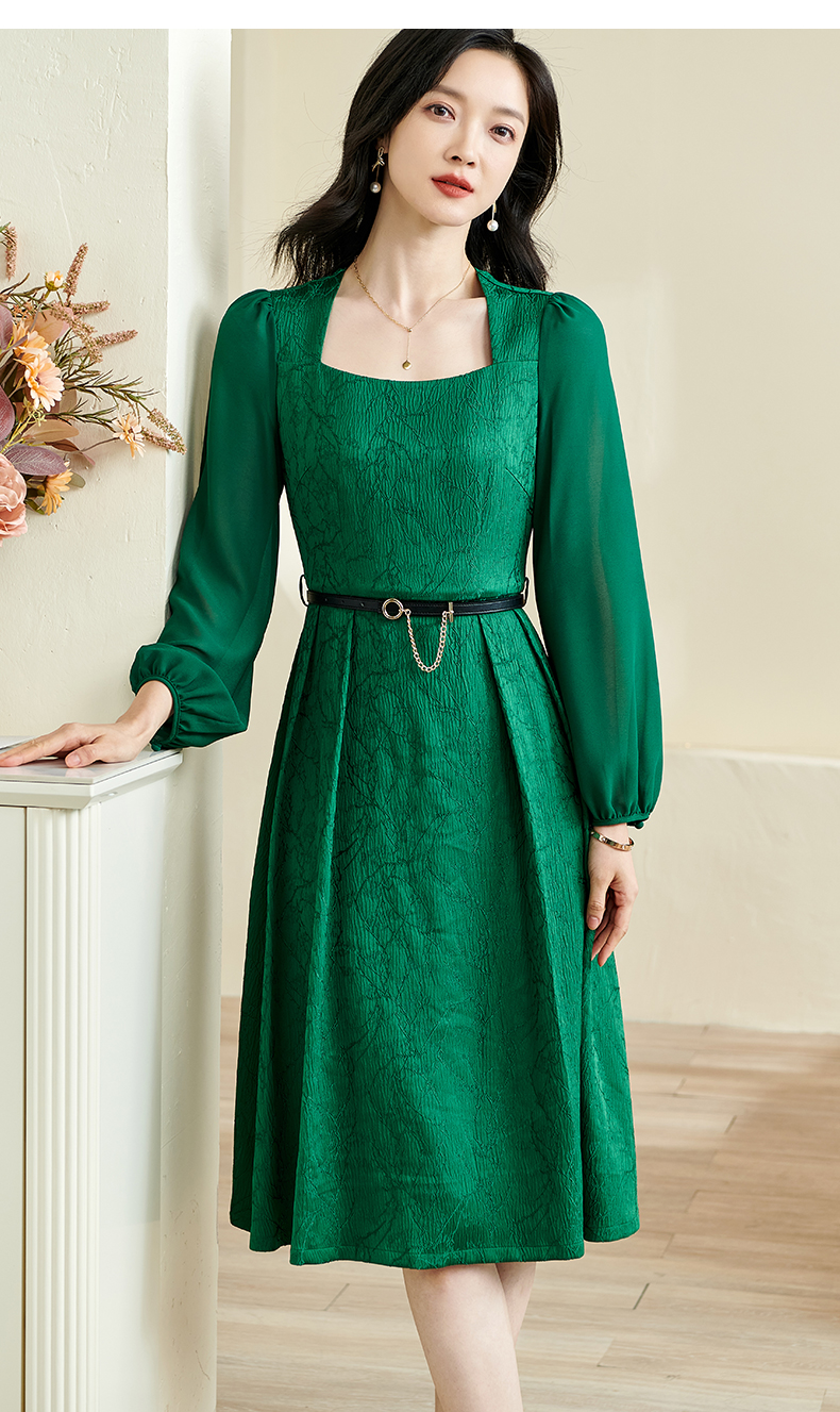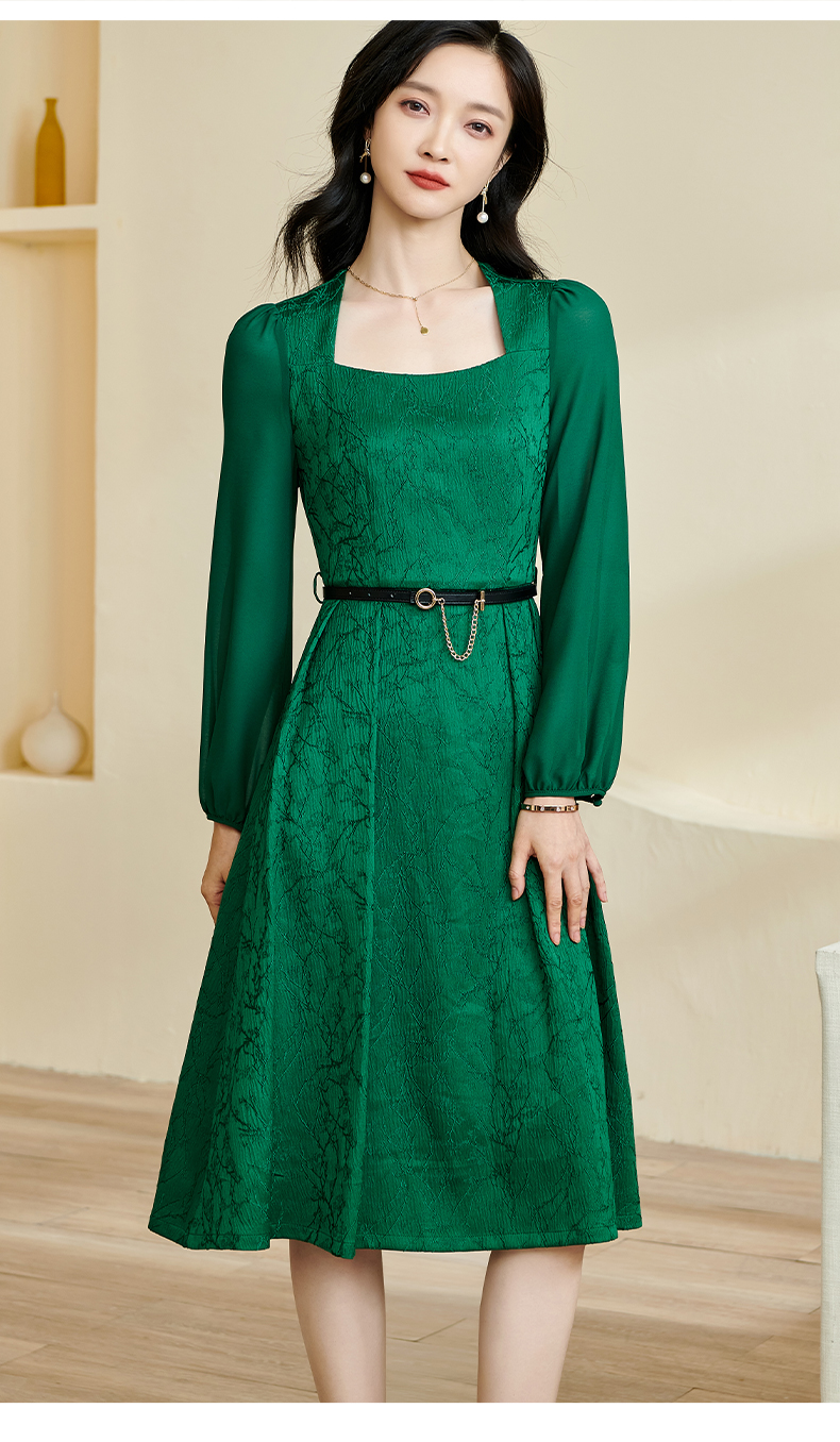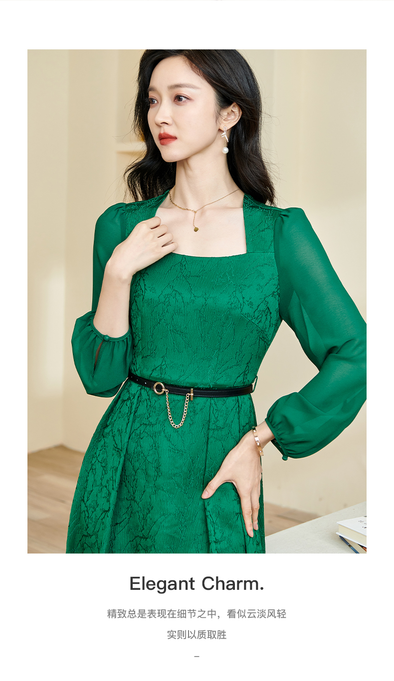 剩S/M/XL/L 米思阳2026春季新款复古优雅提花方领大摆裙子质感长袖连衣裙0015
