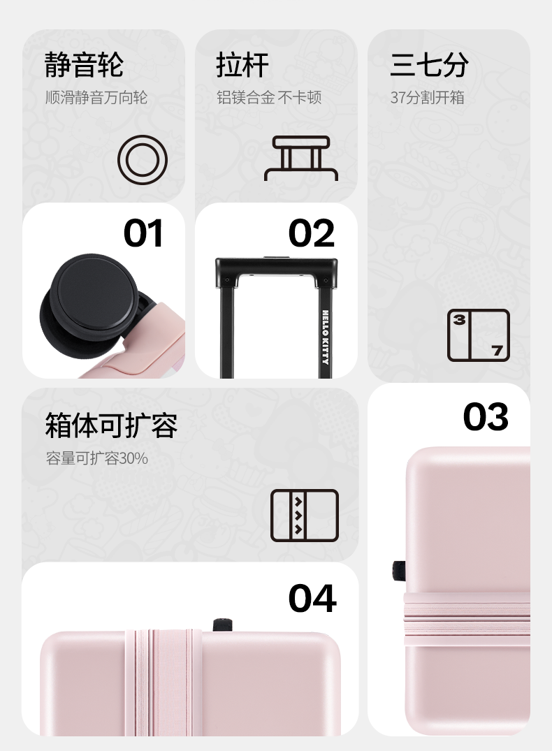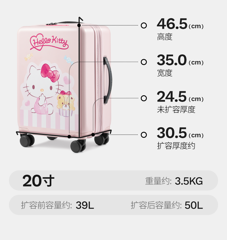 银座 x Hello Kitty 联名系列大容量扩展拉链箱组合套装9389L系列