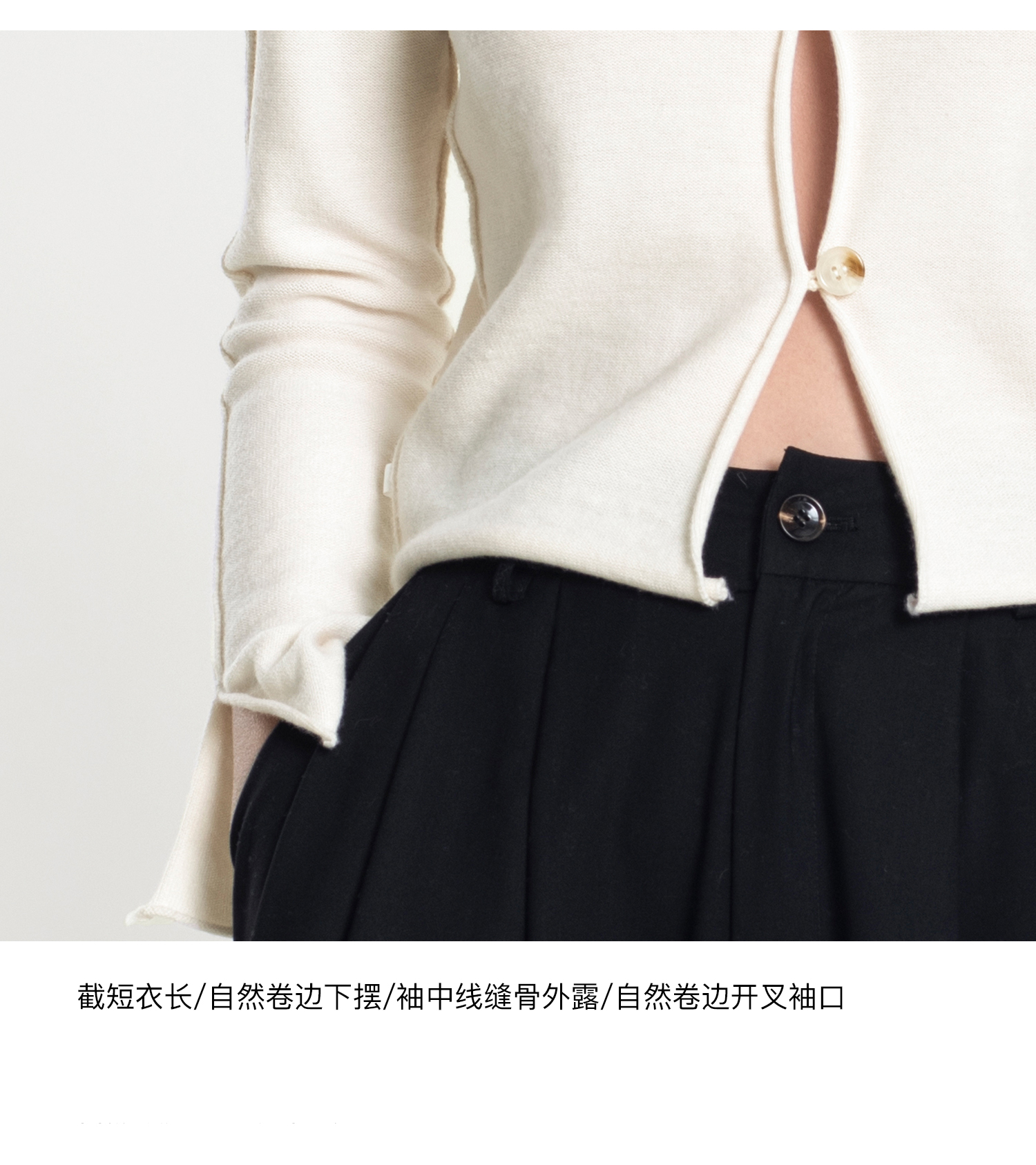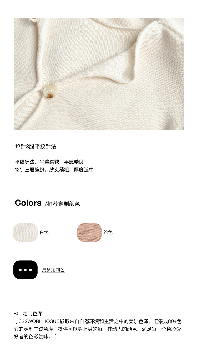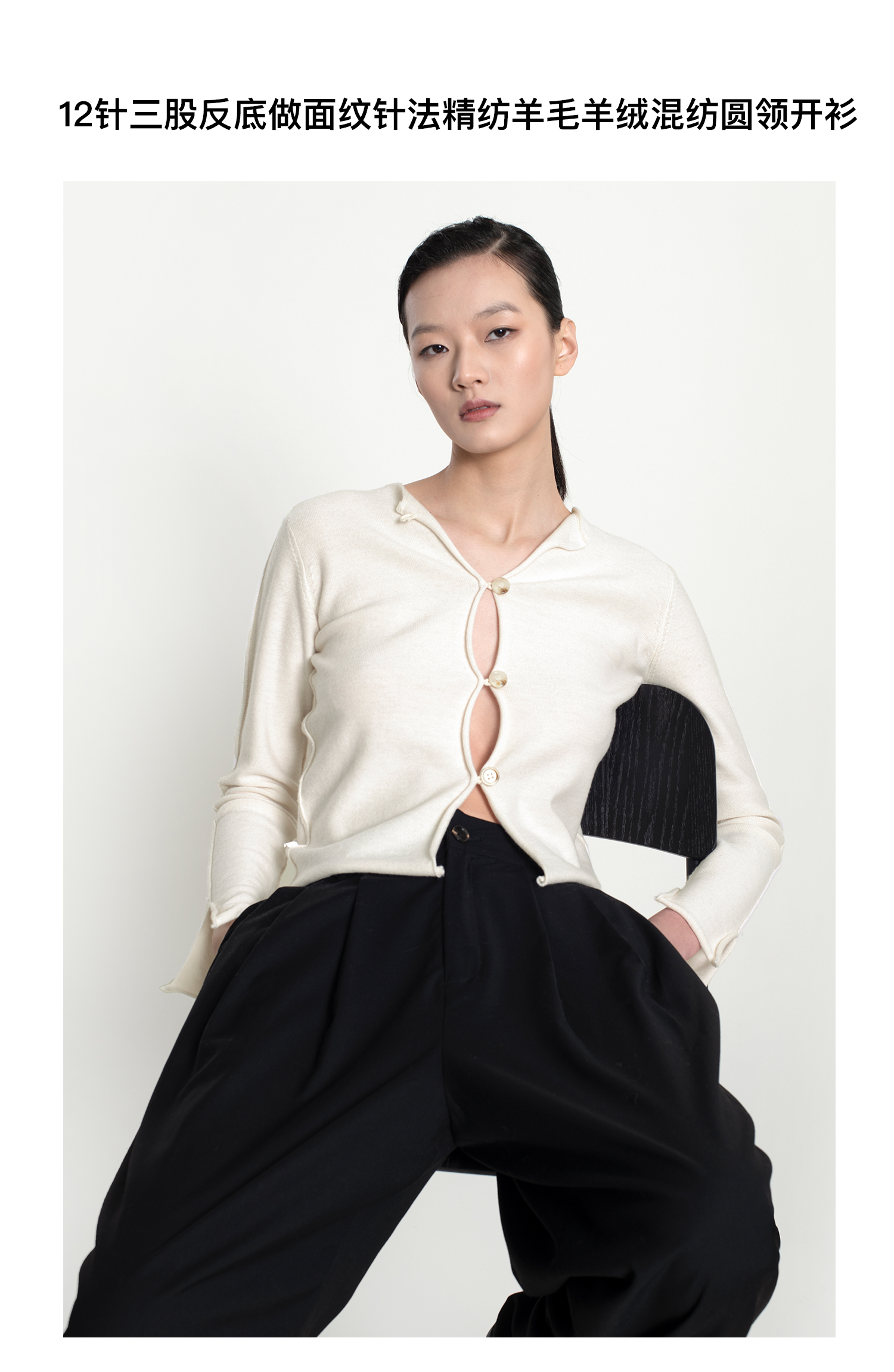 2022新款羊绒混纺12针三股反底做面圆领短款开衫