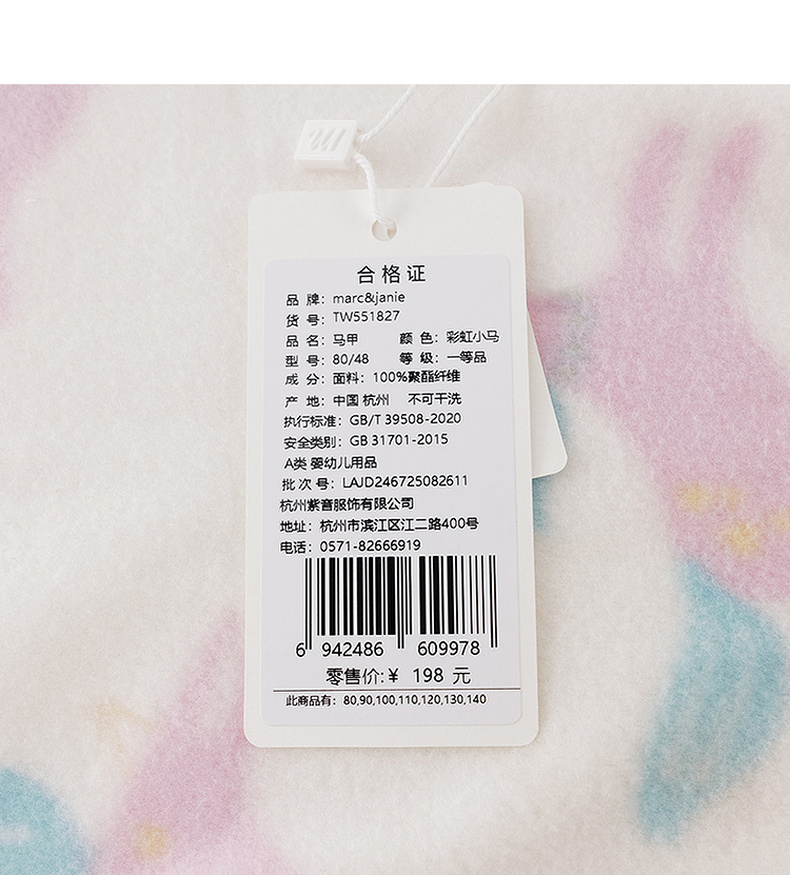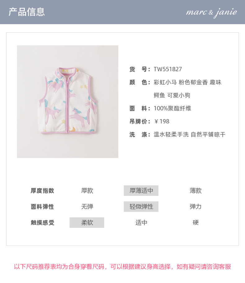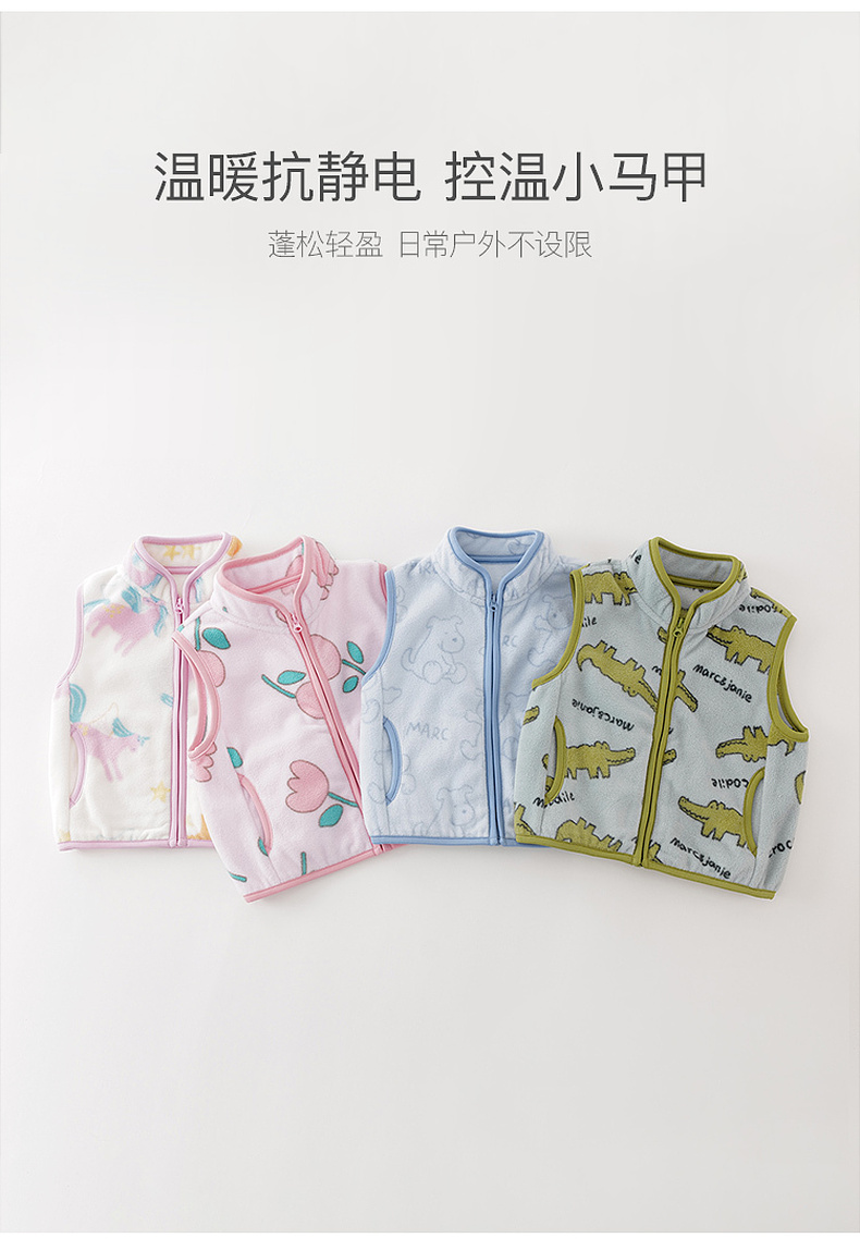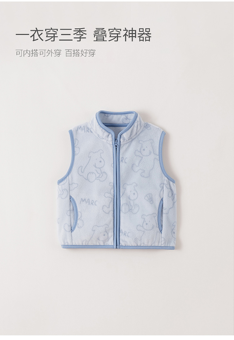 马克珍妮男女童趣味动物园摇粒绒小马甲2025年秋装新款551827