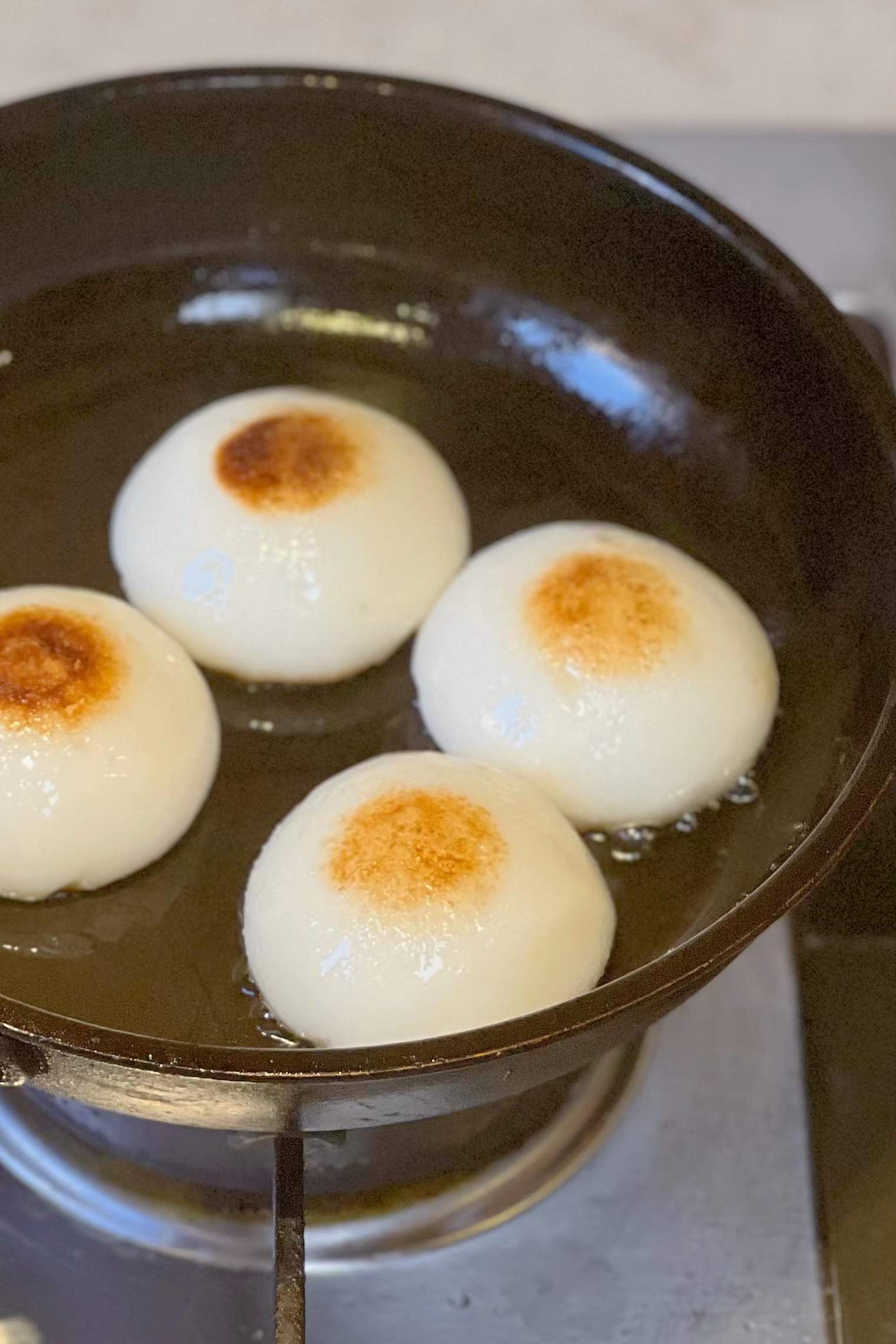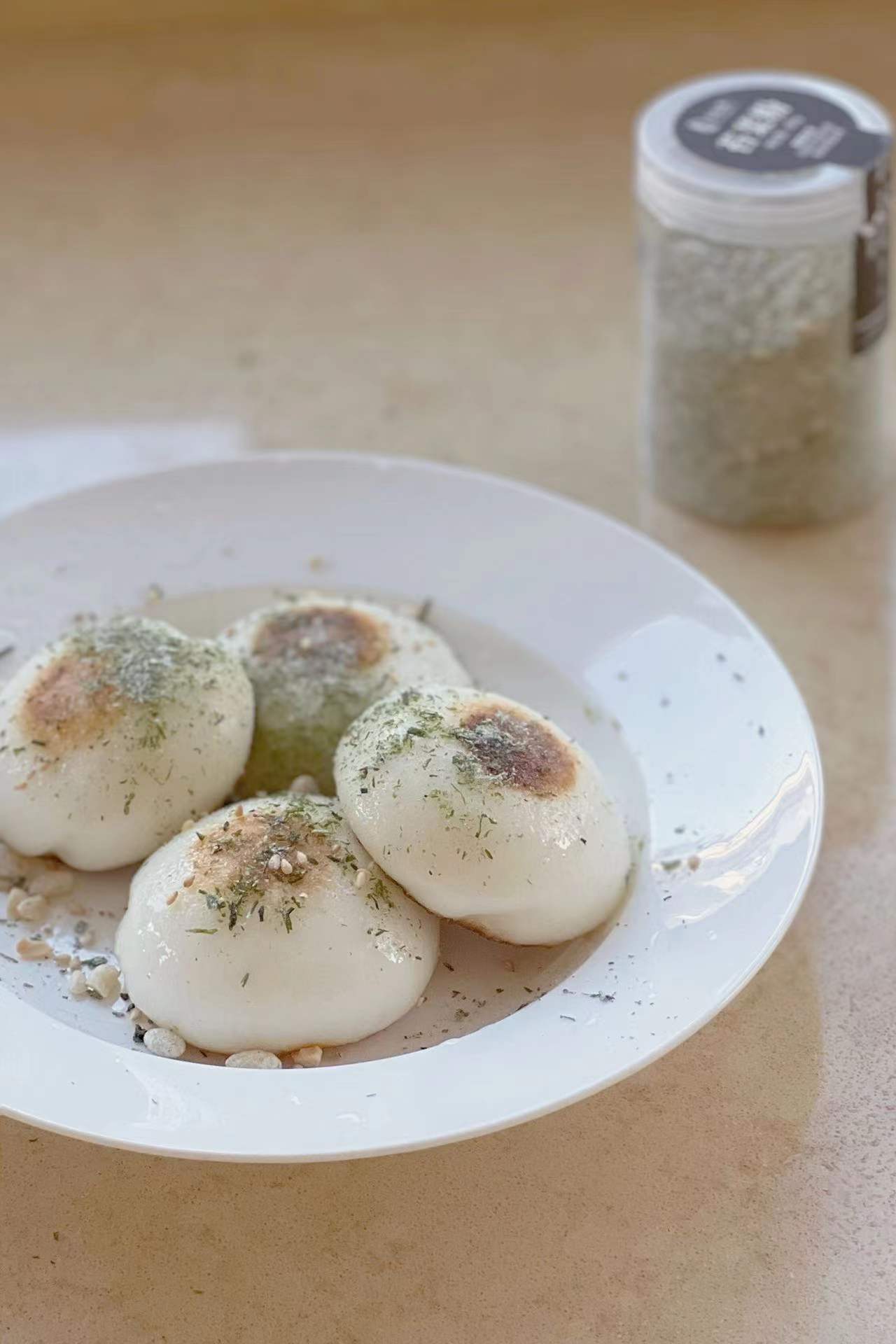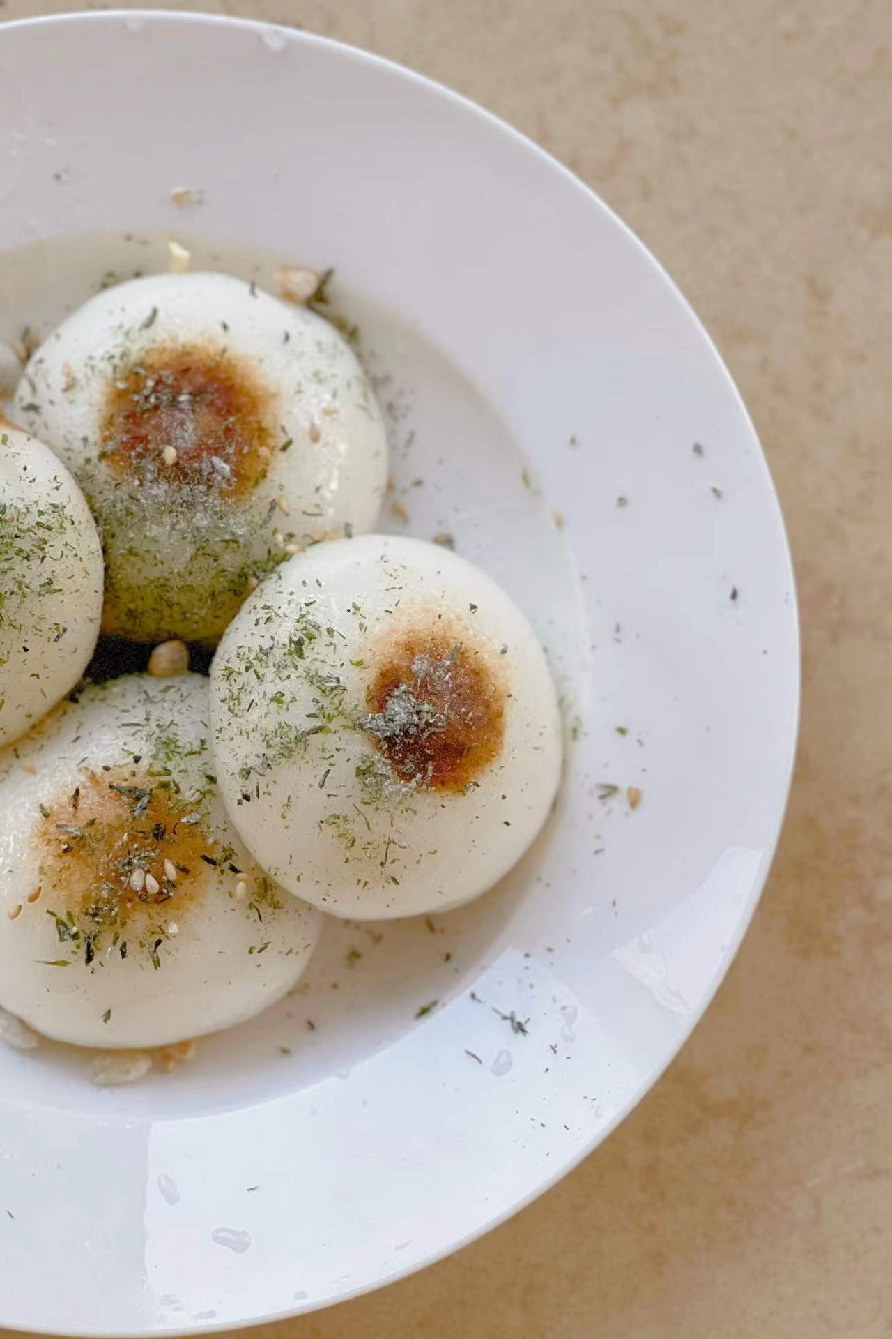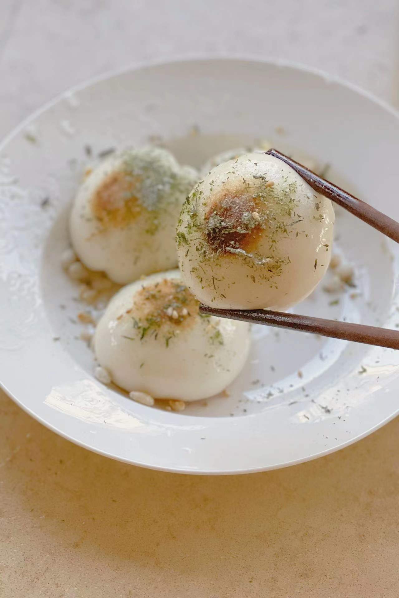 2.煎(推荐)也可以煎着吃,搭配苔菜粉,这可是米馒头的新世界。