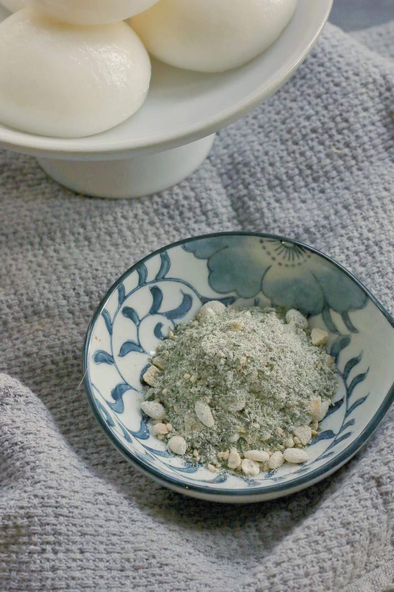 3.传统酒酿米馒头+宁波苔菜粉的搭配,开辟米馒头新口味,甜中带咸,咸里透鲜,成为独特的“苔菜米馒头”,