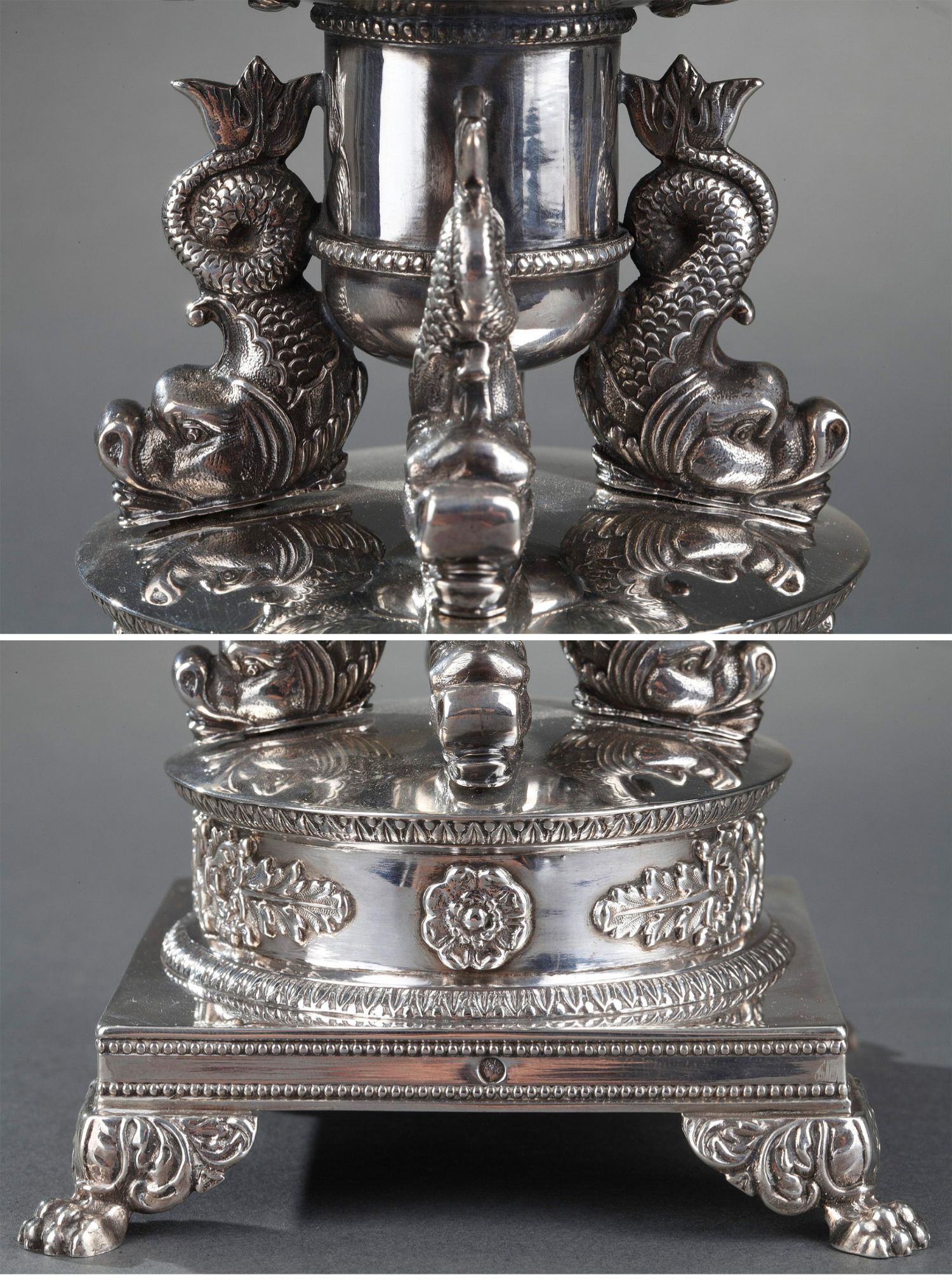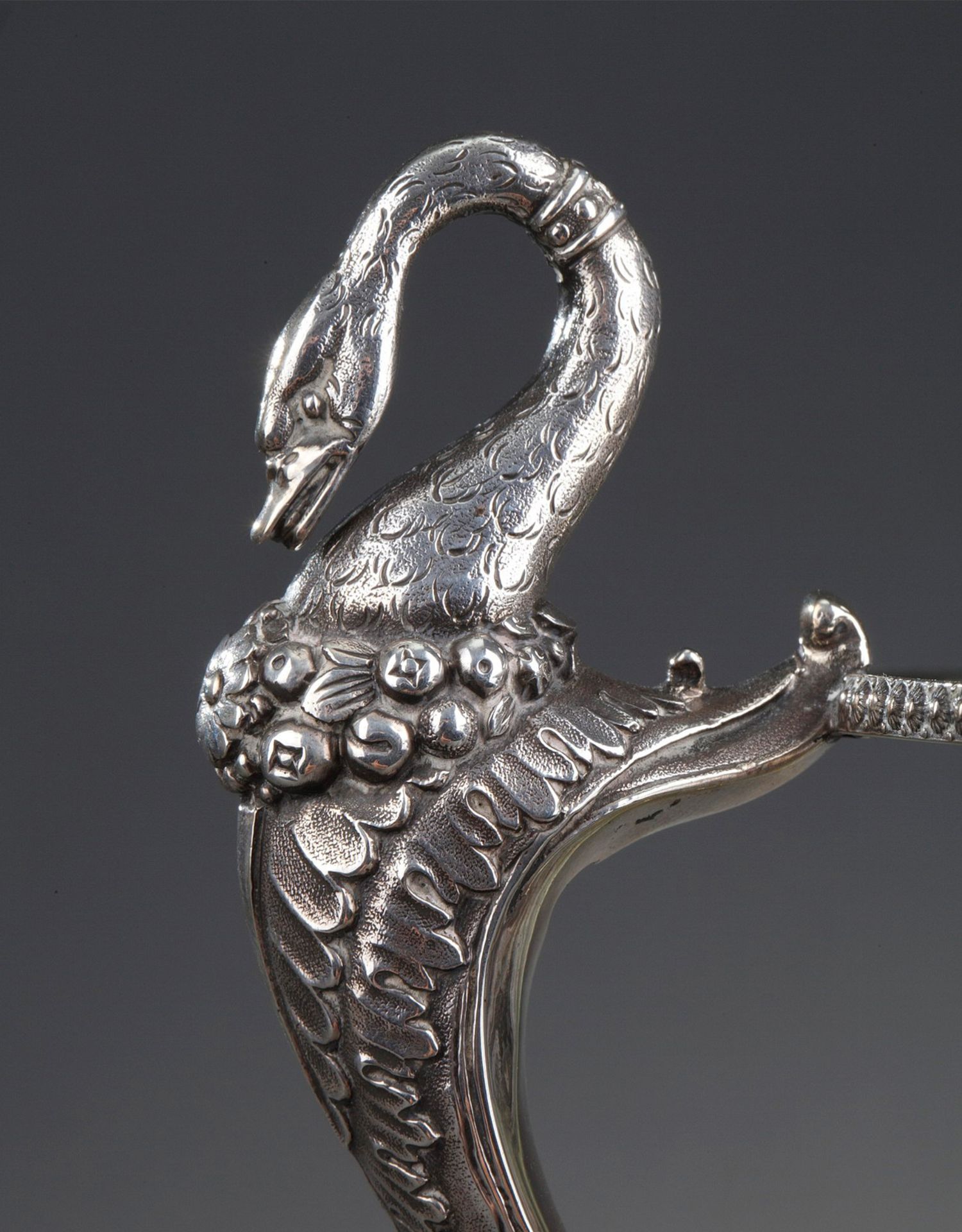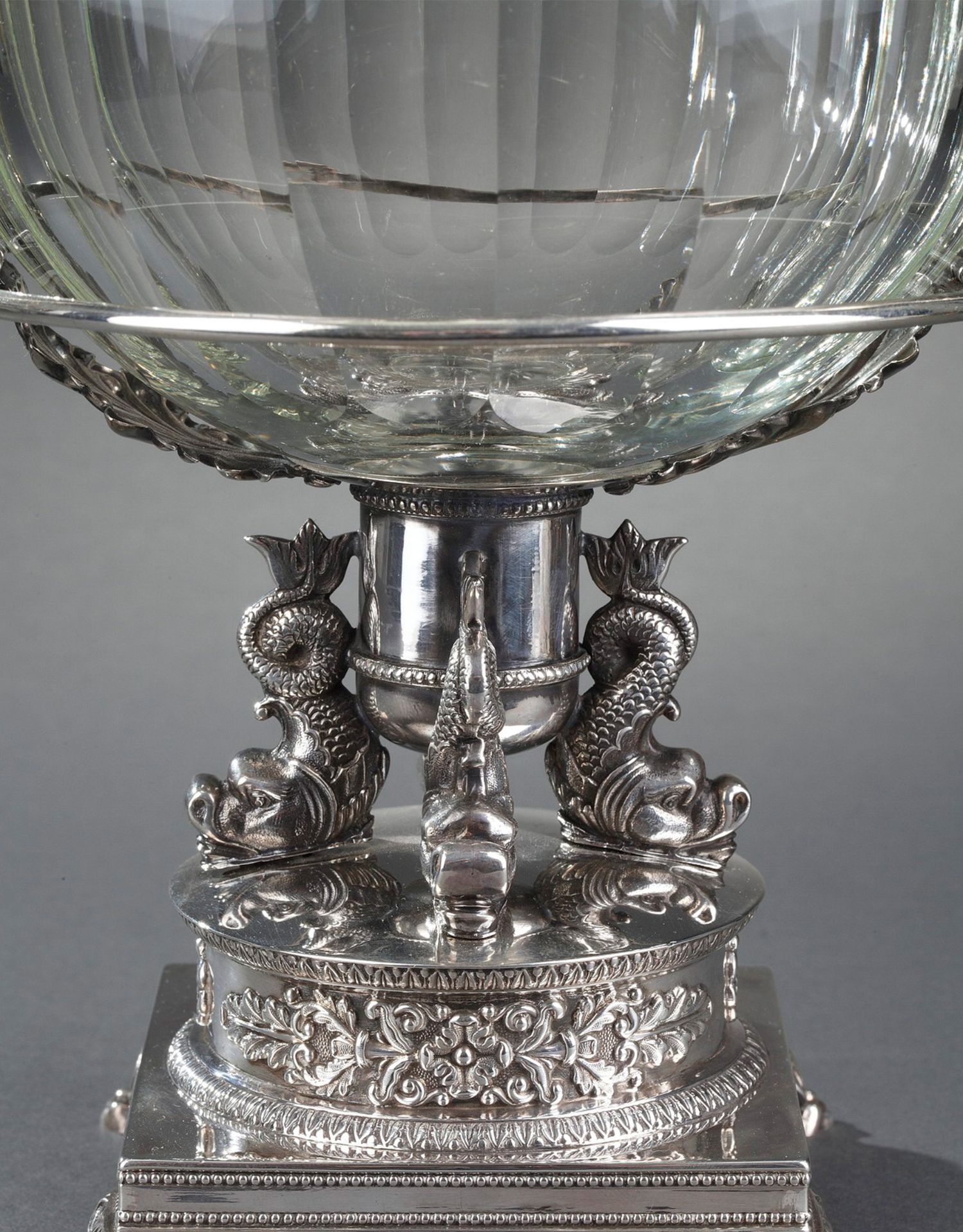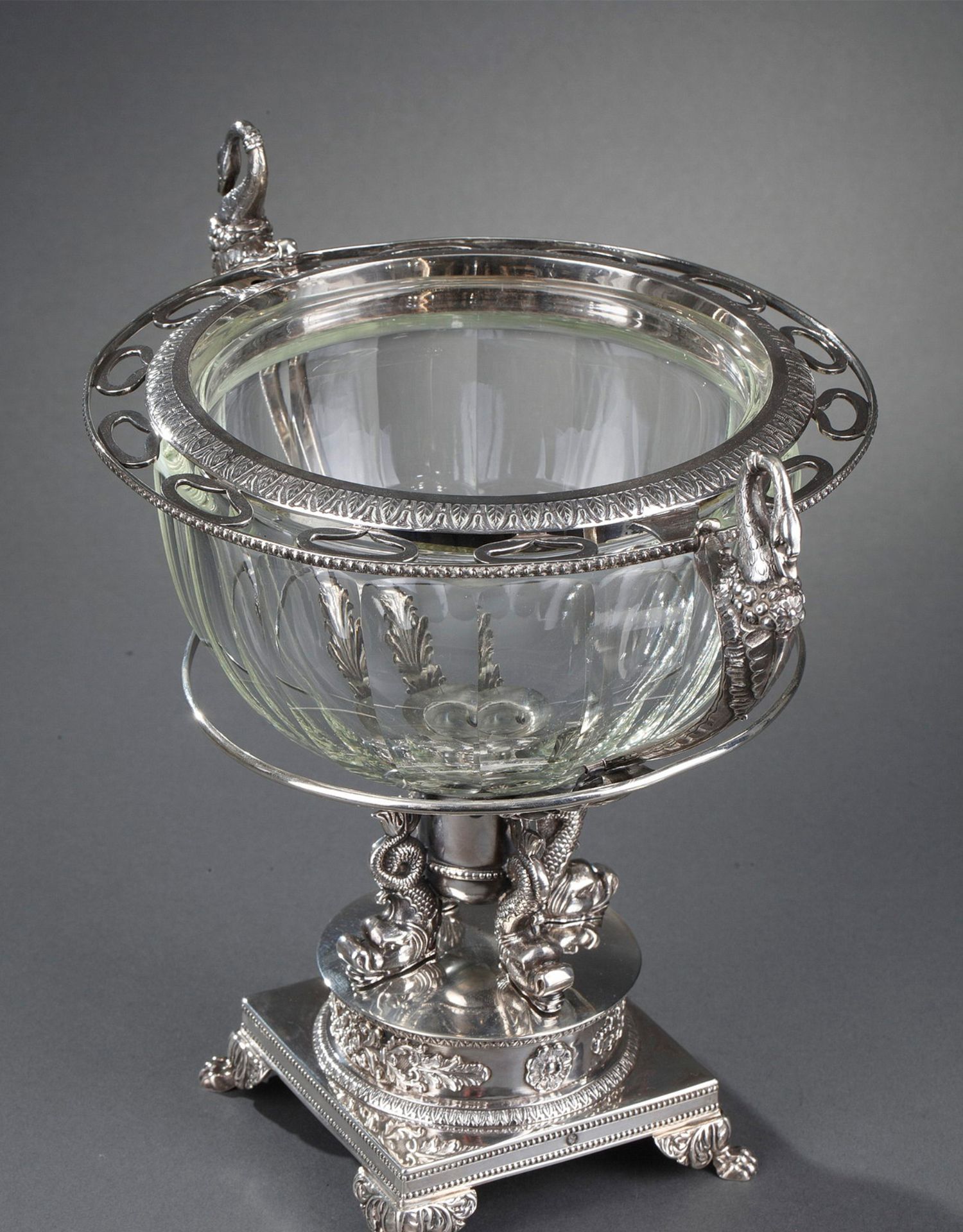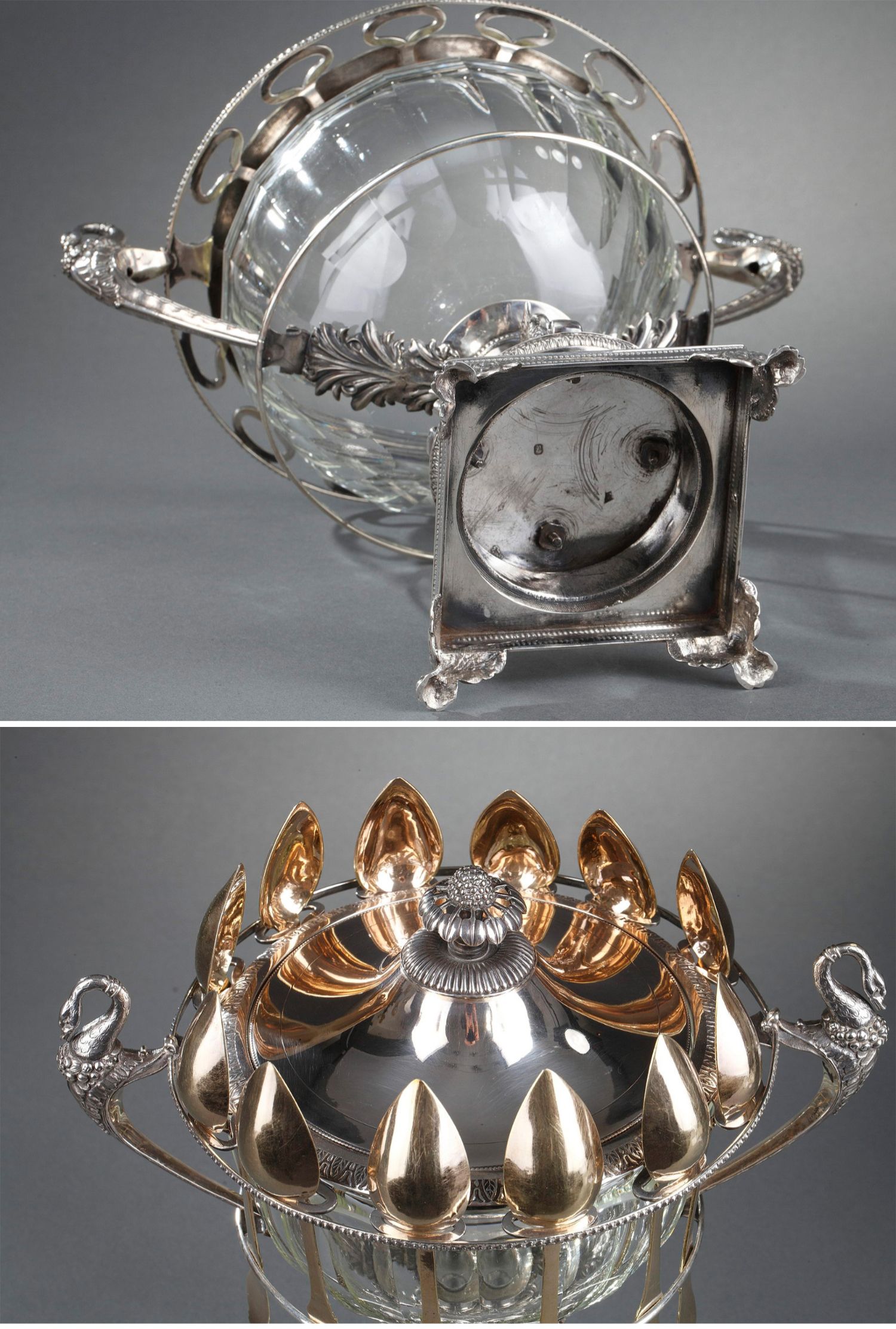独角鹿西洋古董法国银匠帝政风格天鹅海豚纯银精雕水晶冰激凌樽