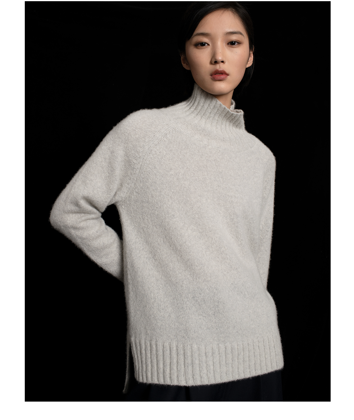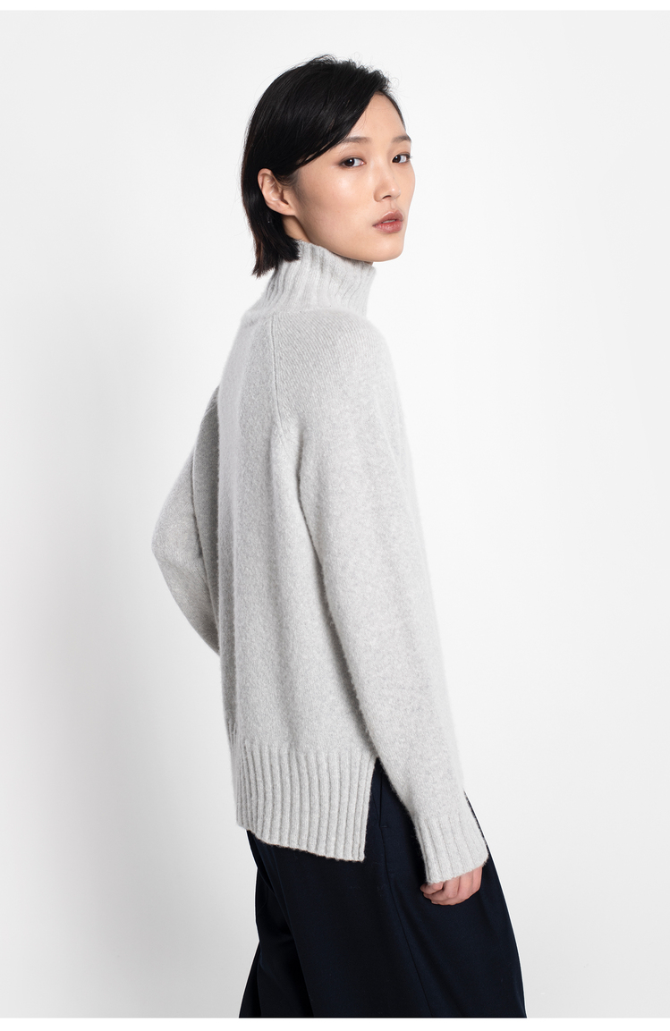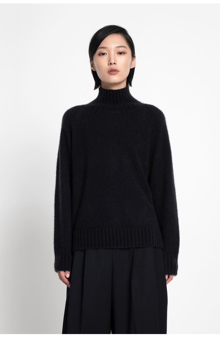女士2021年收藏级新款拉毛纯山羊绒单股平纹高领套头衫
