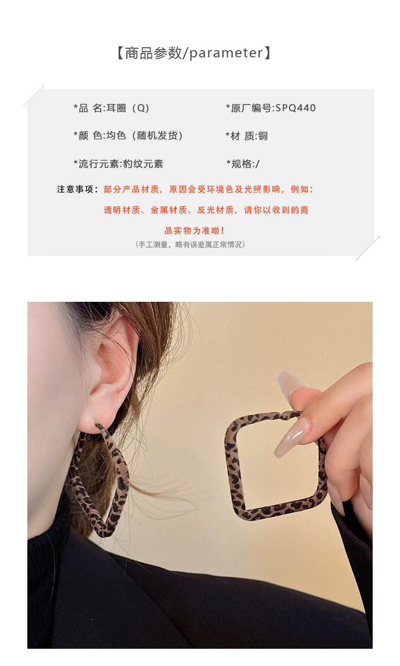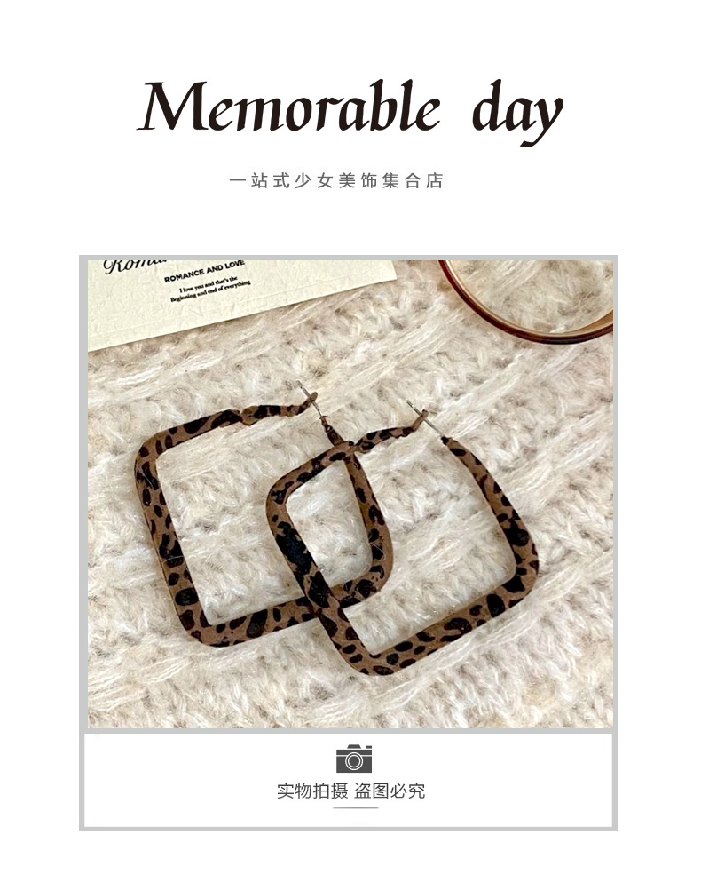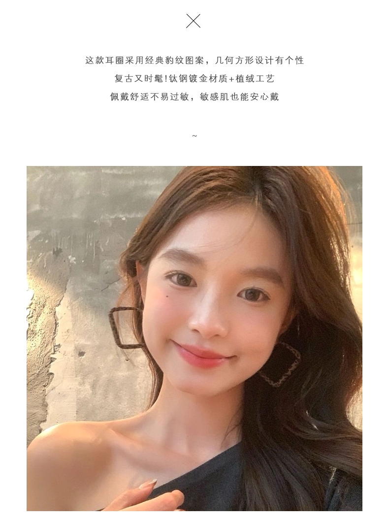 秋风植绒复古几何方形豹纹耳环-纪念日百货门店同款167750330