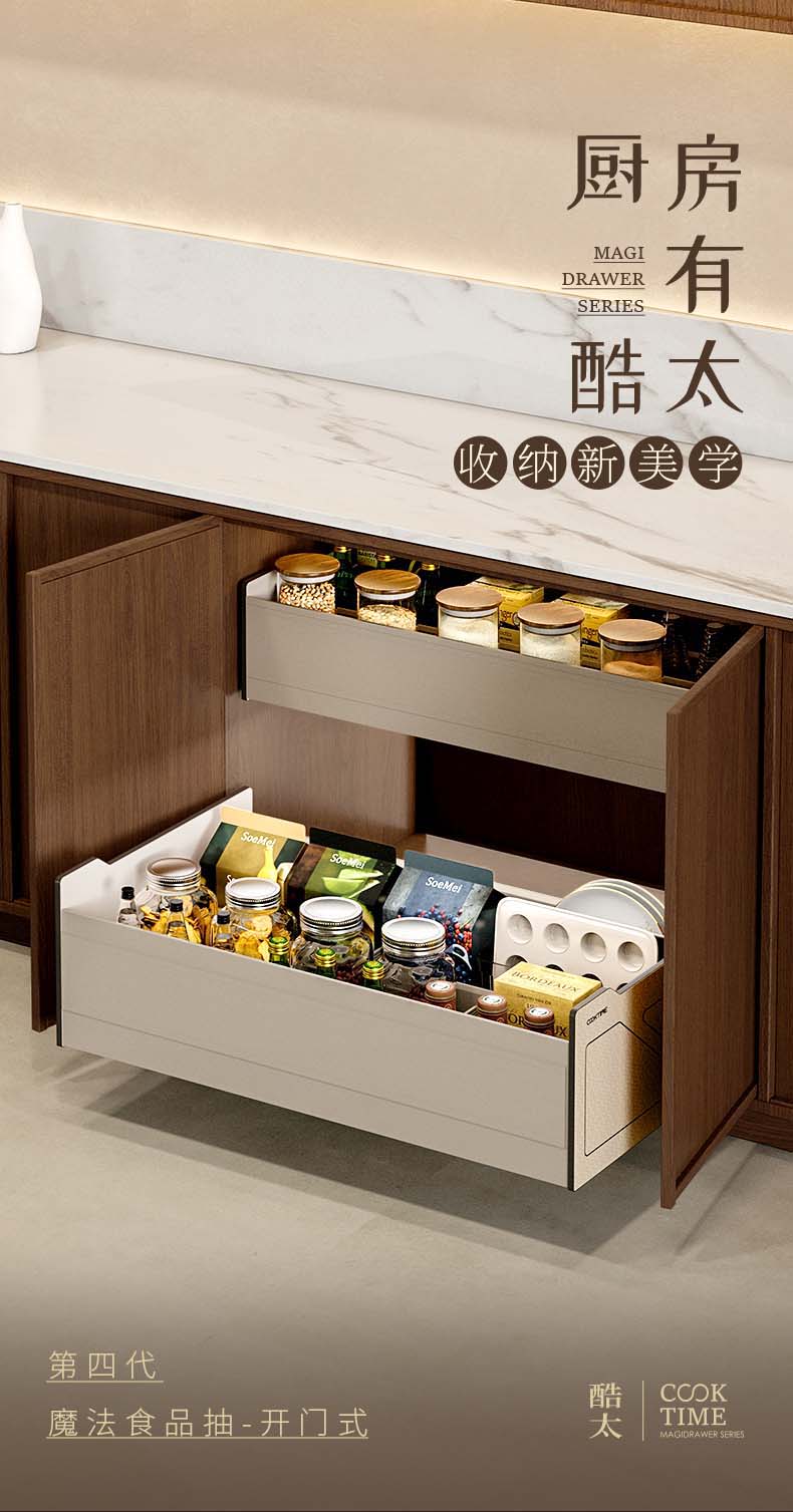 - 酷太坚持8年自主研发,已获得专利证书130项,拥有一套领先市场的厨房收纳系统,为千万中国家庭解决厨房脏乱差,缔造厨房新生活。