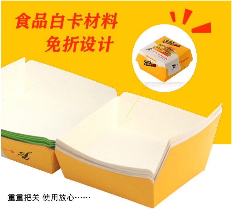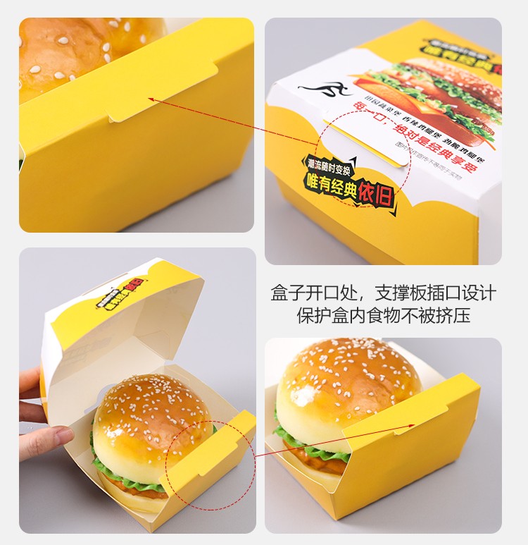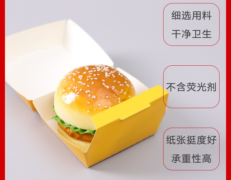 黄色汉堡盒 汉堡包装盒 免折款 汉堡打包盒 一次性纸盒