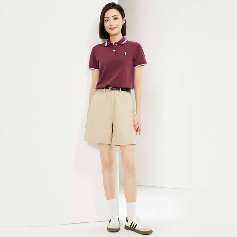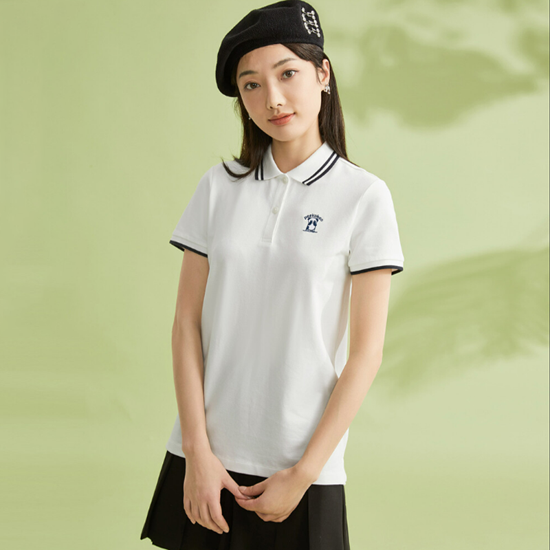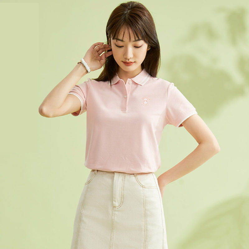 佐丹奴25年新款女装熊猫刺绣针织弹力珠地布短袖POLO13313206