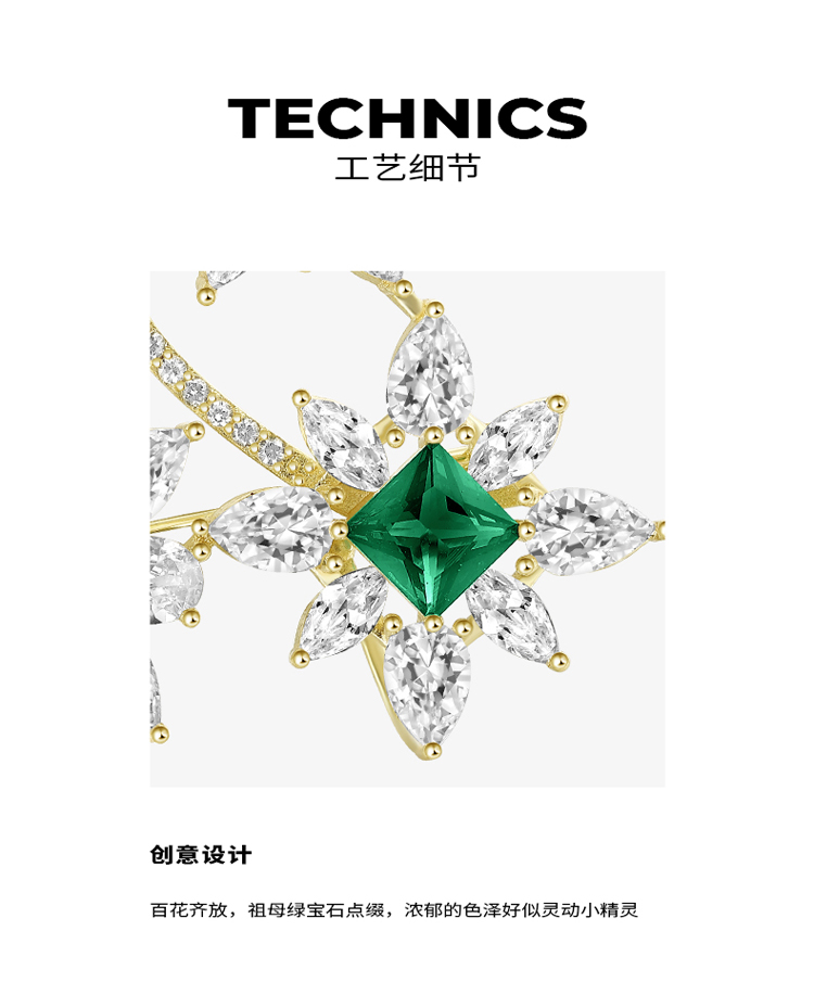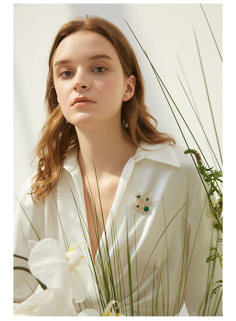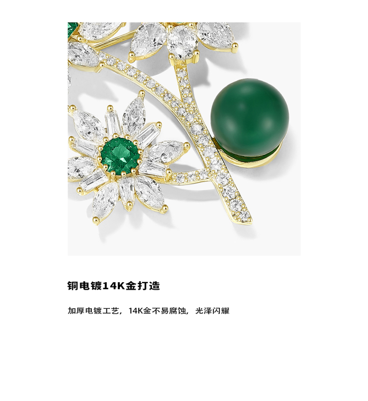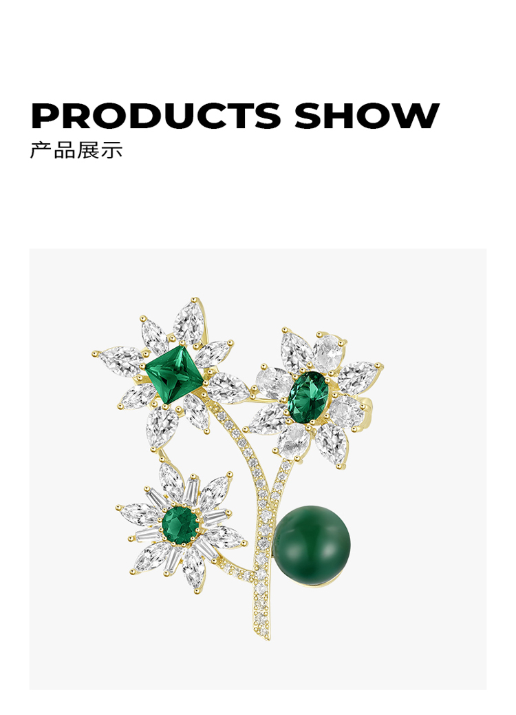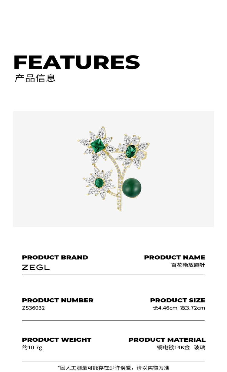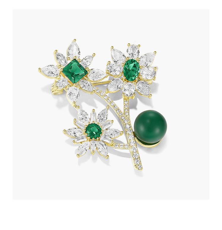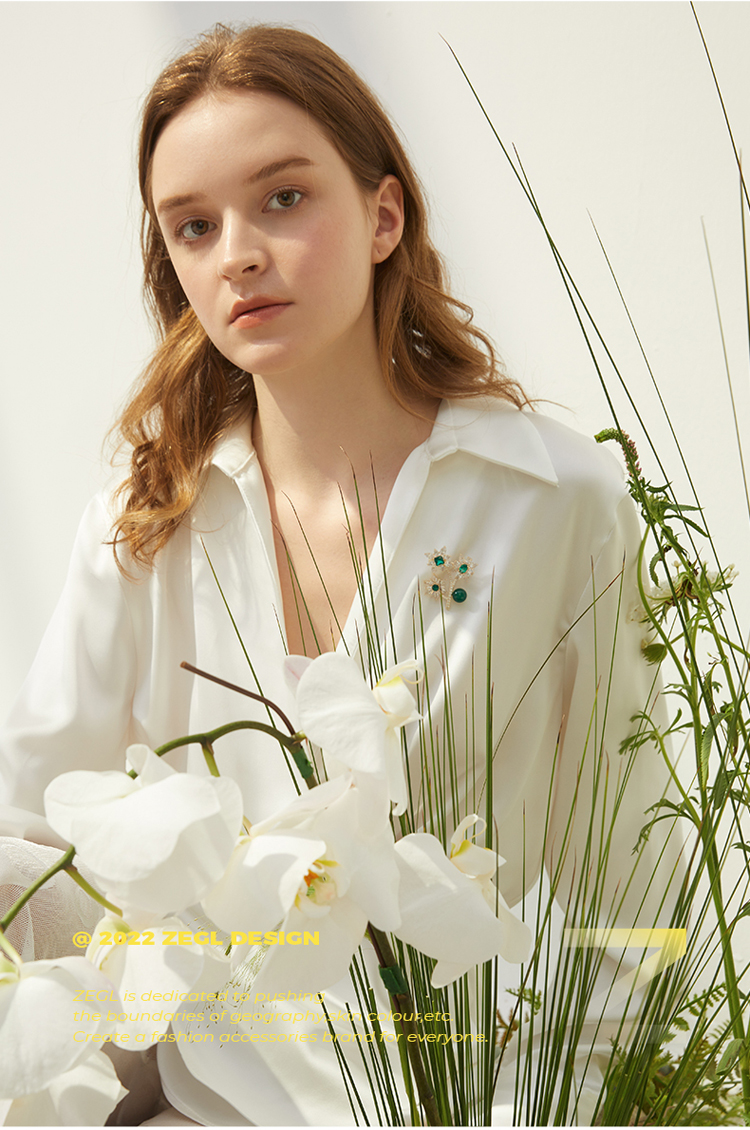 ZEGL祖母绿花朵胸花胸针女设计感小众别针衣服配饰装饰配件首饰品