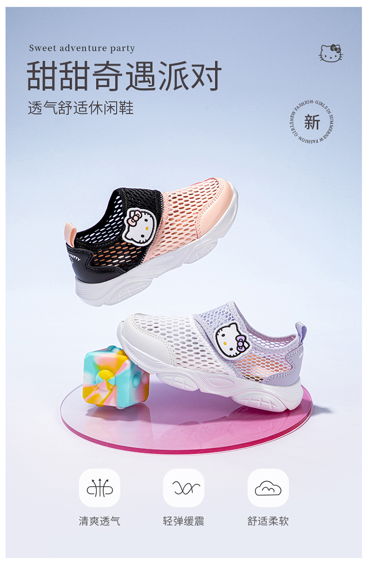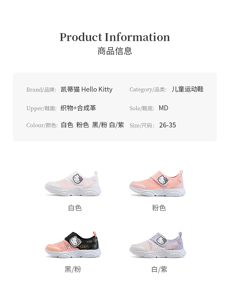 hellokitty童鞋女童单网鞋儿童镂空运动鞋宝宝春夏女孩透气休闲鞋26-35 K5526840