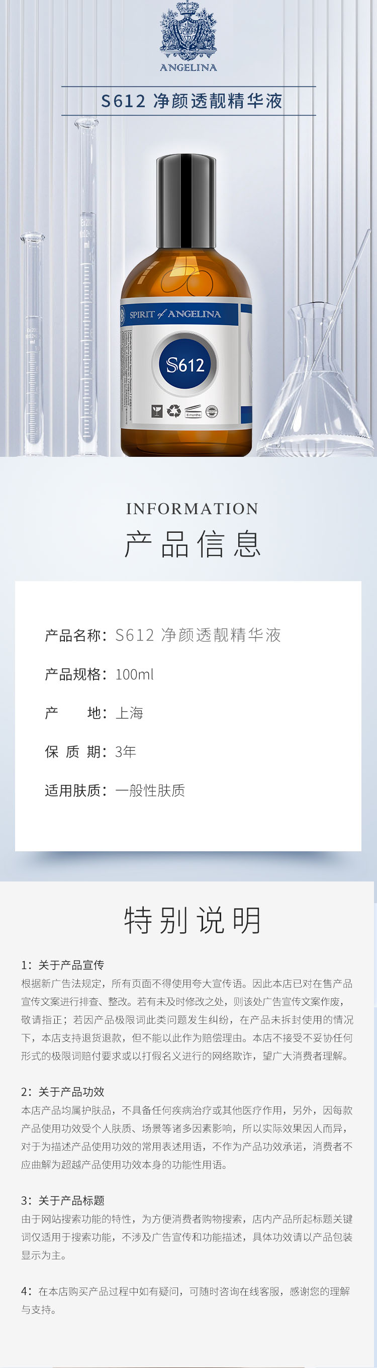 【安捷莉娜】S612 净颜透靓精华液100ml
